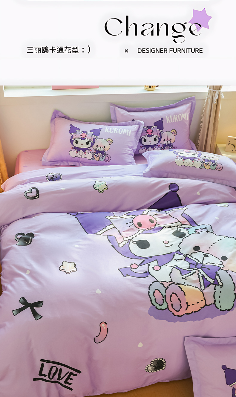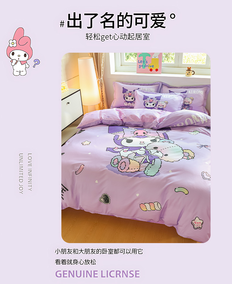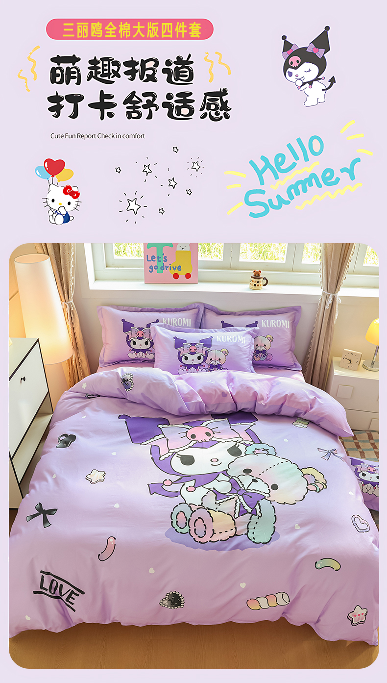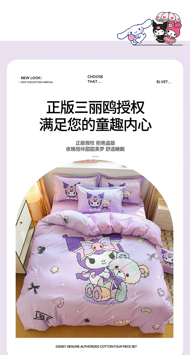 当前位置: 91家纺网 > 商品网购 > 床品套件 > 四件套 > 全棉普通四件套 > 浩诚 2026新款专版三丽鸥hellokitty库洛米正版授权大版全棉纯棉四件套 甜甜库洛米