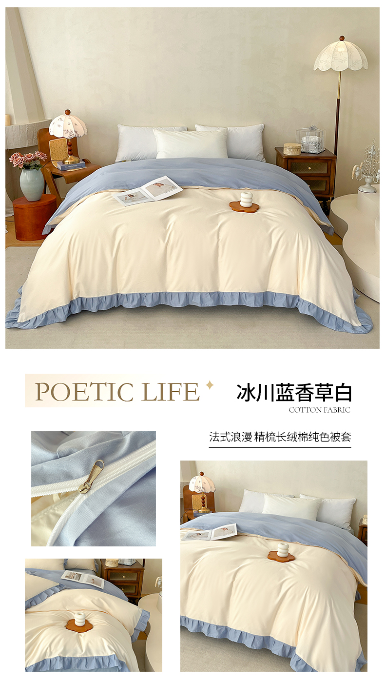 • 91家纺网 家纺一手货源 找家纺 (总)艾迪尚家纺 2026法式韩版荷叶边纯色长绒棉纯棉单被套,薄荷青灰,冰川蓝香草白,茉绿奶芙,奶芙慕粉,青提絮语,柔杏浅绿,瑞绿慕斯粉,雾蓝杏语,云白芽绿,云灰仙女粉