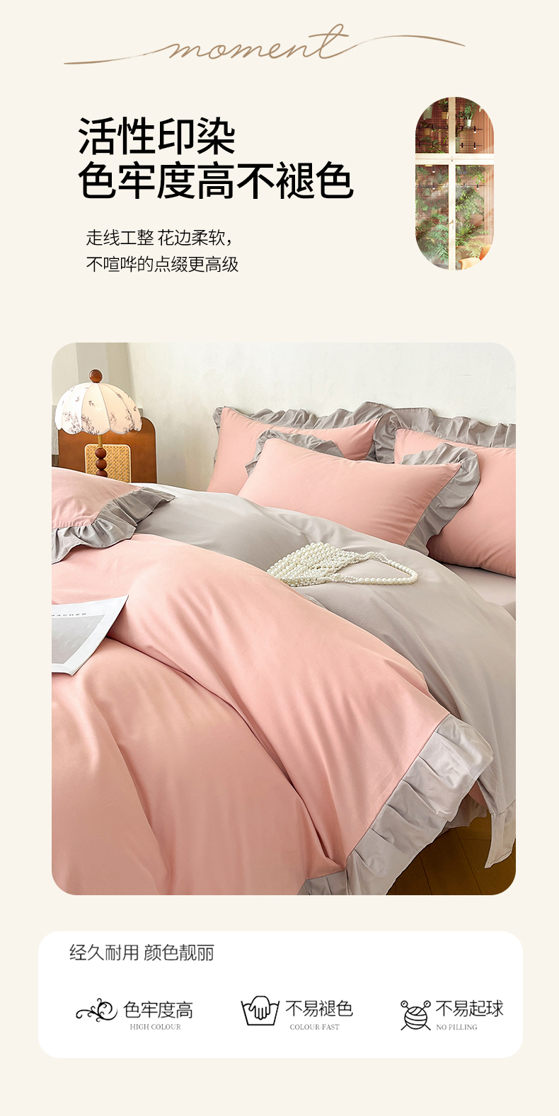 商品名称:艾迪尚家纺 2026新款法式韩版荷叶边纯色长绒棉单品枕套系列 云灰仙女粉