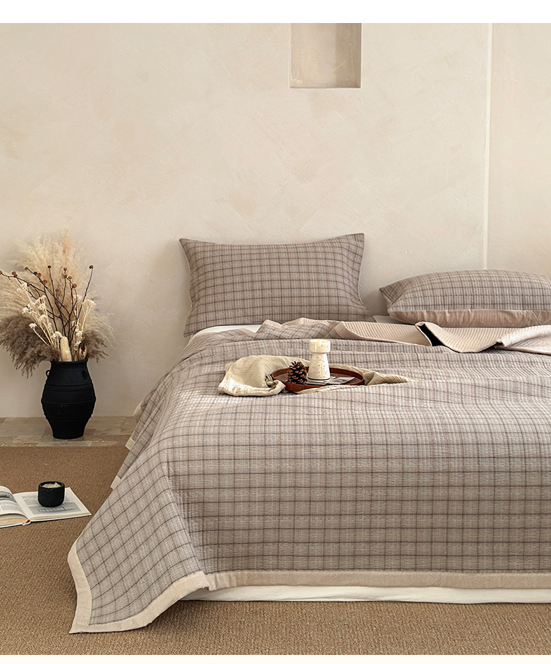 法芙娜家纺 2026新款双面全棉色织水洗棉床盖 灰格