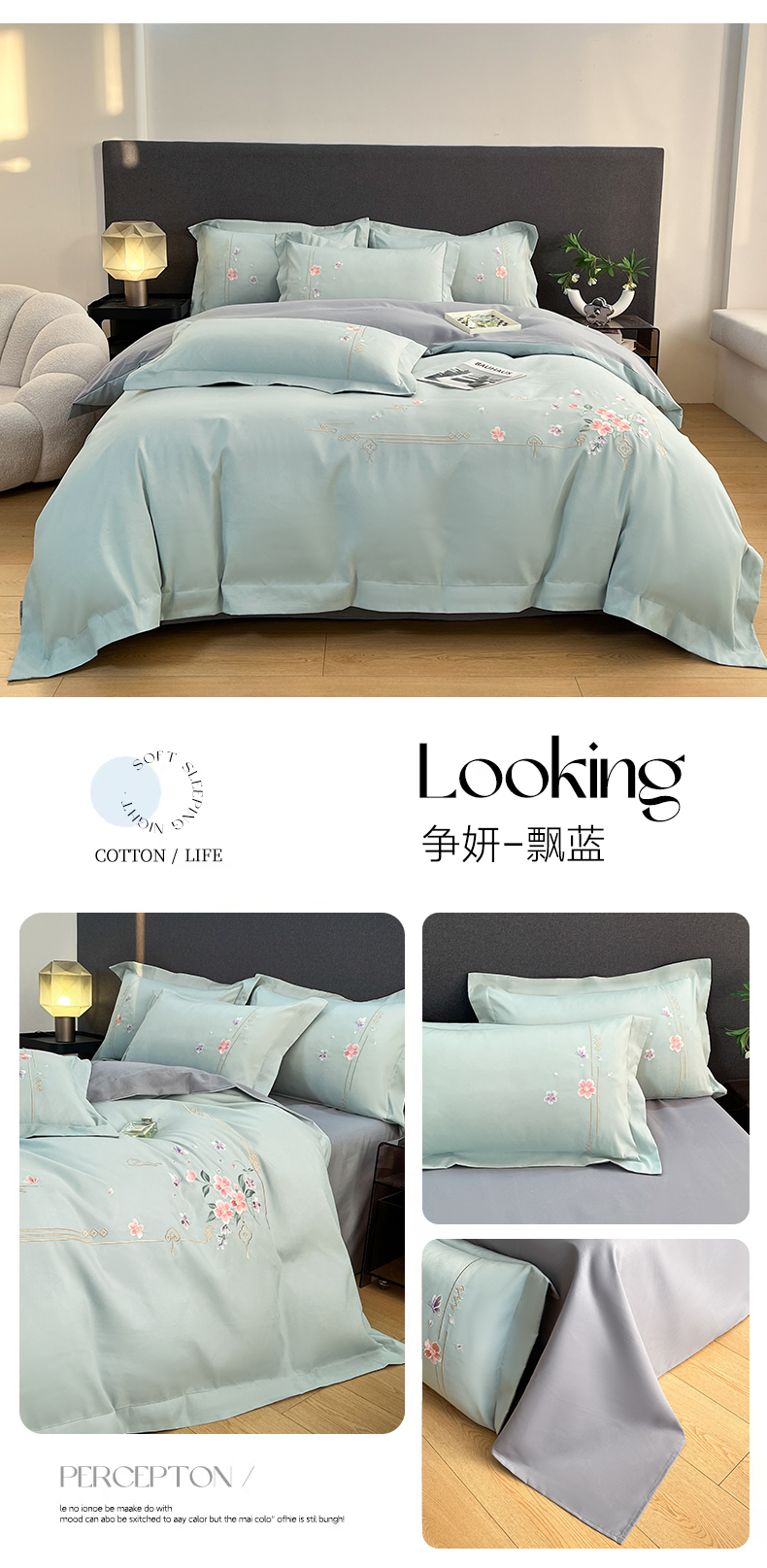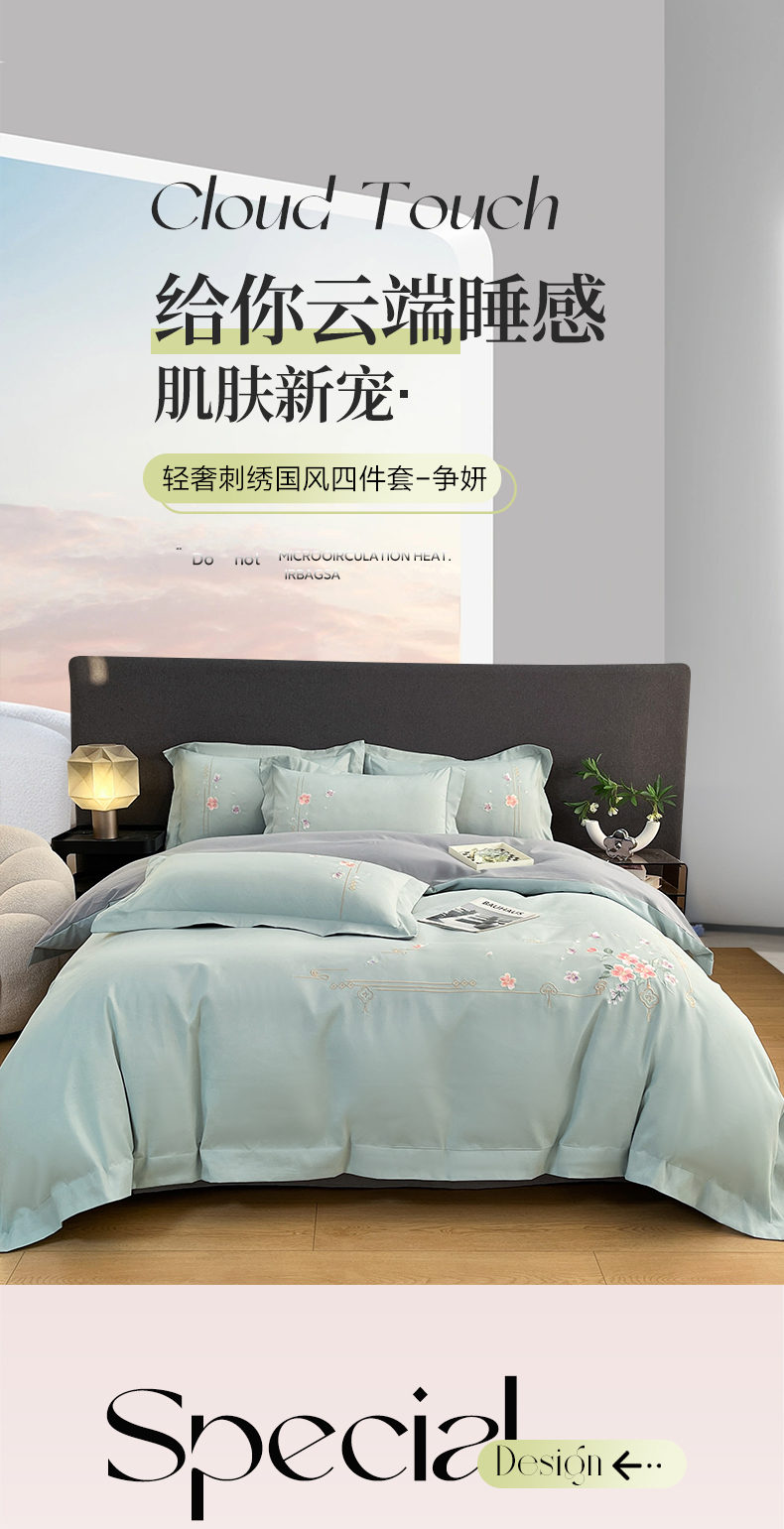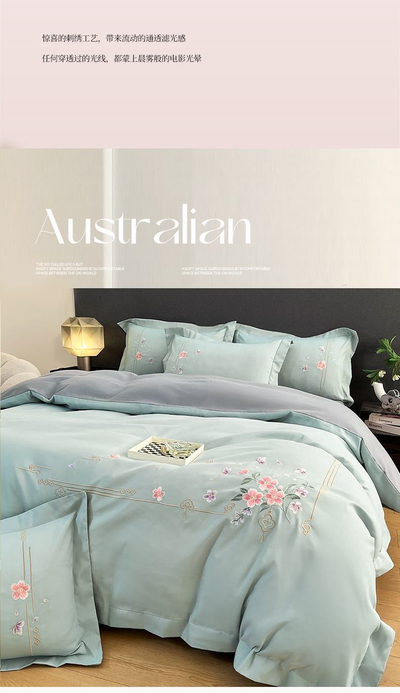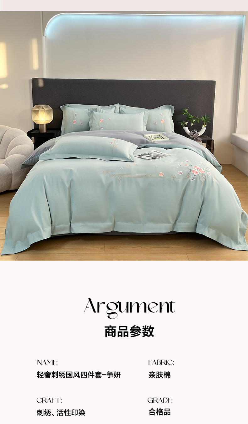 当前位置: 91家纺网 > 商品网购 > 床品套件 > 四件套 > 化纤普通四件套 > 青柚 2026新款轻奢刺绣国风四件套-争妍 争妍-飘蓝