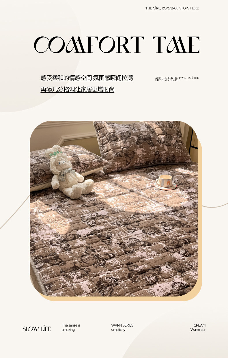 商品名称:沐慕 2026新款高克重印花云感皱皱纱夹棉床笠 回忆蝶
