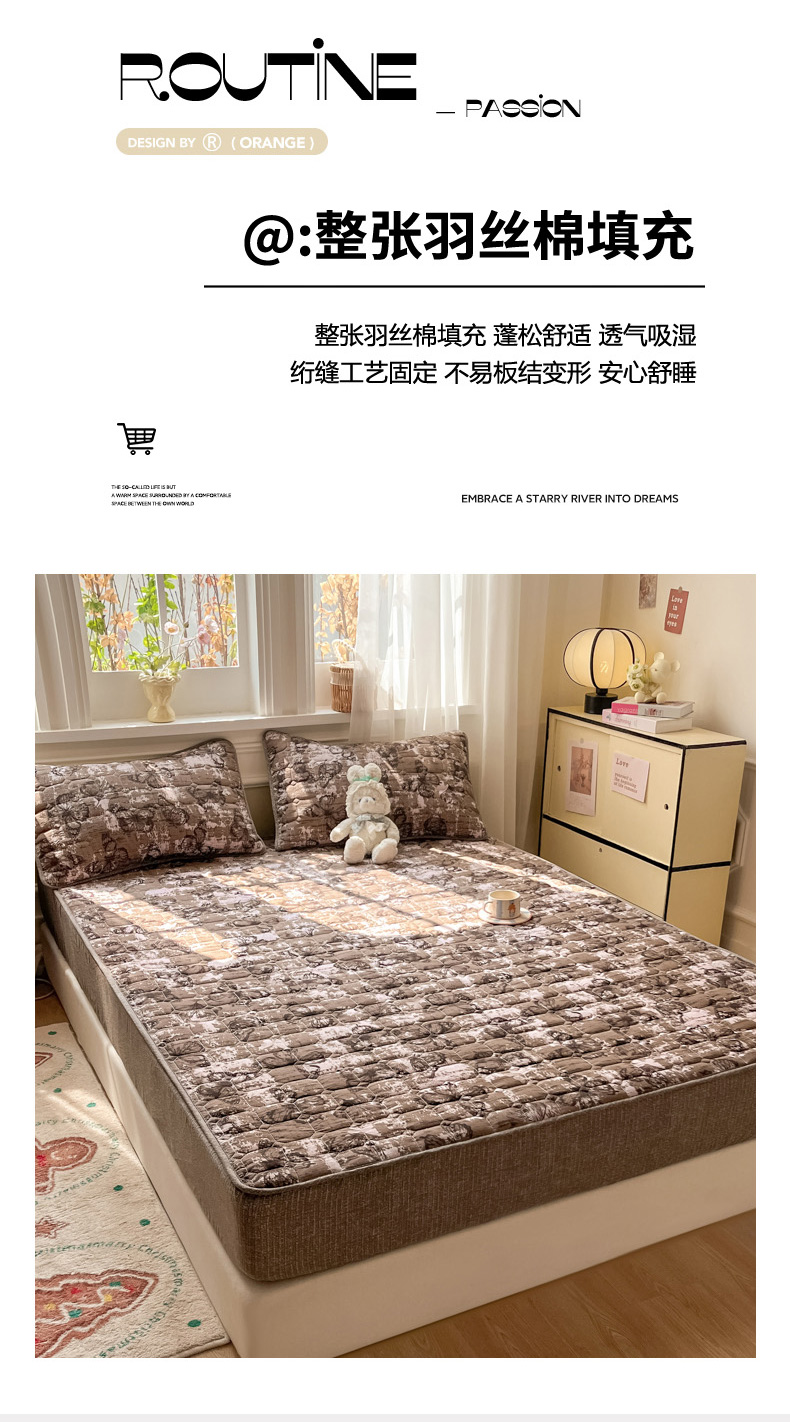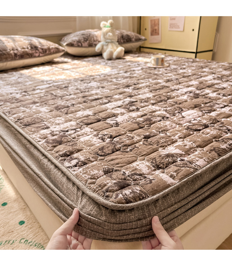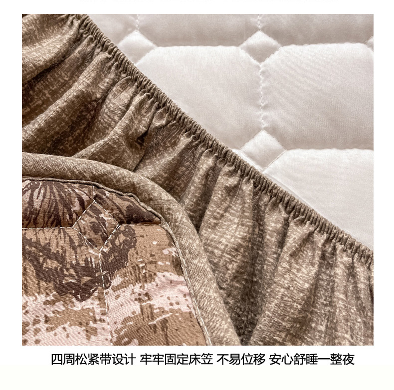 沐慕 2026新款高克重印花云感皱皱纱夹棉床笠 回忆蝶