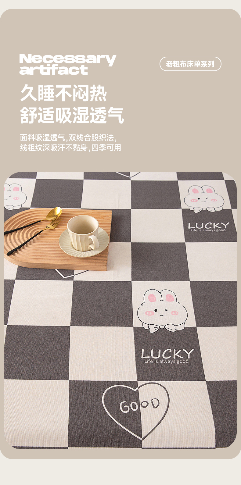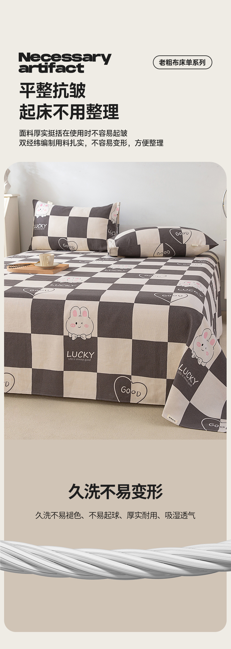 (总)金泰莱 2026新款原棉标印花老粗布床单,lucky兔,艾米,傍晚,波西米亚,彩蝶,初见,淡雅,风雅,格子樱桃,花朵熊,花间,花颜,欢乐,灰格,简尚,简兮蓝,可爱熊猫,蓝格,蓝色恋格,蓝心,冷灰,梦幻小鹿,嫩绿,偶遇,浅灰,热恋,条纹小熊,温馨,兮心,小时光,樱花粉,紫罗兰