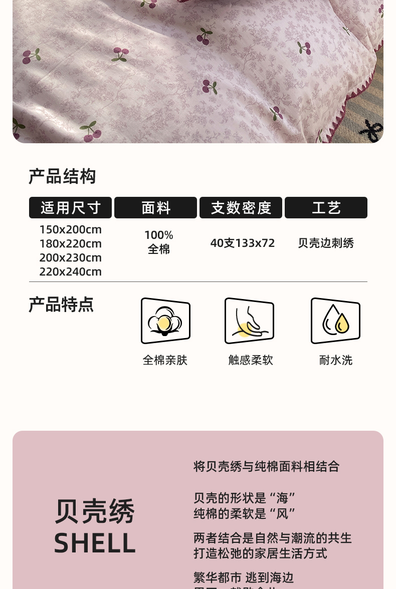 (总)浮光家居 2026新款全棉贝壳边纯棉单被套系列2,布歌紫,蝶恋花,爱丽花园,寻微,线韵时尚灰,机灵猫,星慕,夏日恋格黄,夏日恋格粉,夏日恋格兰,花边兔