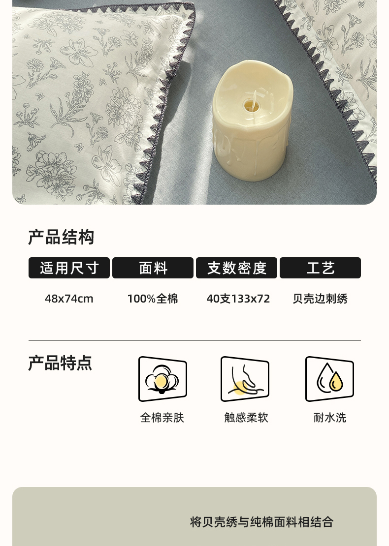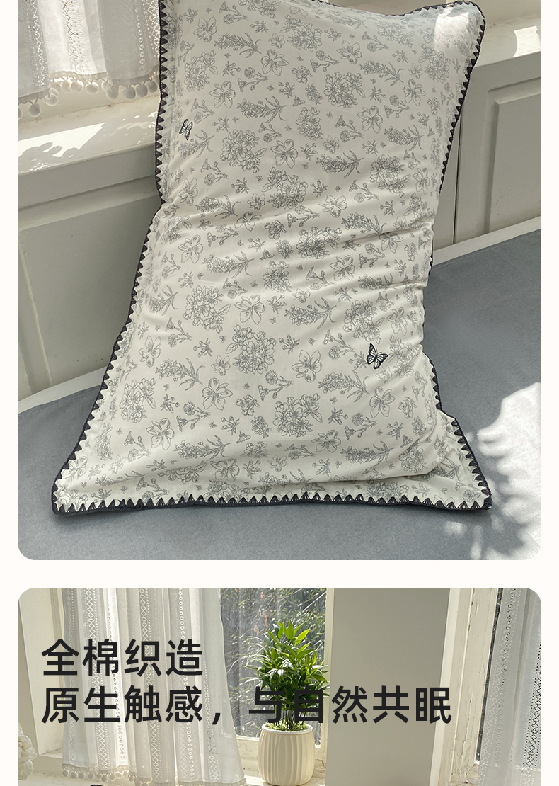 商品名称:浮光家居 2026新款全棉贝壳边纯棉单枕套系列2 蝶恋花