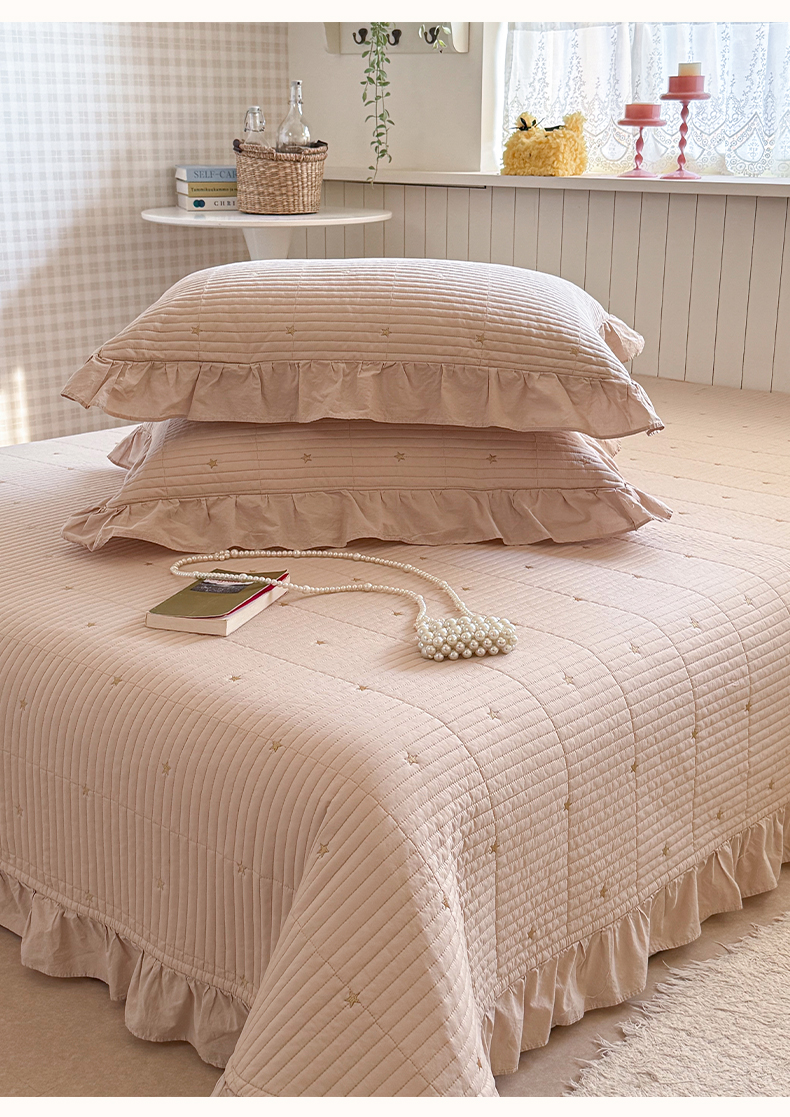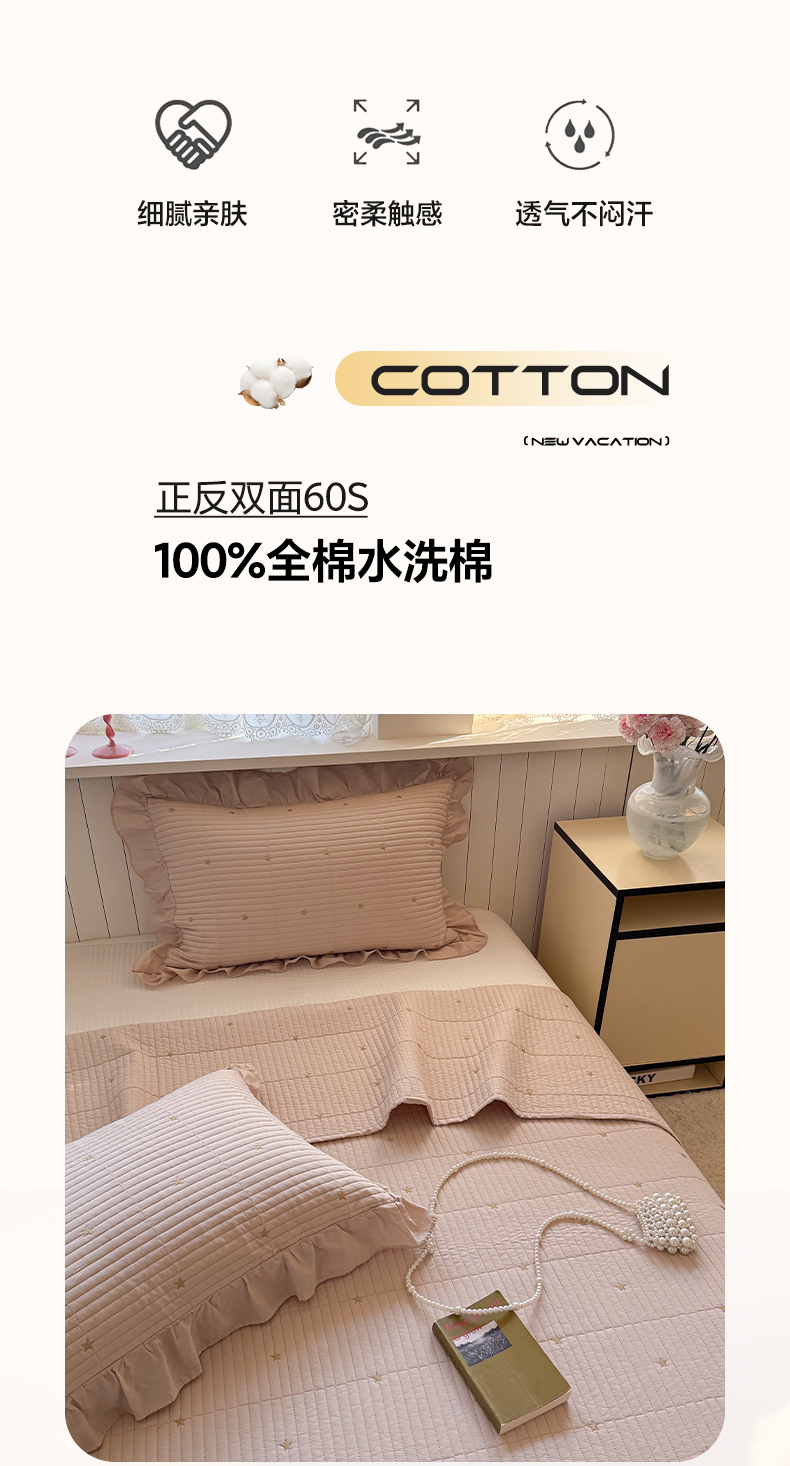 诗黛尔 2026春夏新款星空间双面60支水洗全棉床盖三件套/四件套 星空间-浅咖
