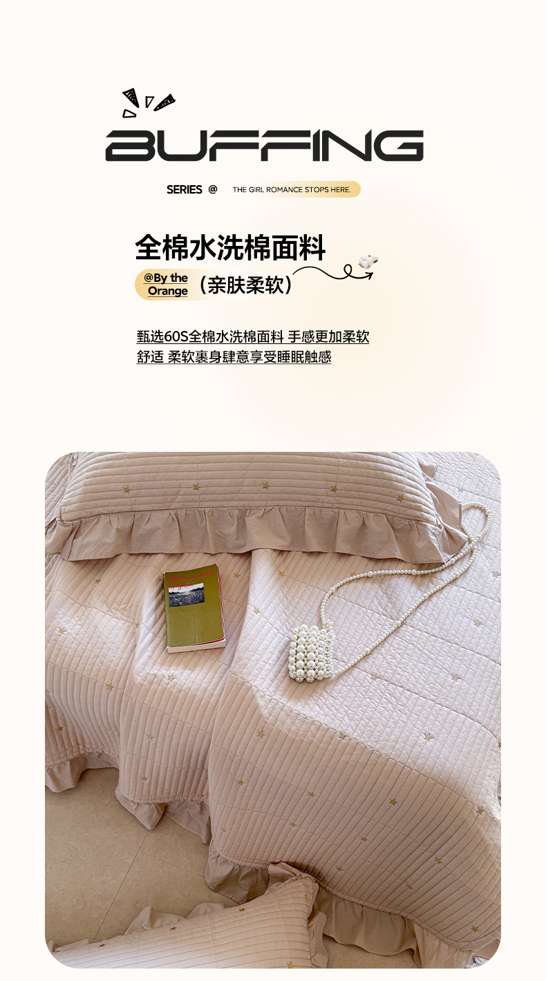 商品名称:诗黛尔 2026春夏新款星空间双面60支水洗全棉床盖三件套/四件套 星空间-浅咖
