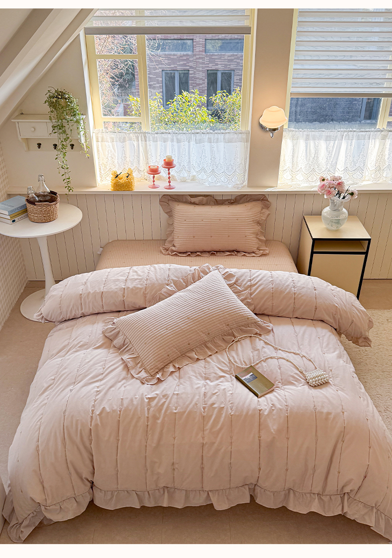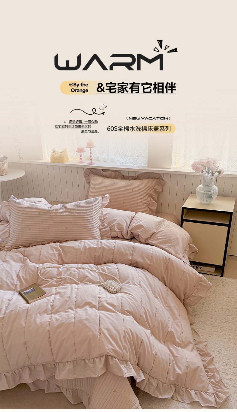 (总)诗黛尔 2025秋冬新款长绒棉刺绣香缇卡系列四件套,卡其色,落樱粉,南瓜橘,绅士灰,水晶兰,油果绿