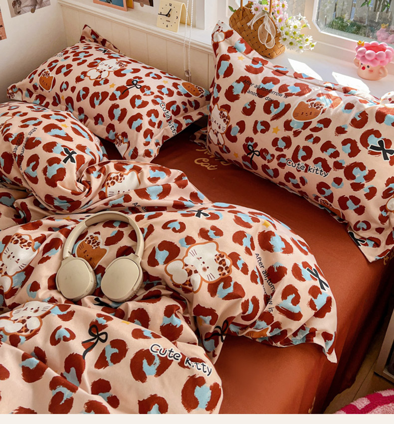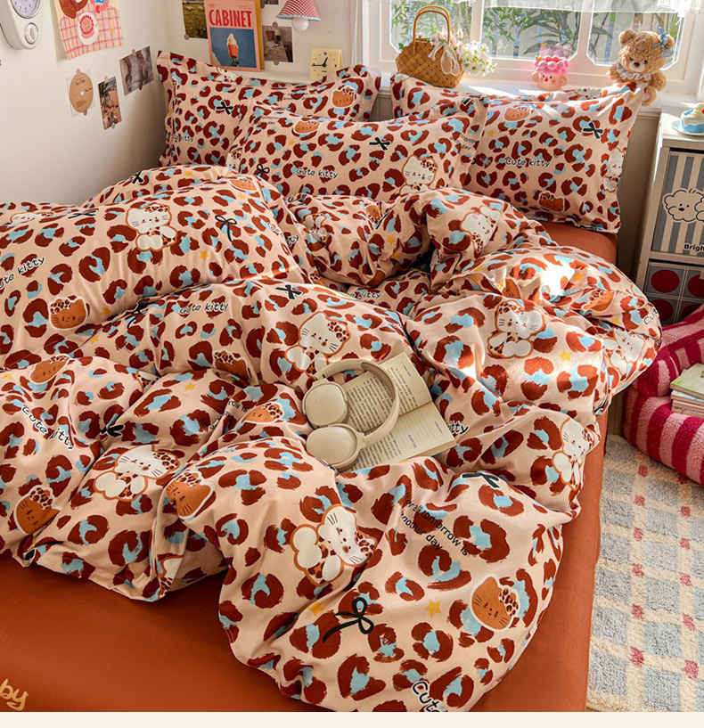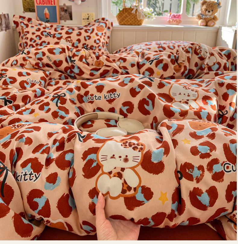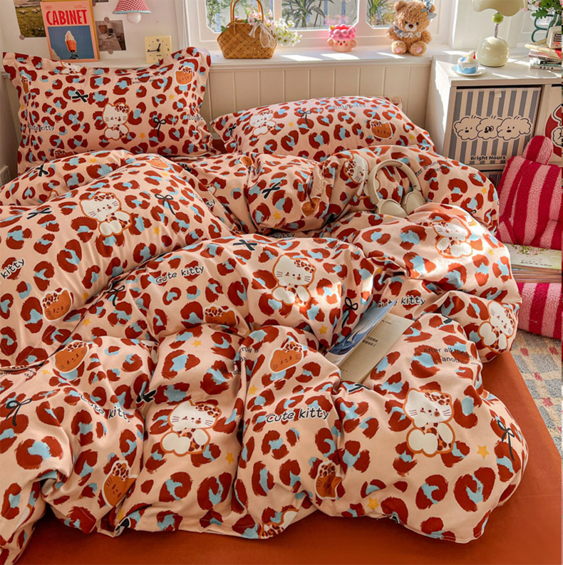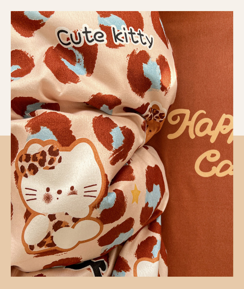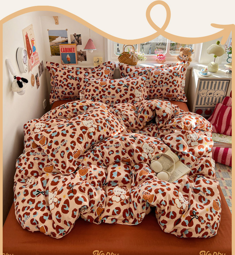 商品名称:花伞家居 2026直播网销斜纹加厚磨毛印花植物羊绒四件套(更多花型见二链接)豹纹猫