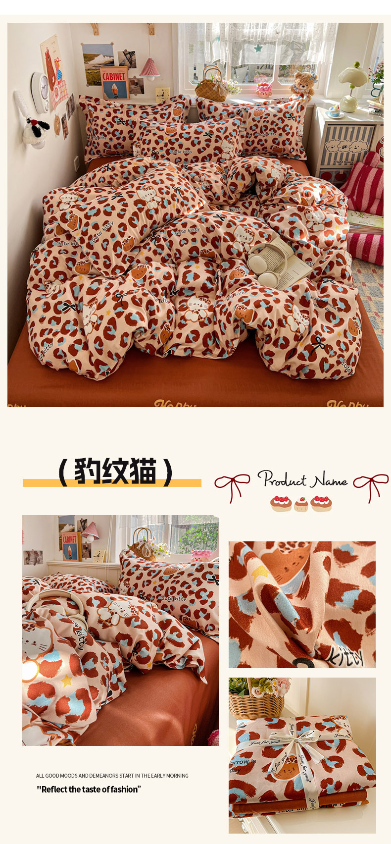 花伞家居 2026直播网销斜纹加厚磨毛印花植物羊绒四件套(更多花型见二链接)豹纹猫