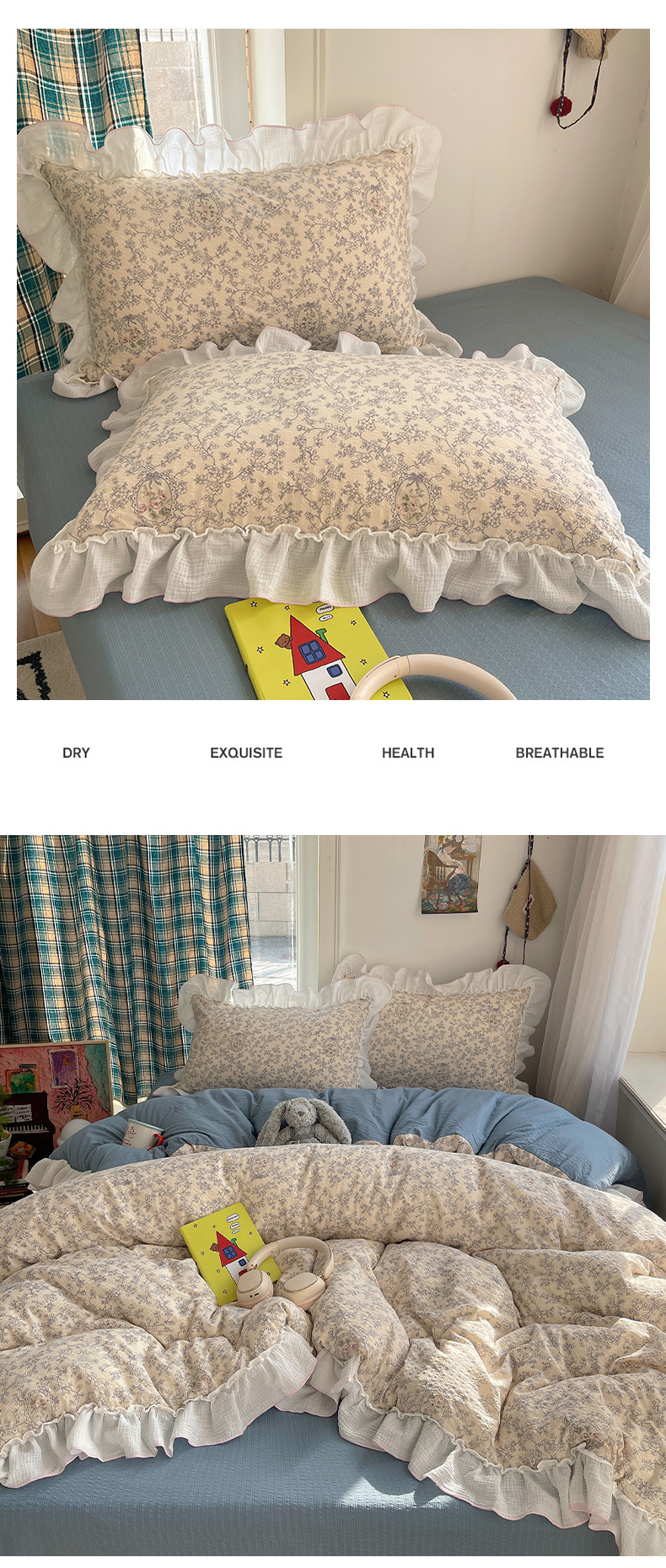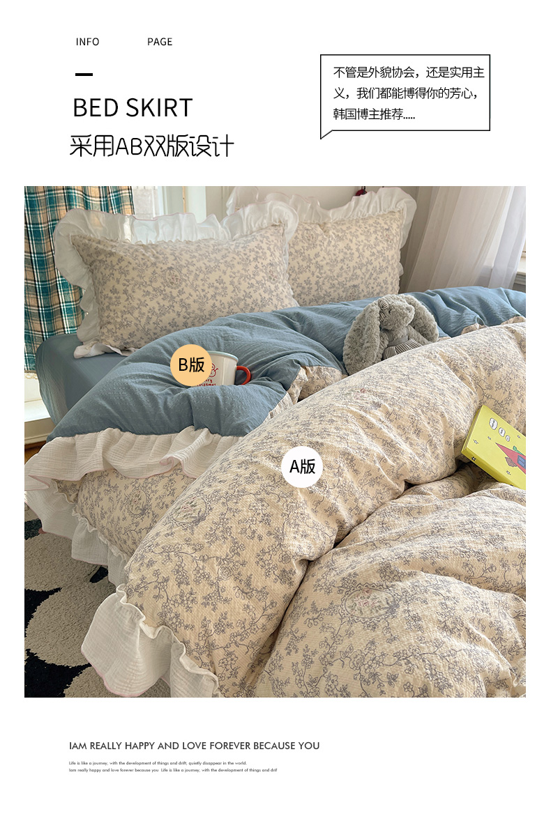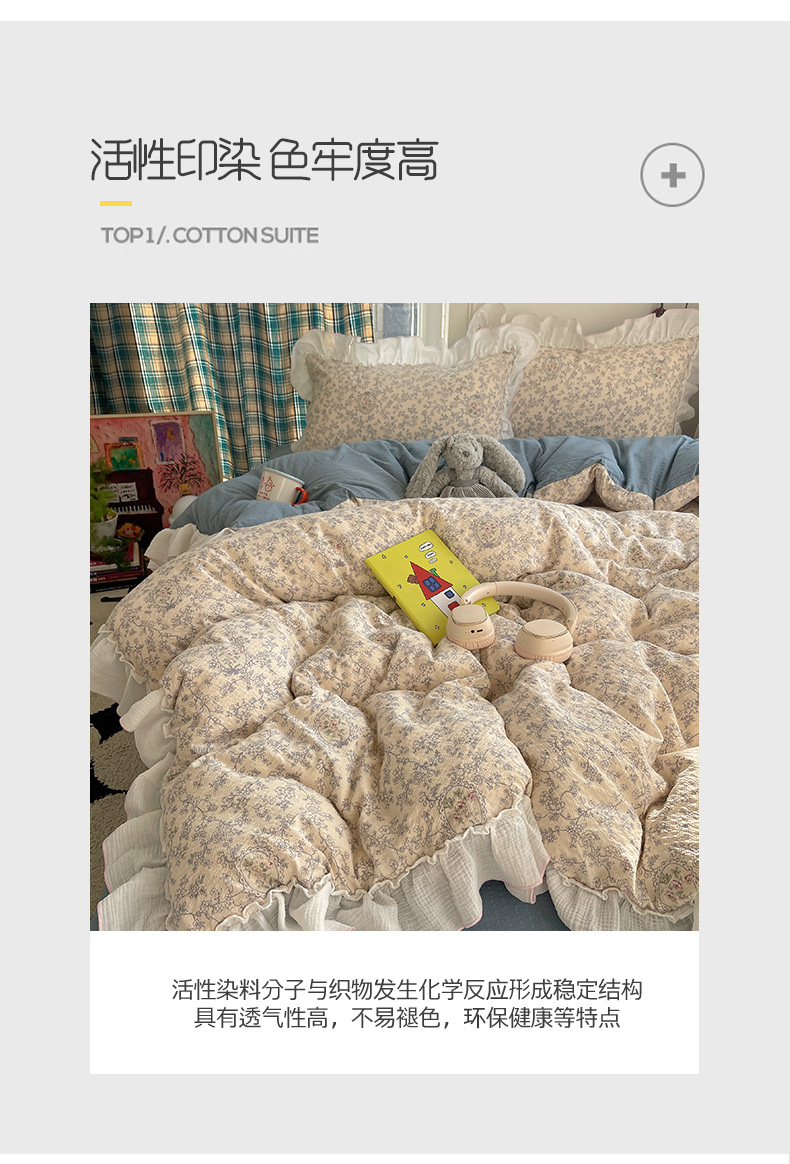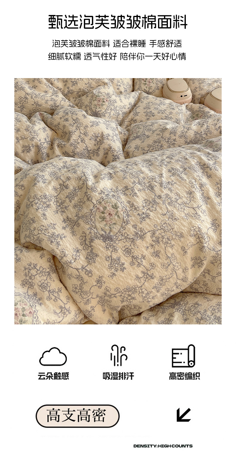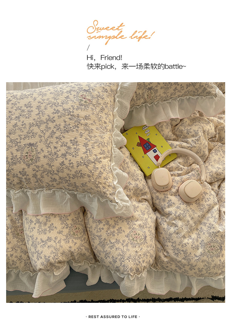 商品名称:(总)繁花家居 2026新款韩系花边小碎花泡芙棉云感邹邹纱费尔岛风四件套