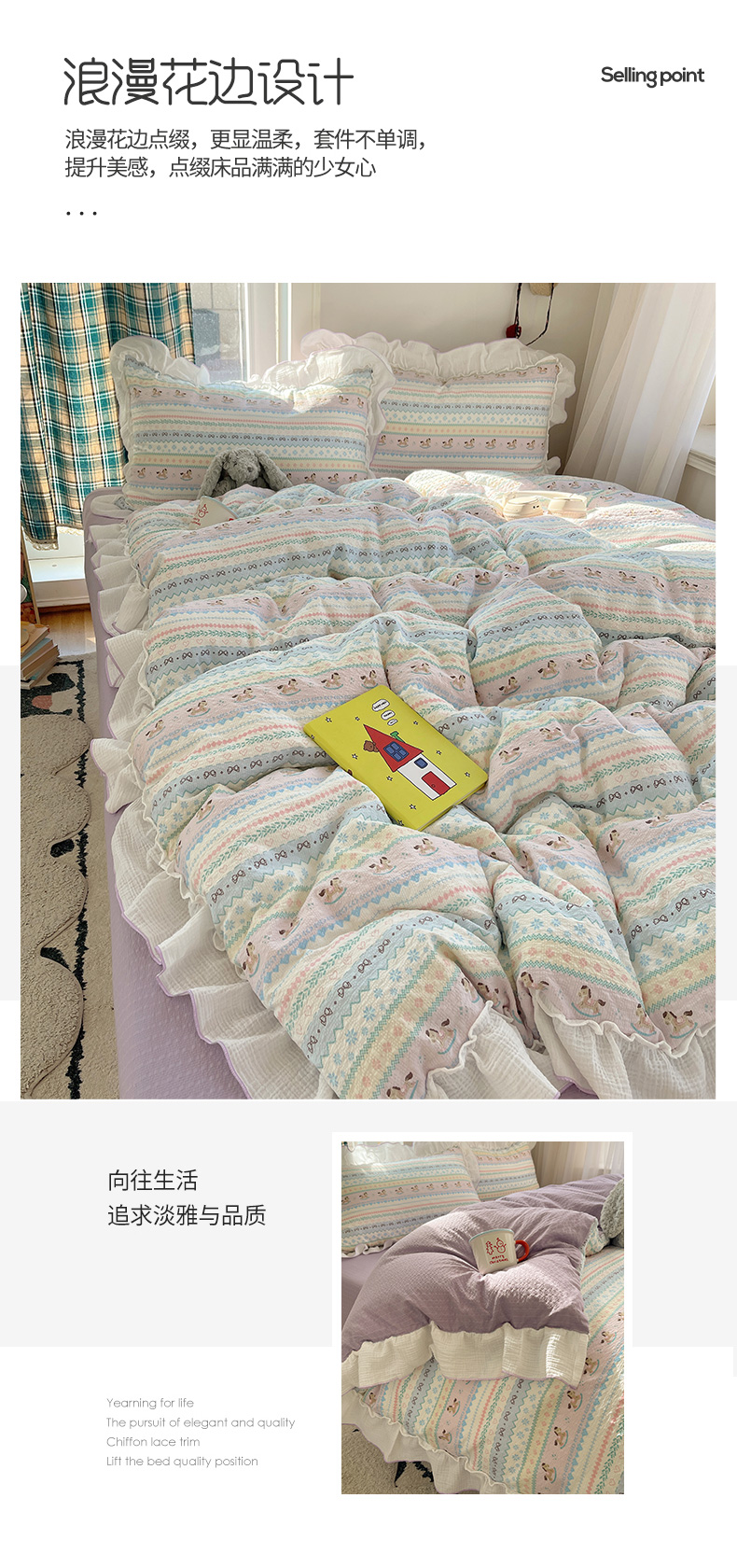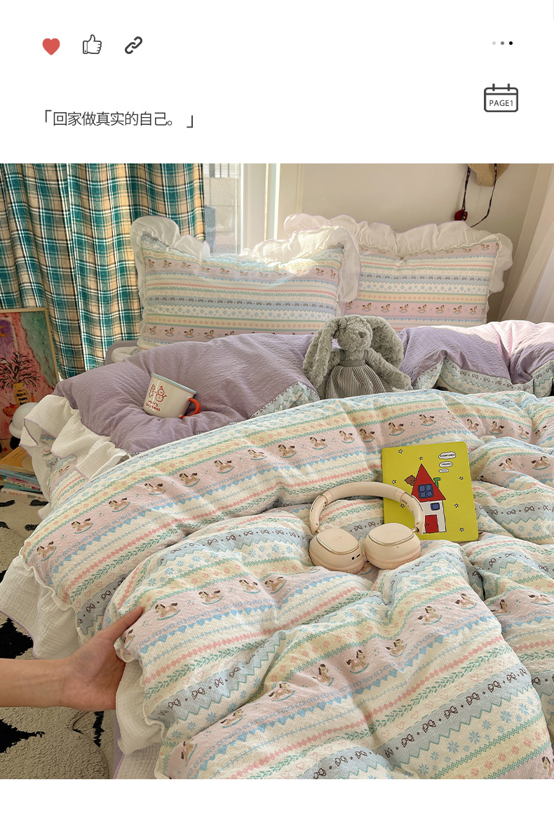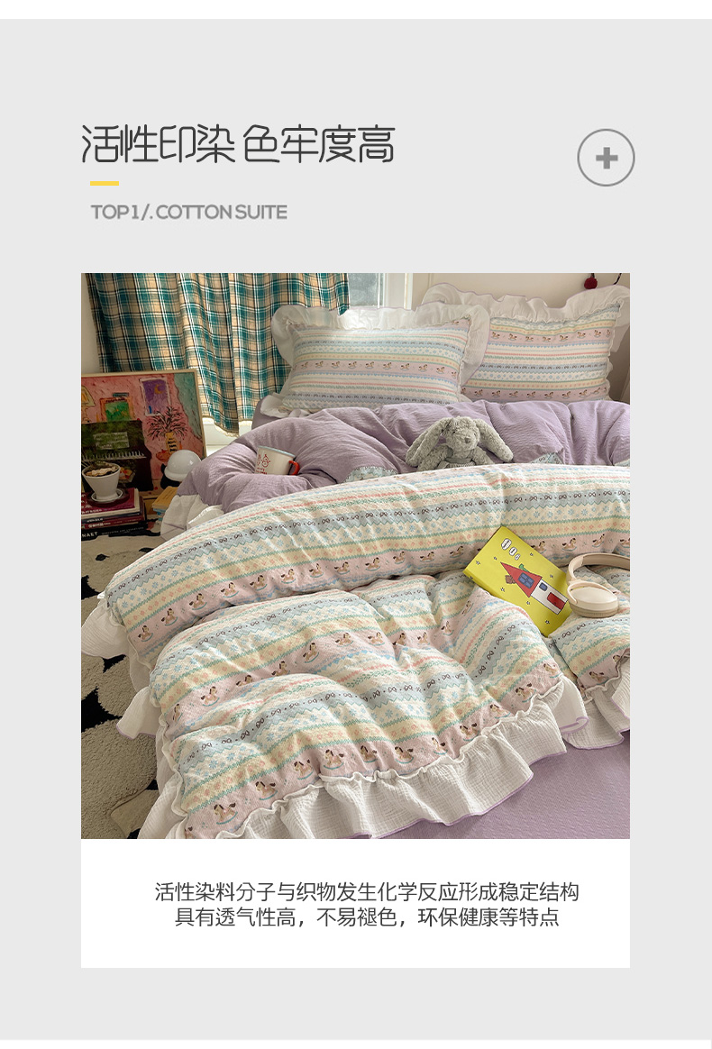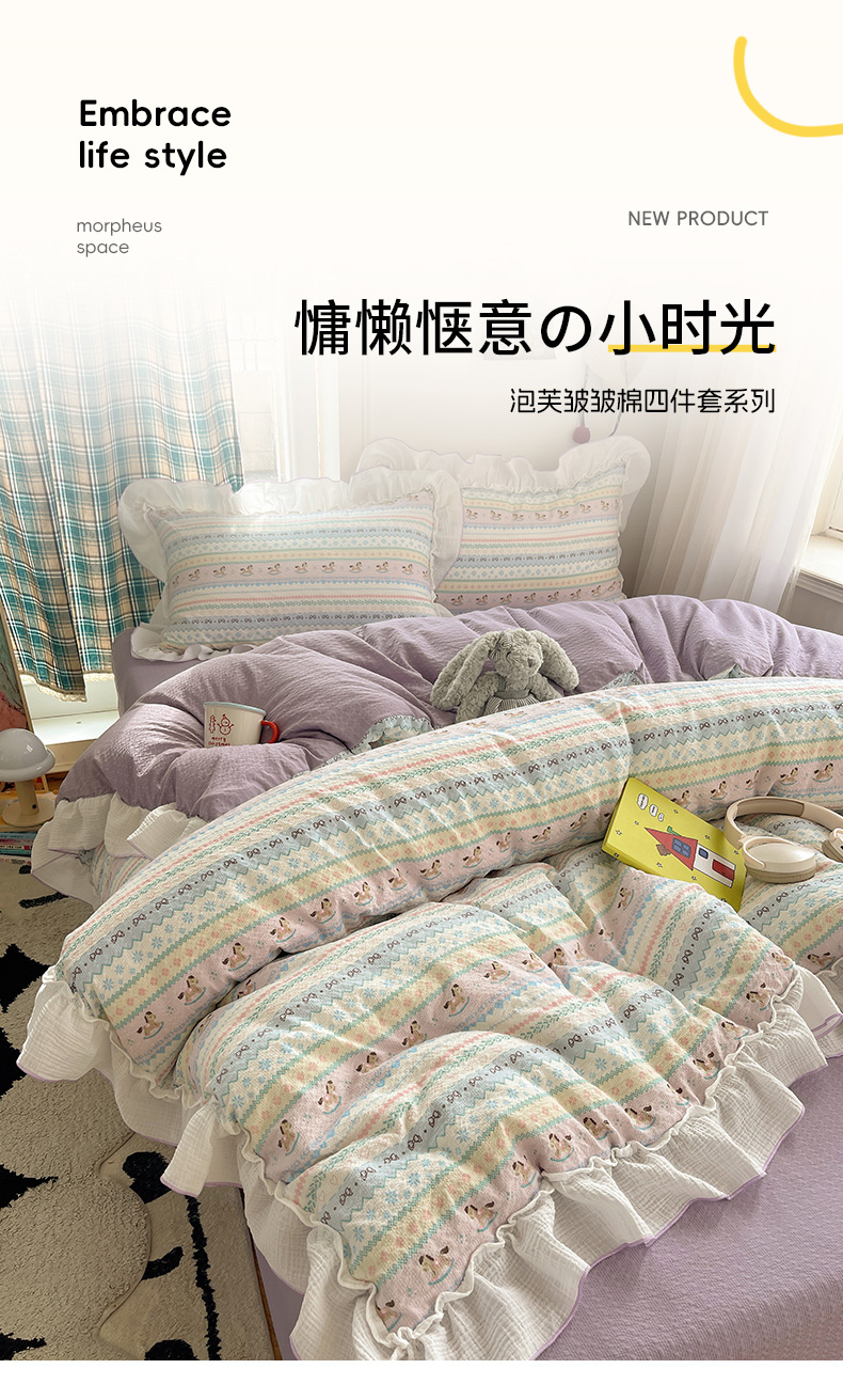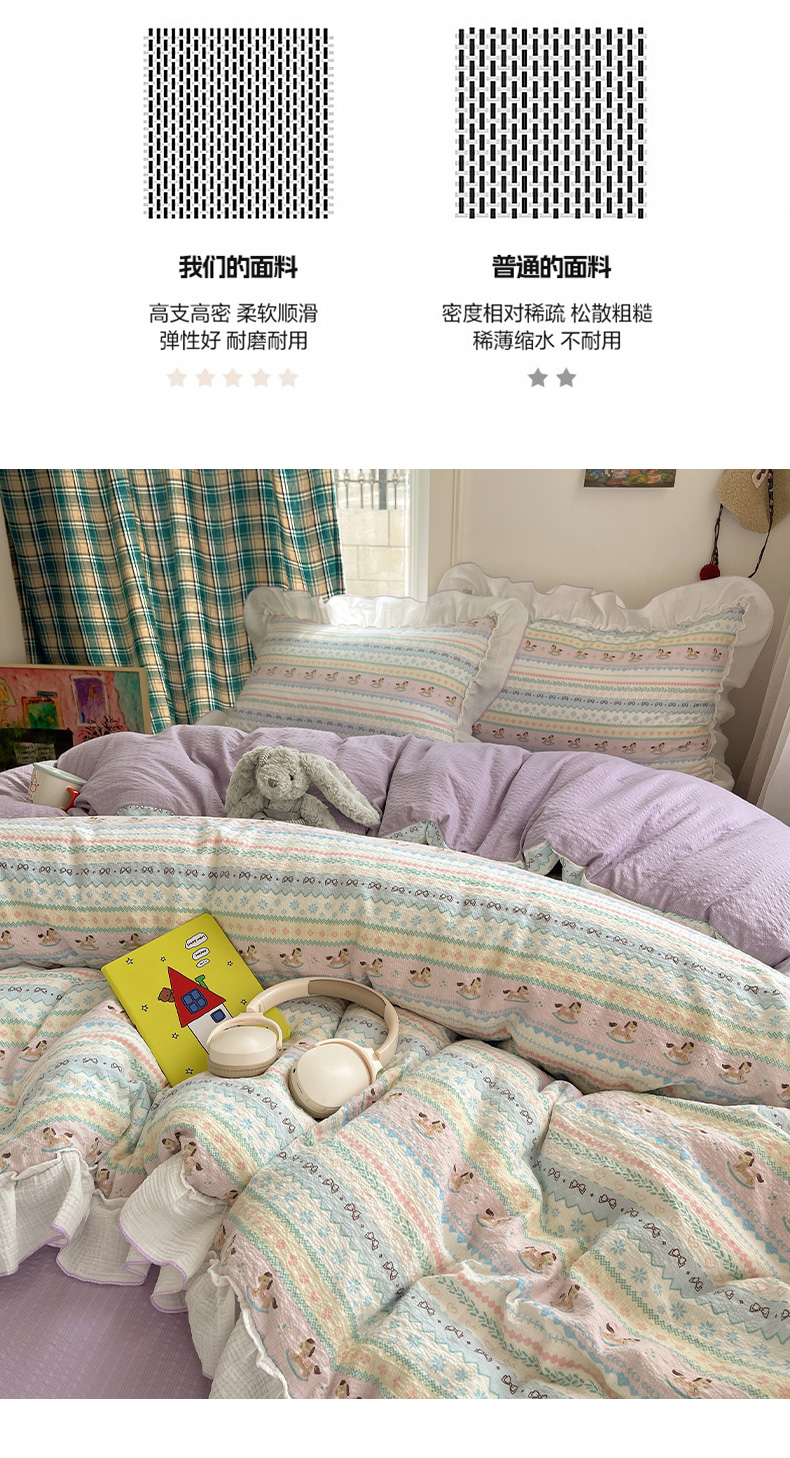 当前位置: 91家纺网 > 商品网购 > 床品套件 > 四件套 > 其它四件套 > 繁花家居 2026新款韩系花边小碎花泡芙棉云感邹邹纱费尔岛风四件套 小马奔腾