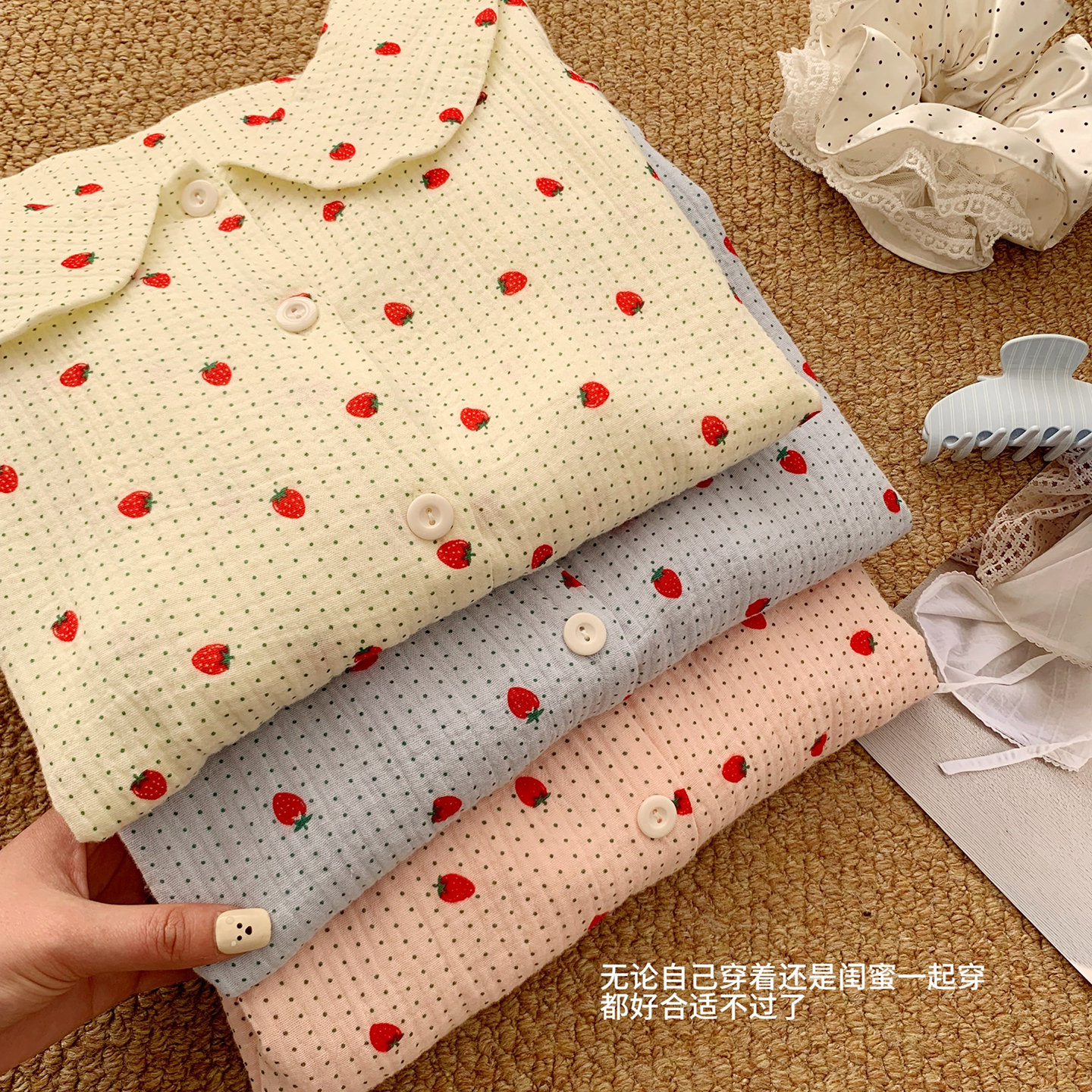 当前位置: 91家纺网 > 商品网购 > 居家日用 > 睡衣/家居服套装 > 妍景家居生活馆 2026新款M07-甜心草莓 黄色