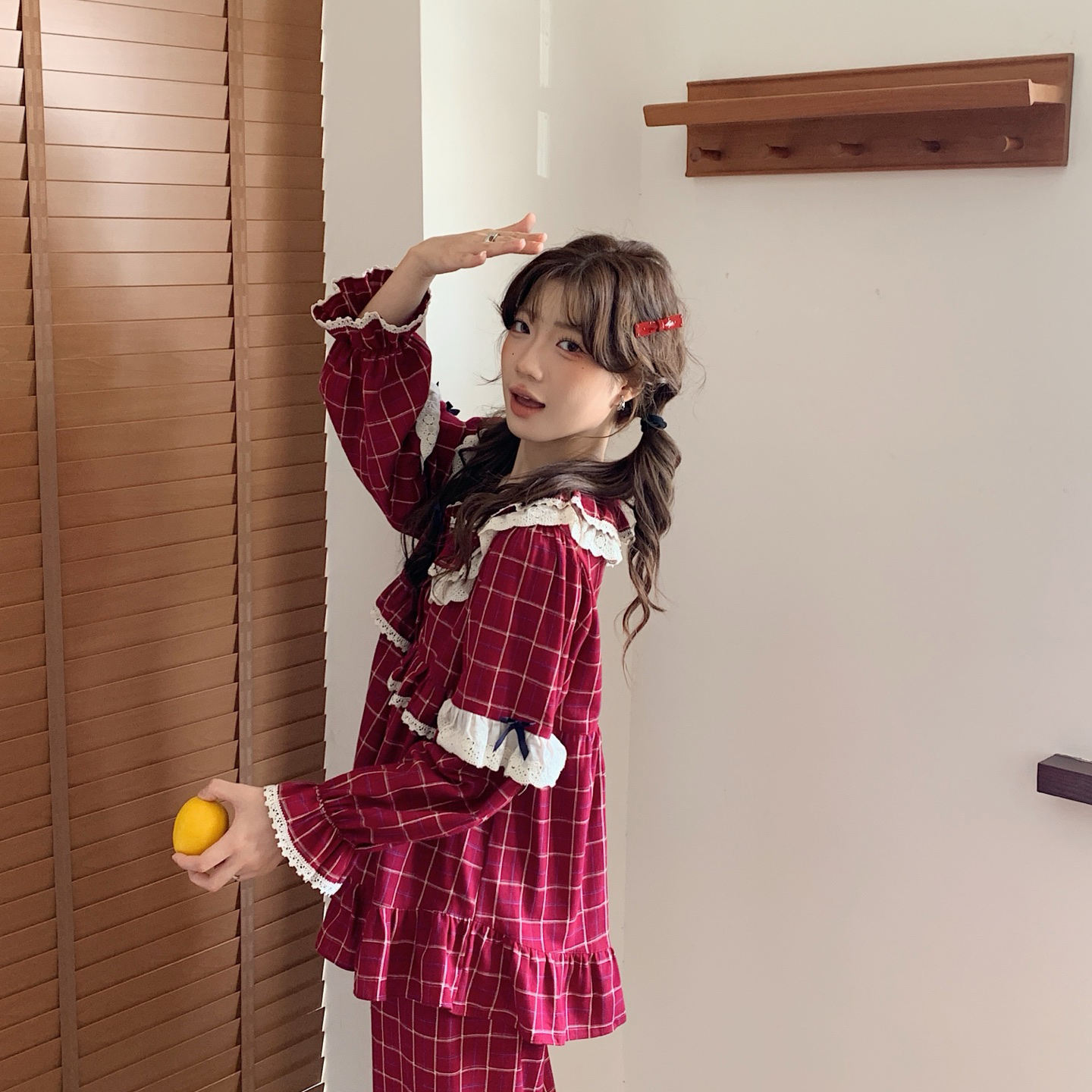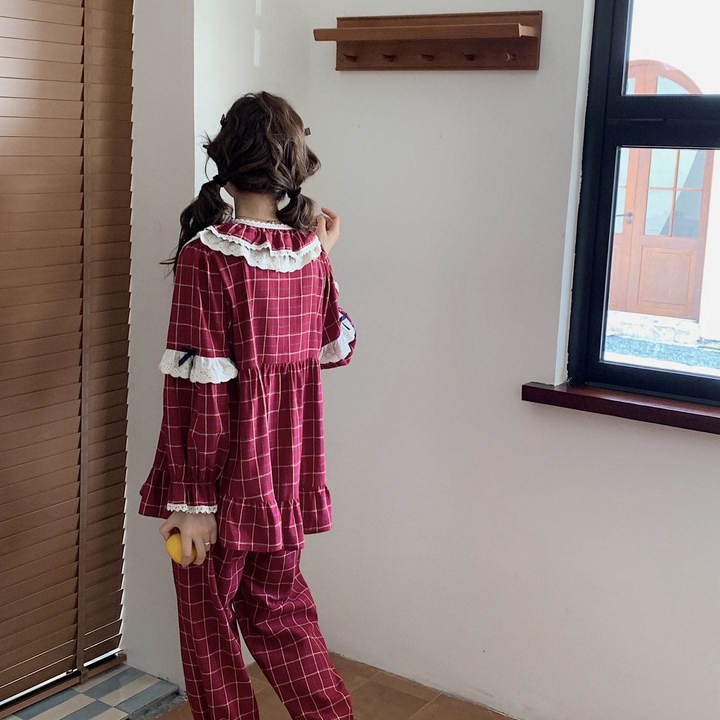 (总)妍景家居生活馆 2026新款韩系甜美蕾丝花边格子套装