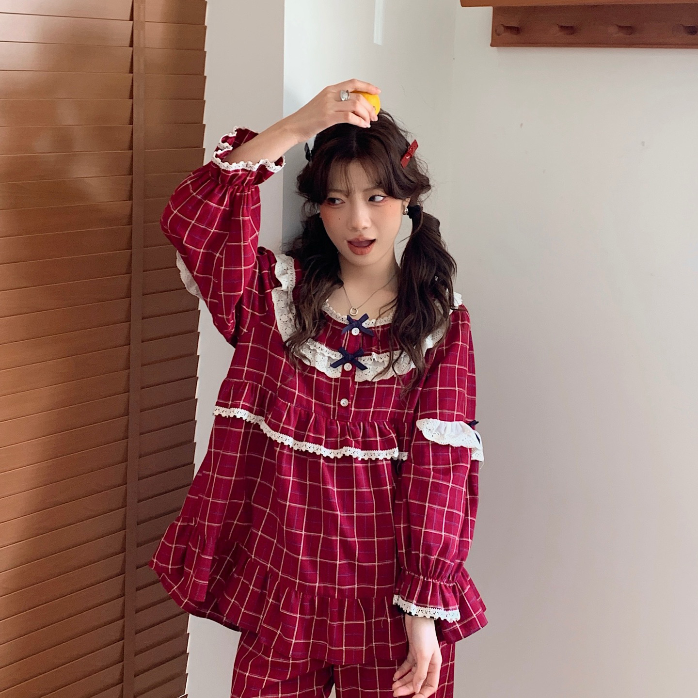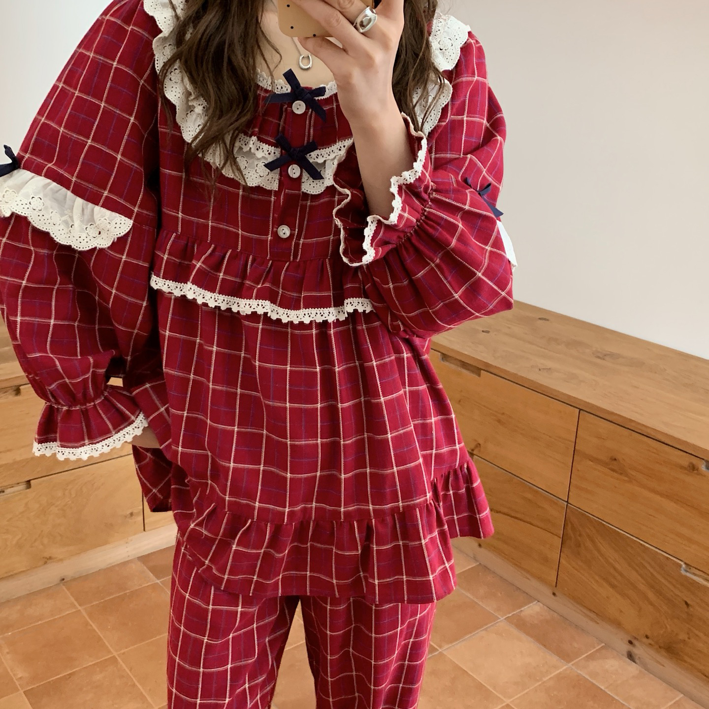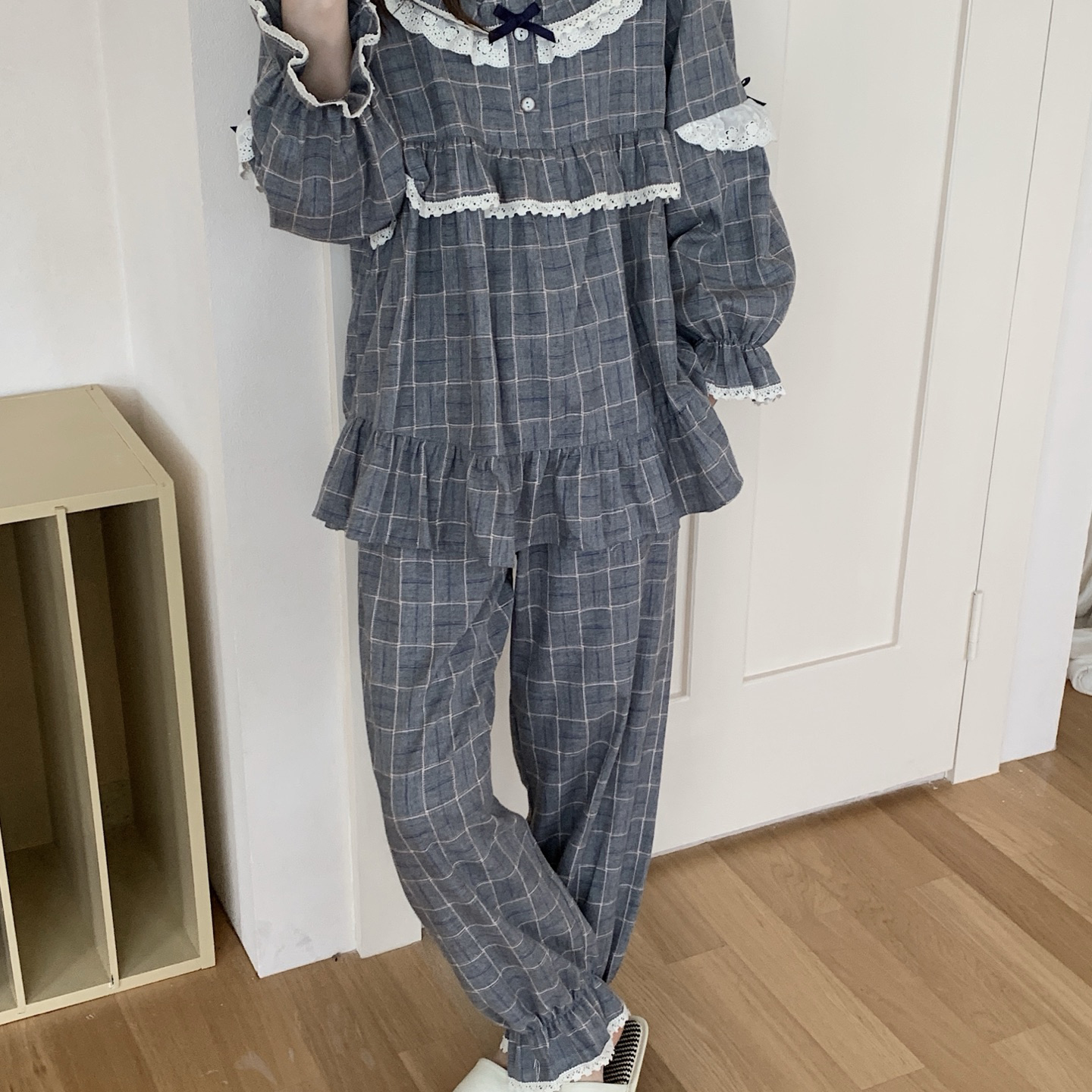 商品名称:(总)妍景家居生活馆 2026新款韩系甜美蕾丝花边格子套装