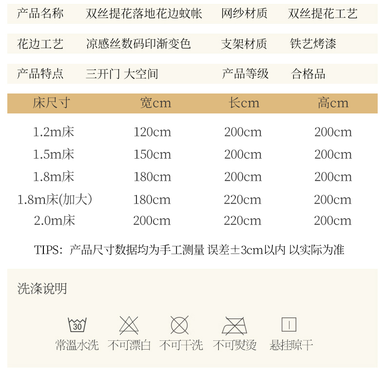 商品名称:世婕 2026新款双丝提花落地花边蚊帐-浪漫满屋 浪漫满屋-香妃玉