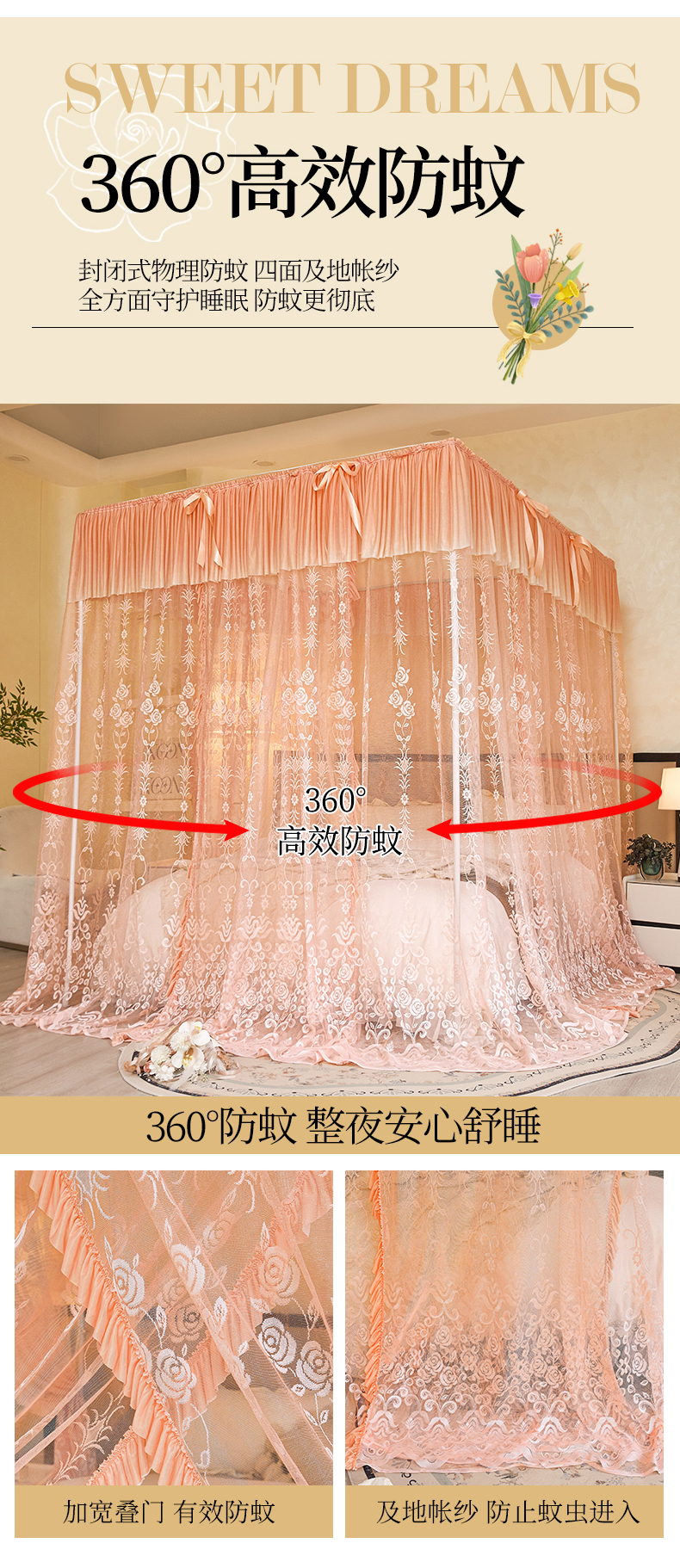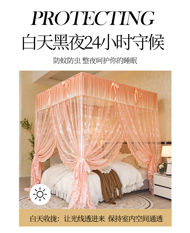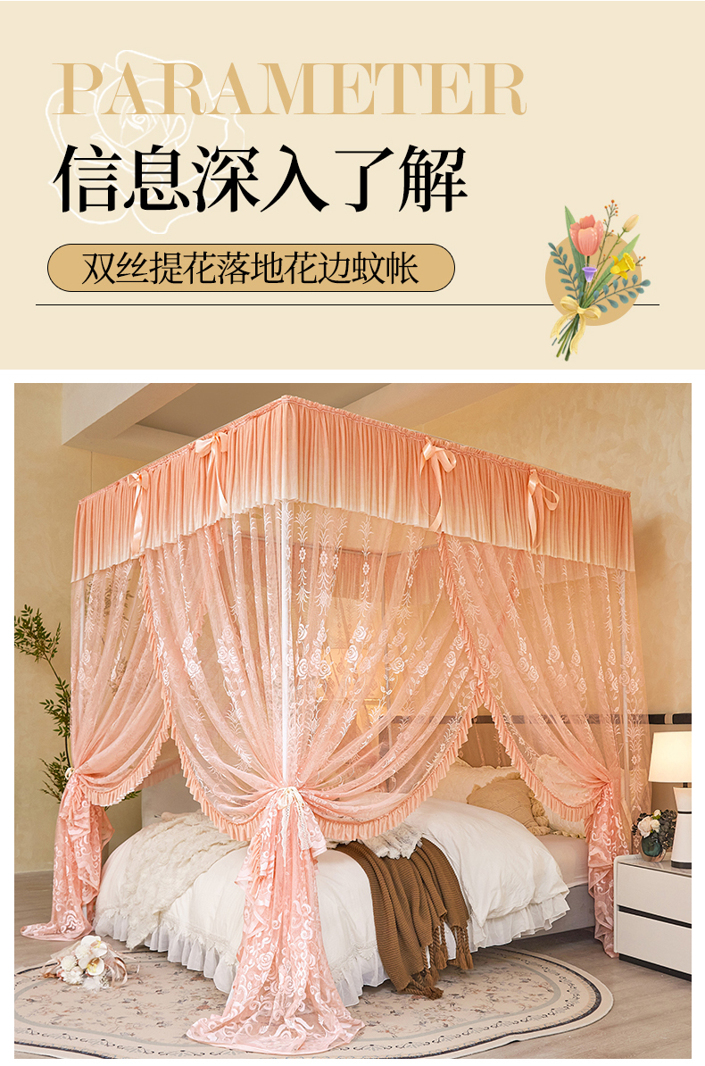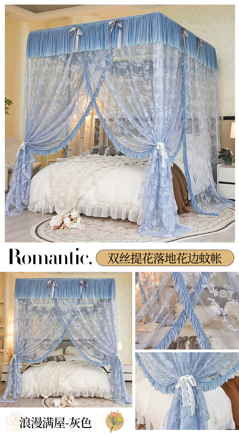 (总)世婕 2026新款双丝提花落地花边蚊帐-浪漫满屋,浪漫满屋-香妃玉,浪漫满屋-海岛蓝,浪漫满屋-灰色,浪漫满屋-柔粉白,浪漫满屋-樱花粉