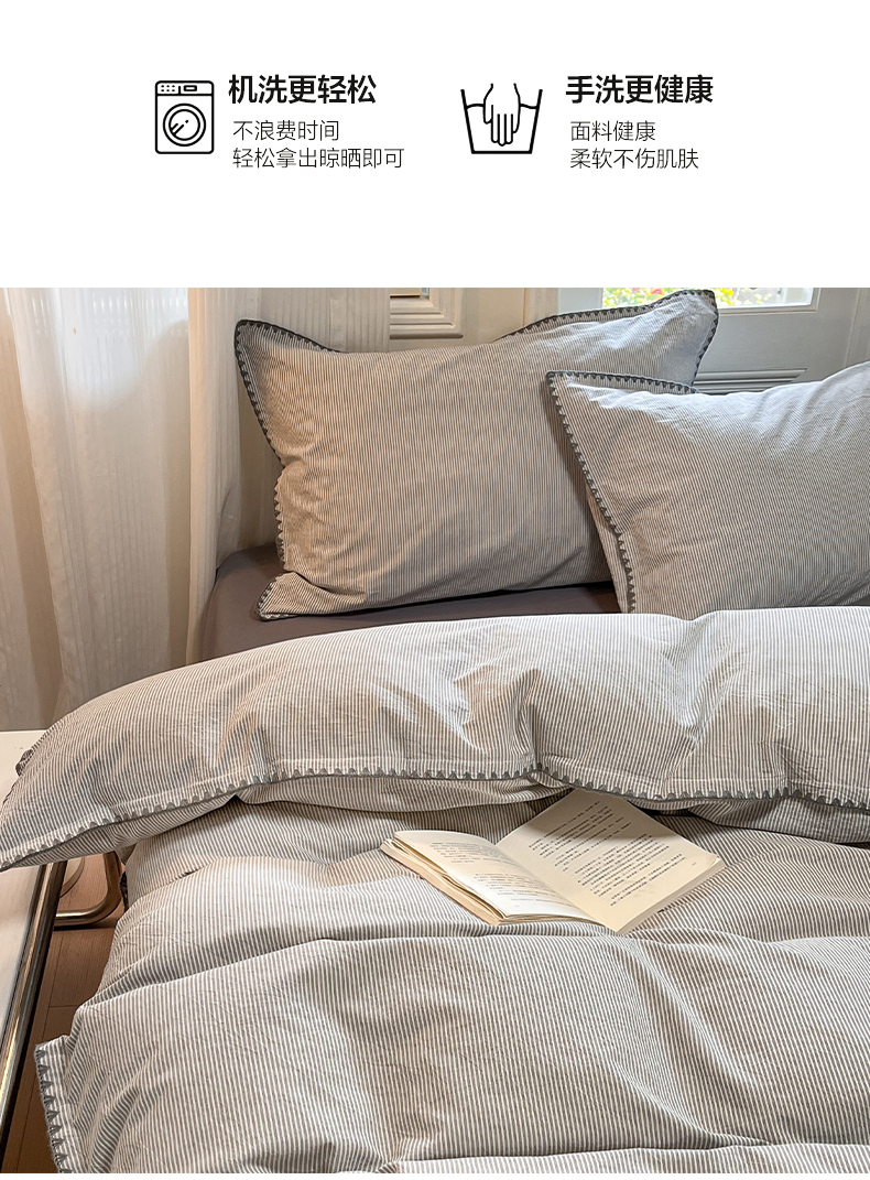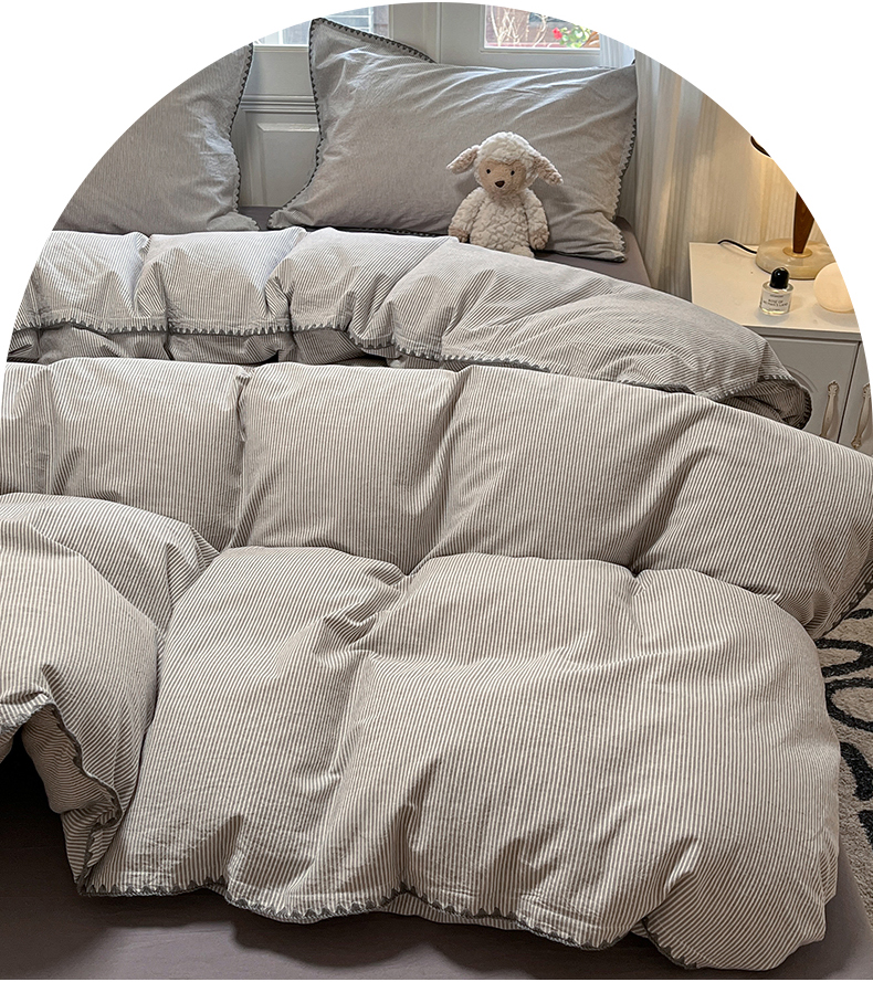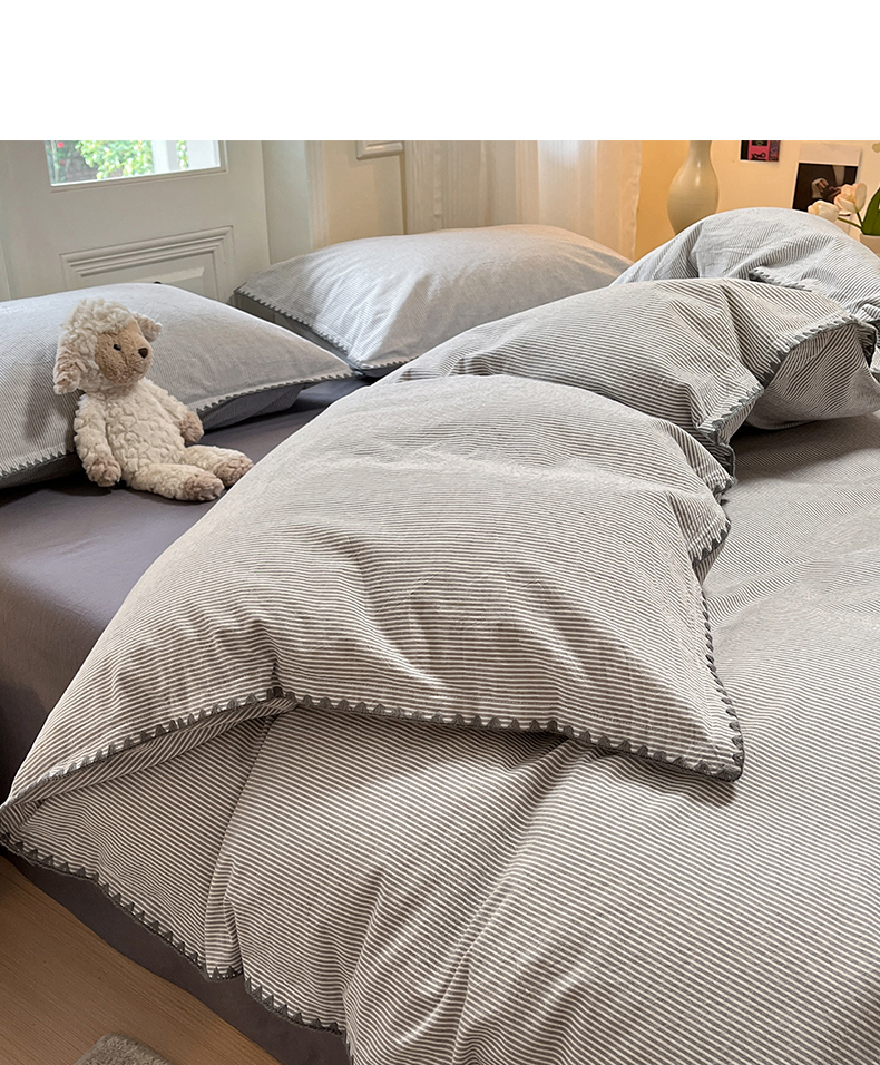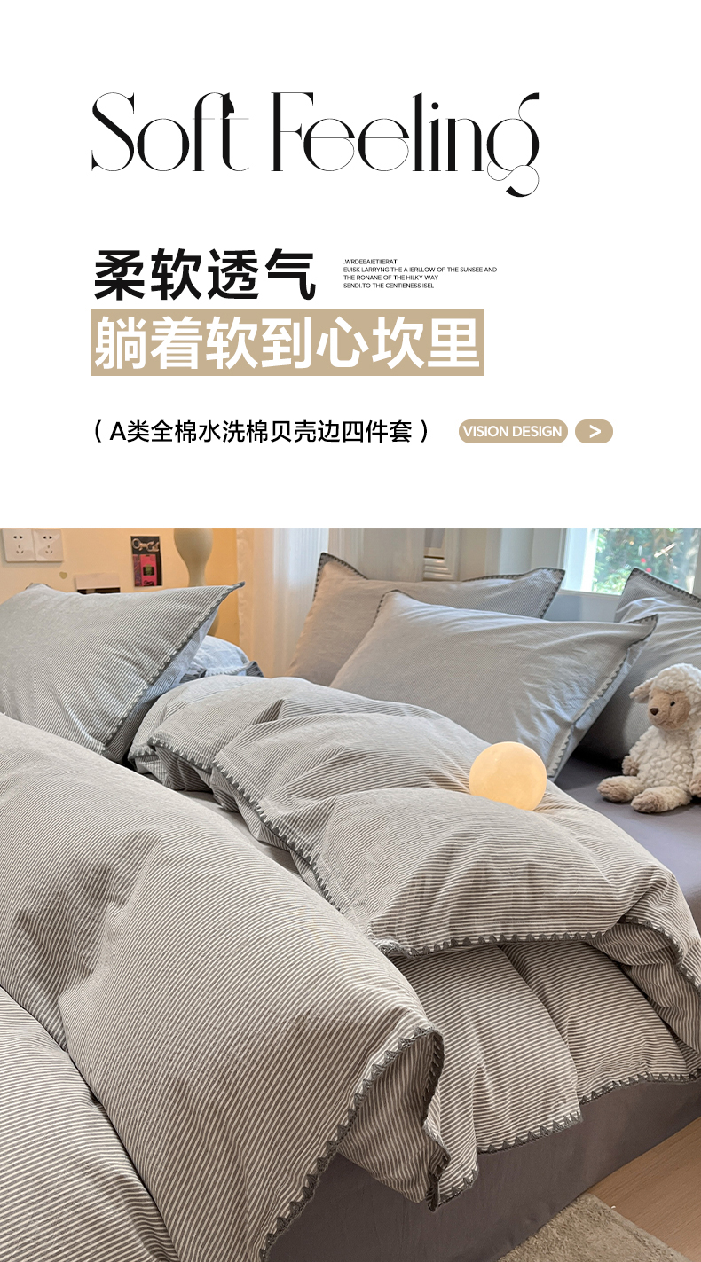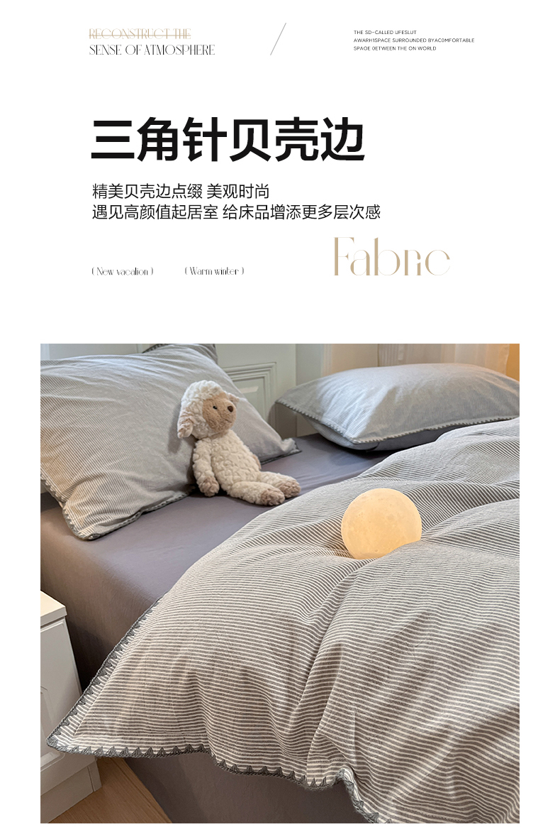 商品名称:禧澜庭 2026新款全棉纯棉水洗棉贝壳边三角针四件套 初见-灰
