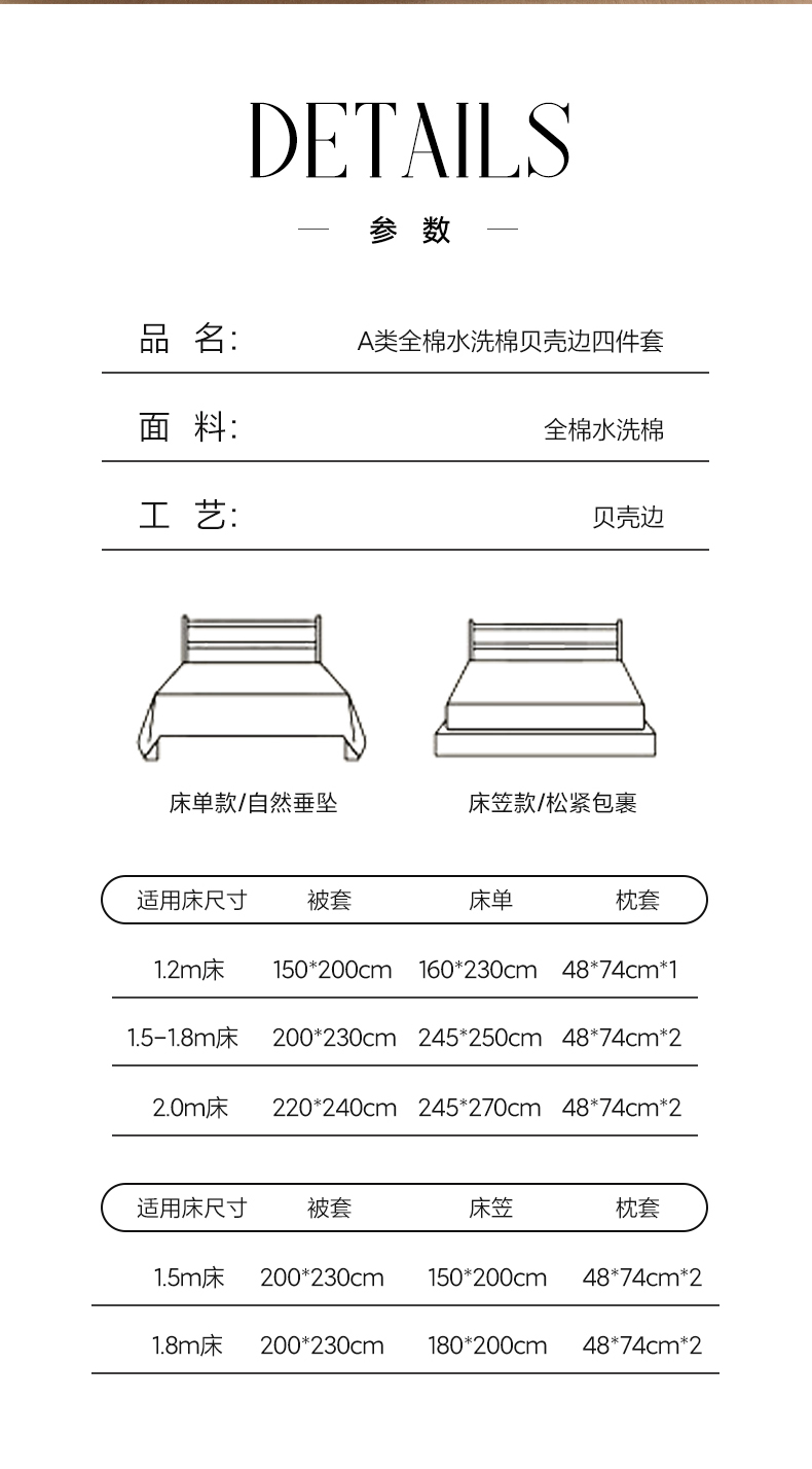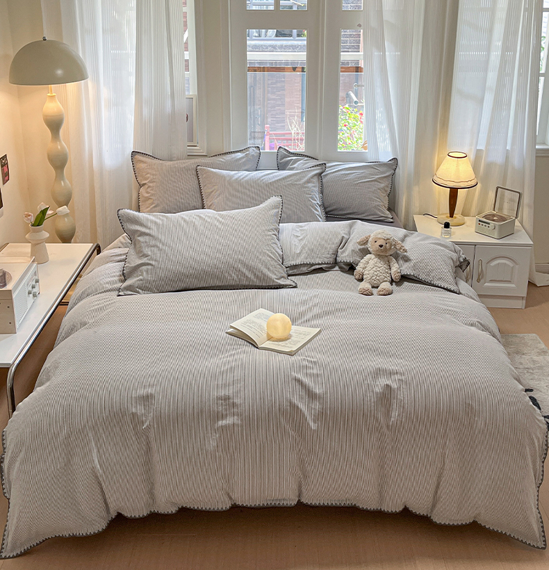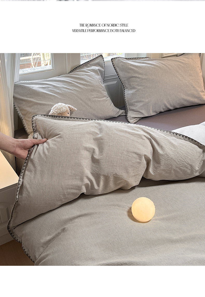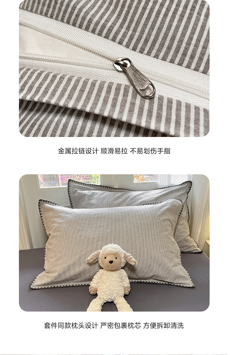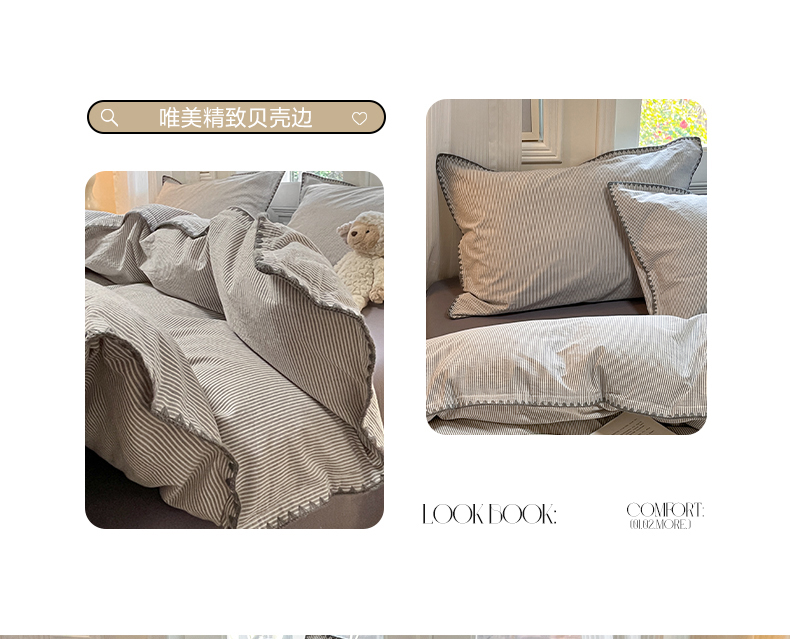 商品名称:禧澜庭 2026新款全棉纯棉水洗棉贝壳边三角针四件套 初见-灰