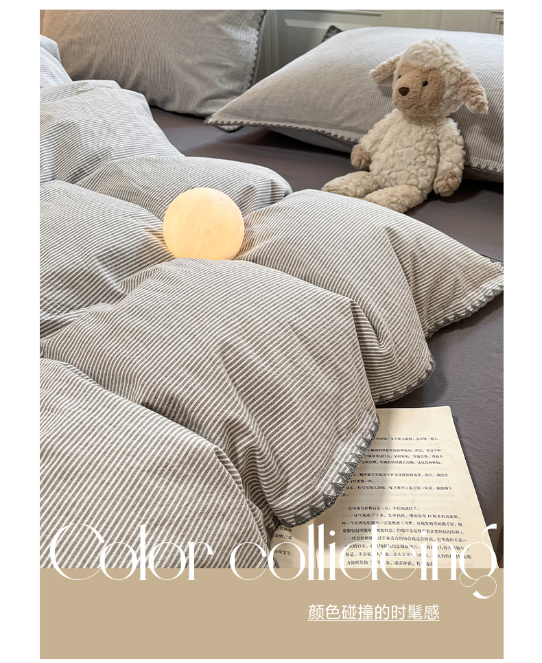 (总)禧澜庭 2024新款纯棉全棉水洗棉斜纹无印风纯棉四件套三件套,梵星蓝+奶黄,湖蓝+梧桐灰,抹茶绿+奶茶,奶昔白+卡其,奶昔白+抹茶绿,奶油粉+梧桐灰,驼色+奶茶色,银灰+梧桐灰,优雅紫+香叶粉