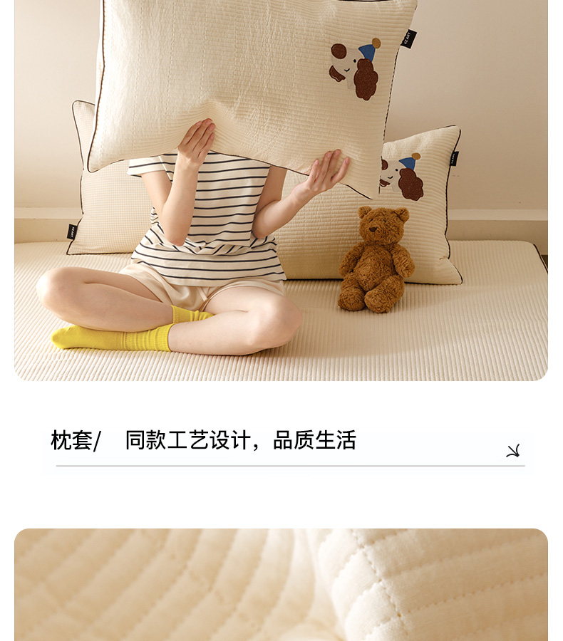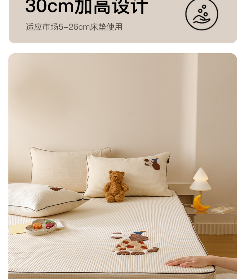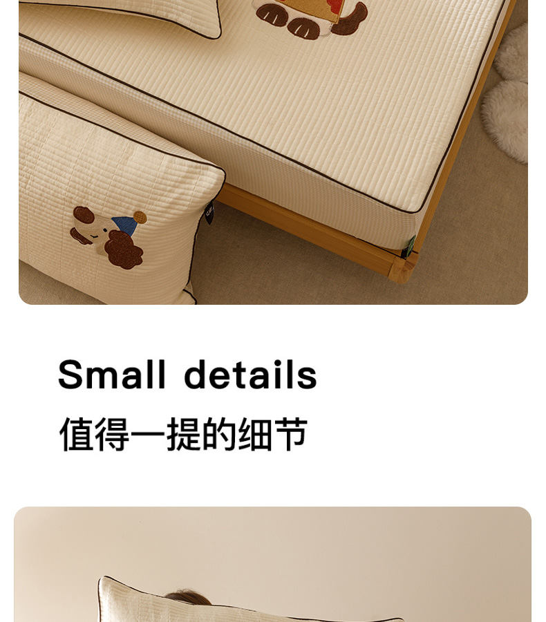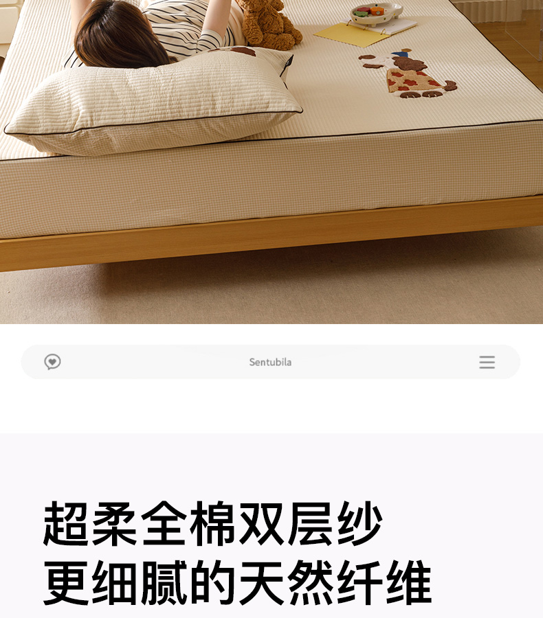 (总)卡姿家纺 2026春夏全棉双层纱床盖式床笠三件套,彩球小猫,圣诞树,糖果小熊,小狗贝塔,小狗喜乐,小狗元宝
