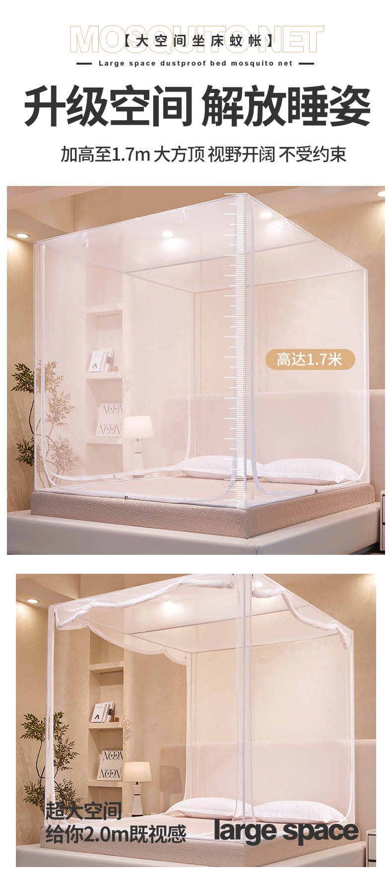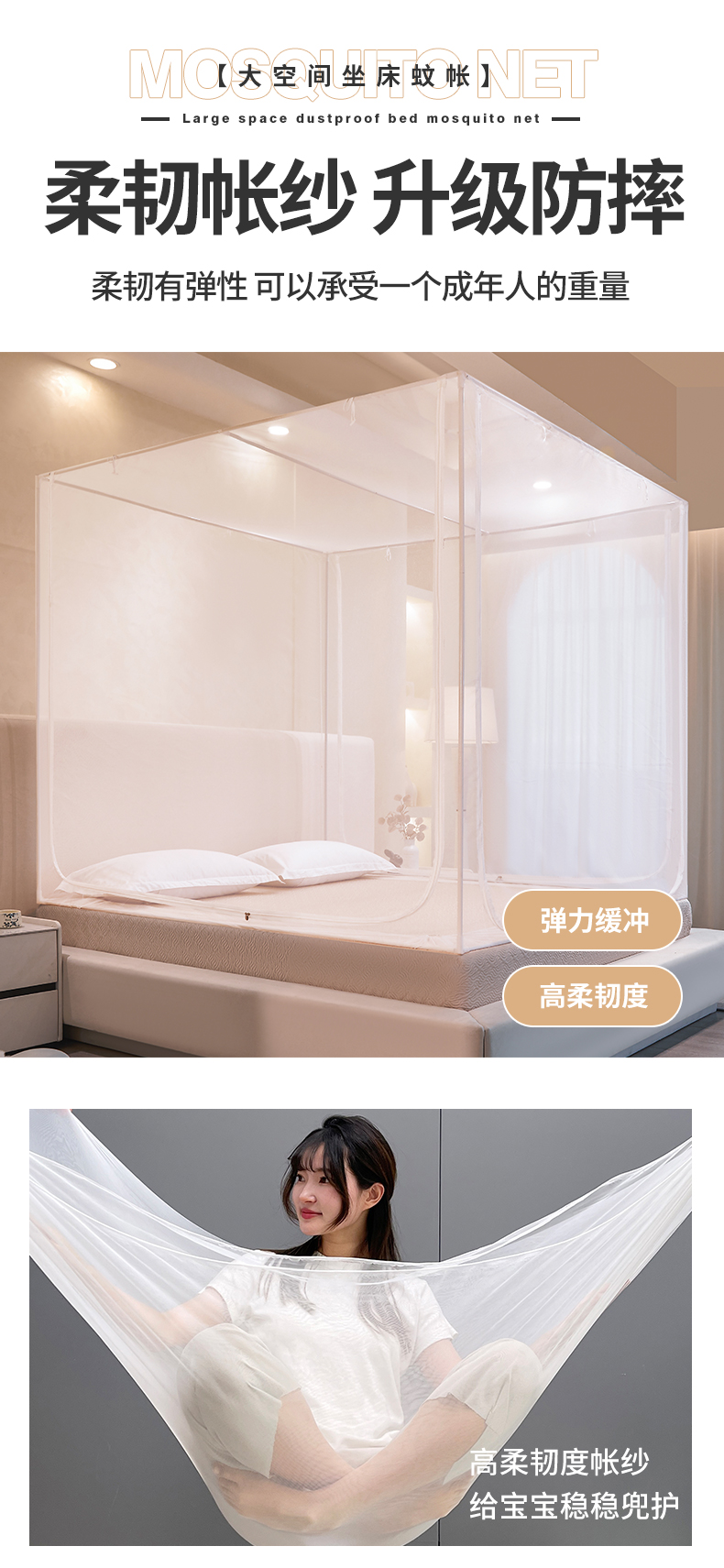 商品名称:(总)世婕 2026新款大空间防尘坐床蚊帐-素夏