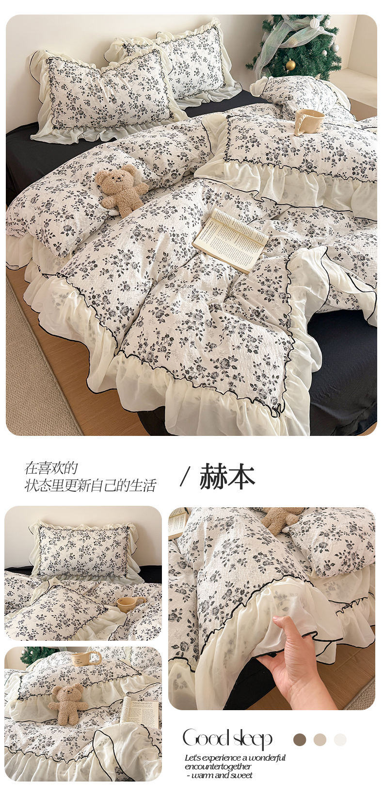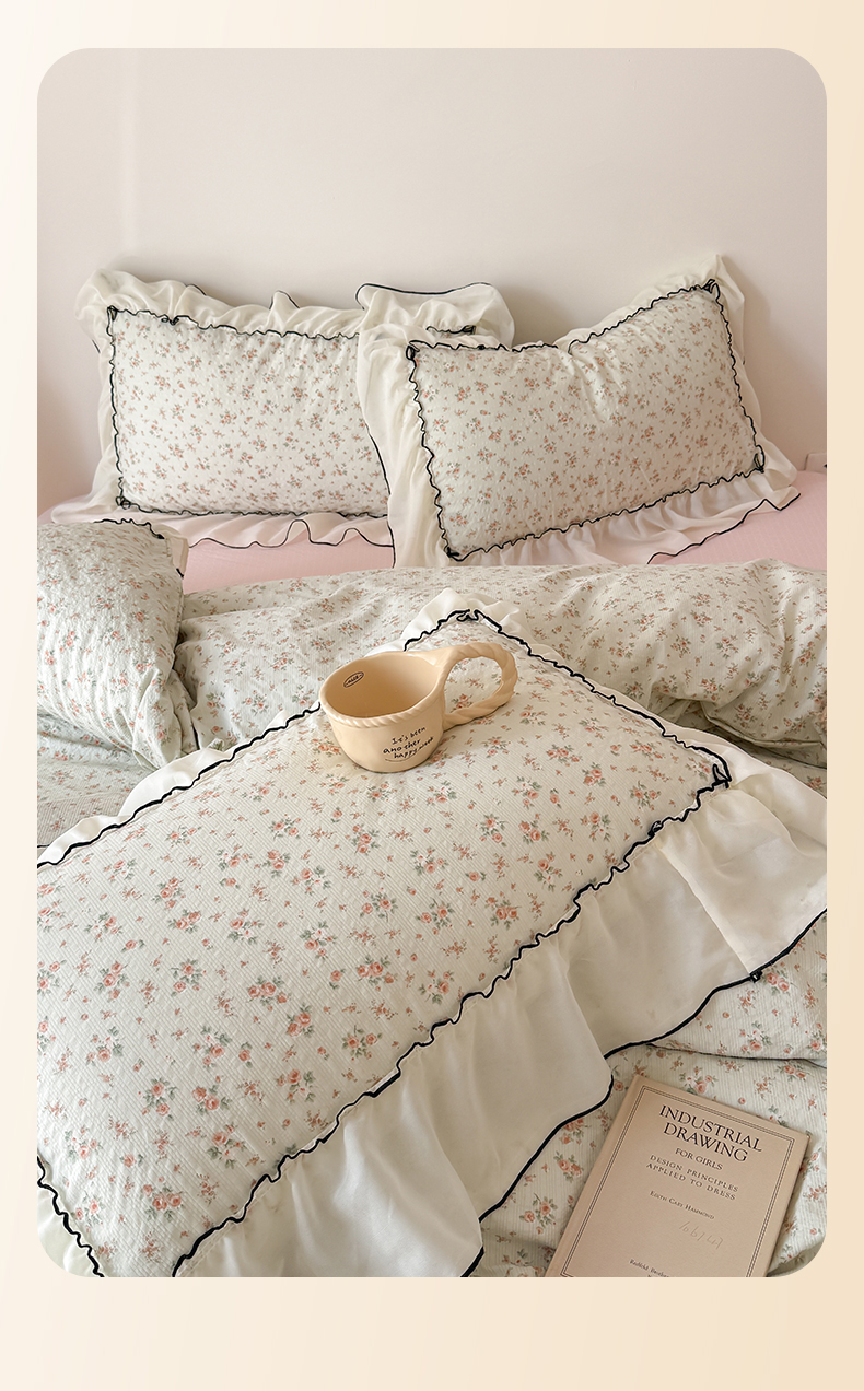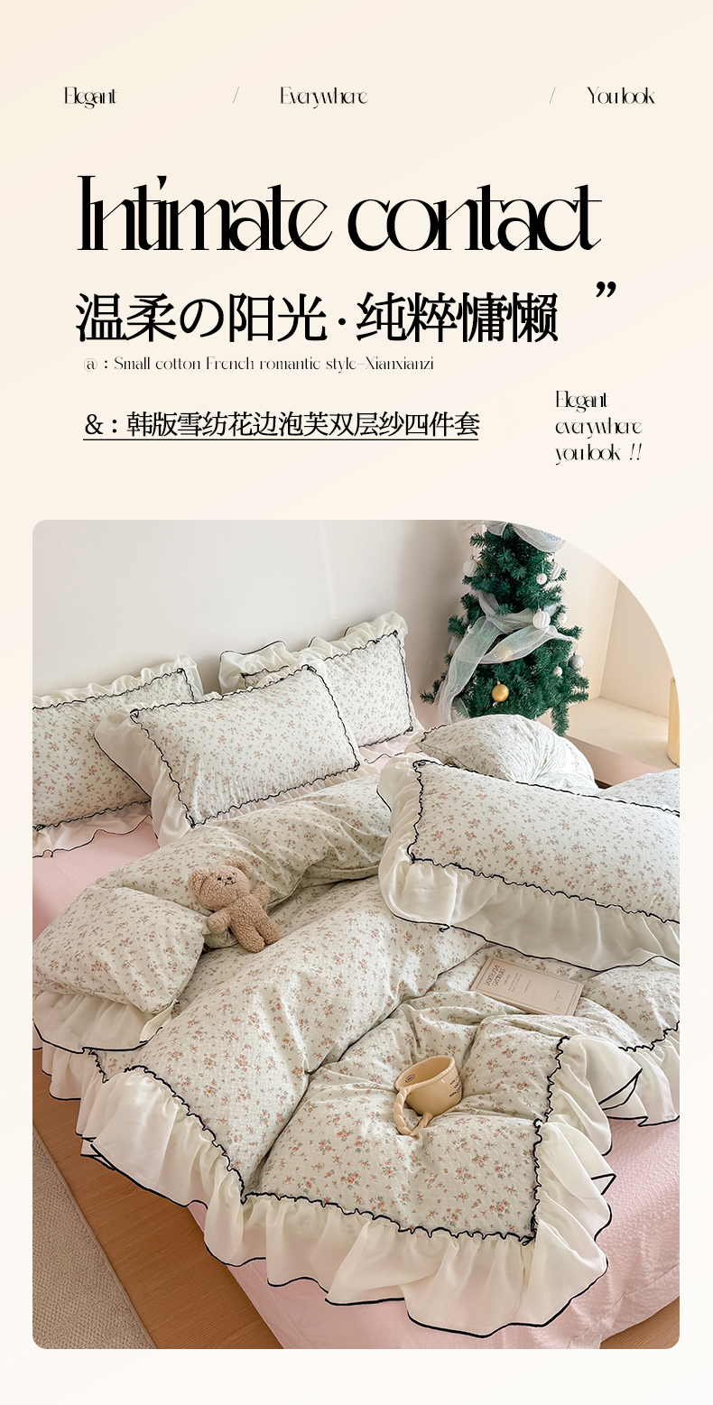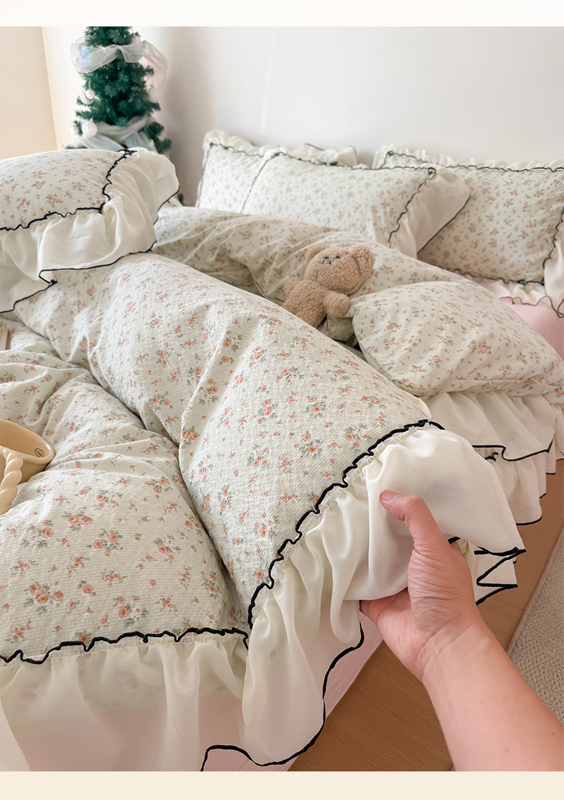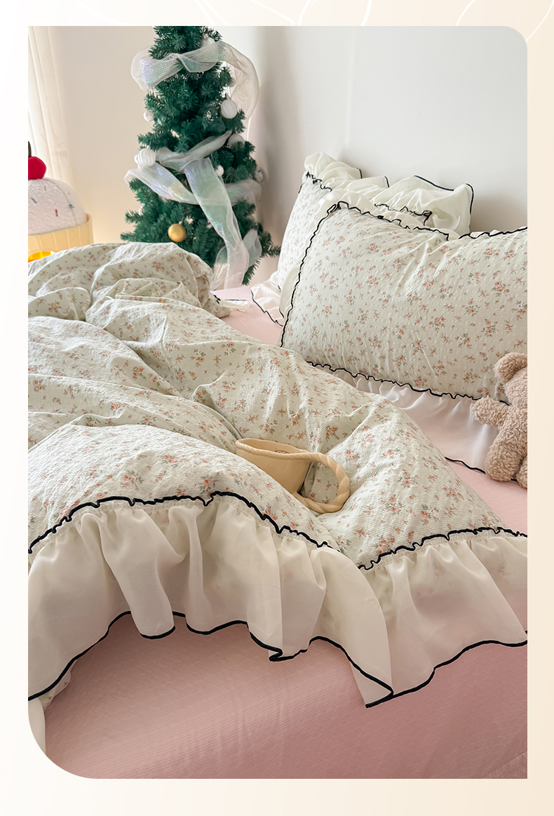 商品名称:吾欢心 2026春夏新款韩版雪纺花边泡芙双层纱四件套 花韵