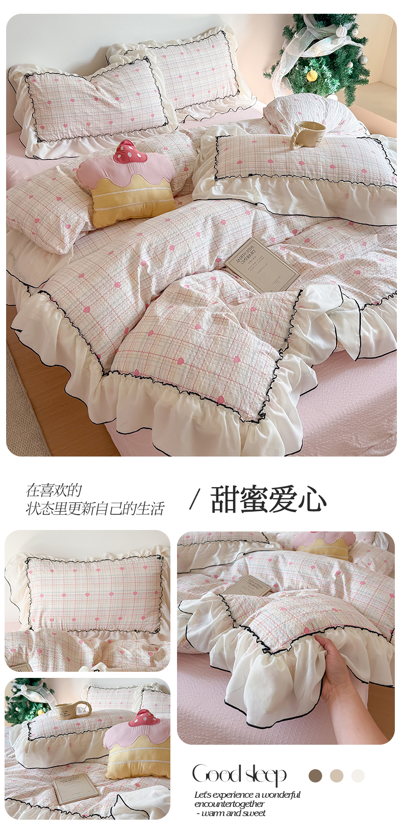 (总)吾欢心 2026春夏新款古法水洗仿棉韩版双层花边四件套,KT猫,斑马,彩色蝴蝶结,卡通小狗,可爱星星人,萌宠宝贝,秘境花园,奶萌小狗,田园趣味,汐颜,小草莓,樱桃派