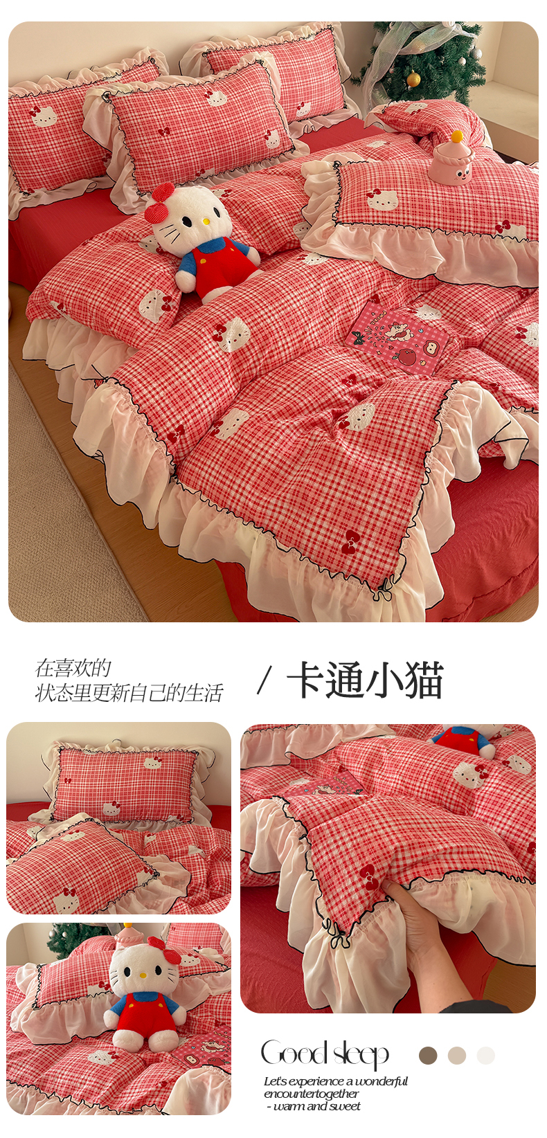 (总)吾欢心 2026春夏新款韩版雪纺花边泡芙双层纱四件套,花未央,费尔岛小马,复古猫咪,海棠物语,赫本,花期,花韵,卡通小猫,猫咪乐园,蜜爱甜心,奶萌小狗,奶油樱桃,甜蜜爱心