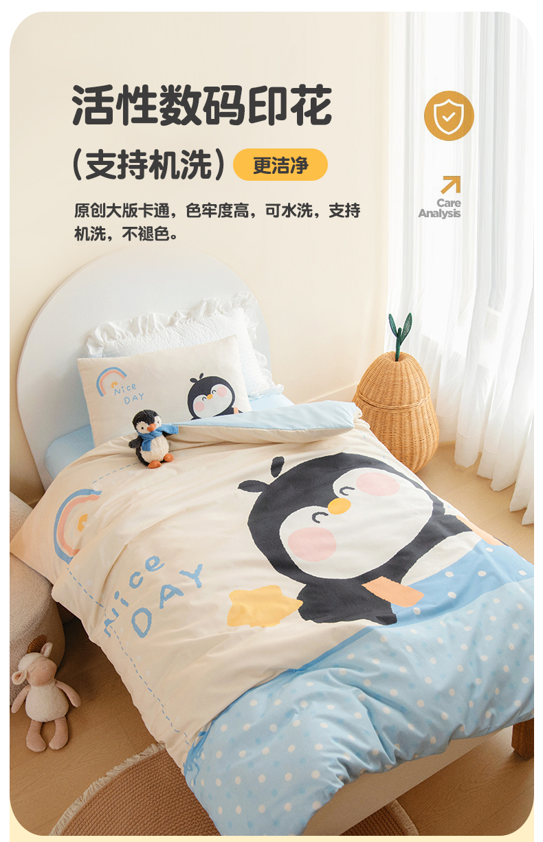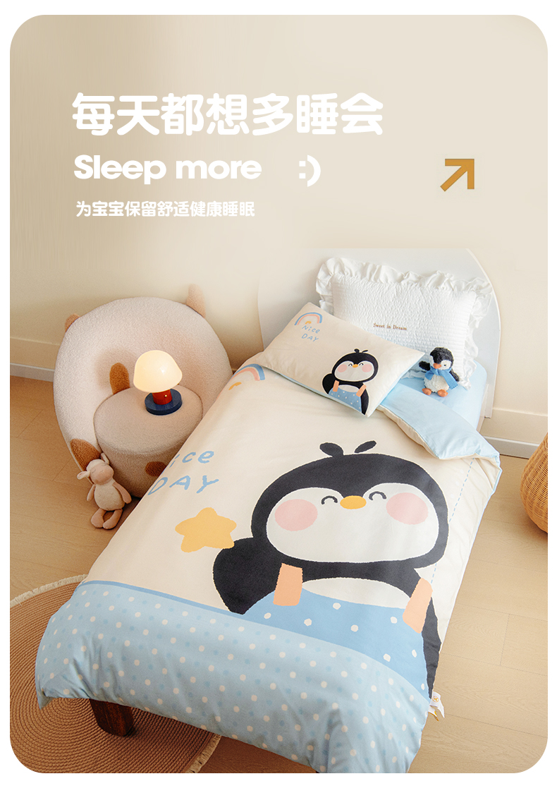 商品名称:绒梦里 2026新款A类全棉纯棉卡通大版幼儿园三件套 波点企鹅(另垫套有60*150cm/70*150cm/80*150cm/88*168cm/80*180cm)特殊垫套尺寸的价格咨询客服微信哦!