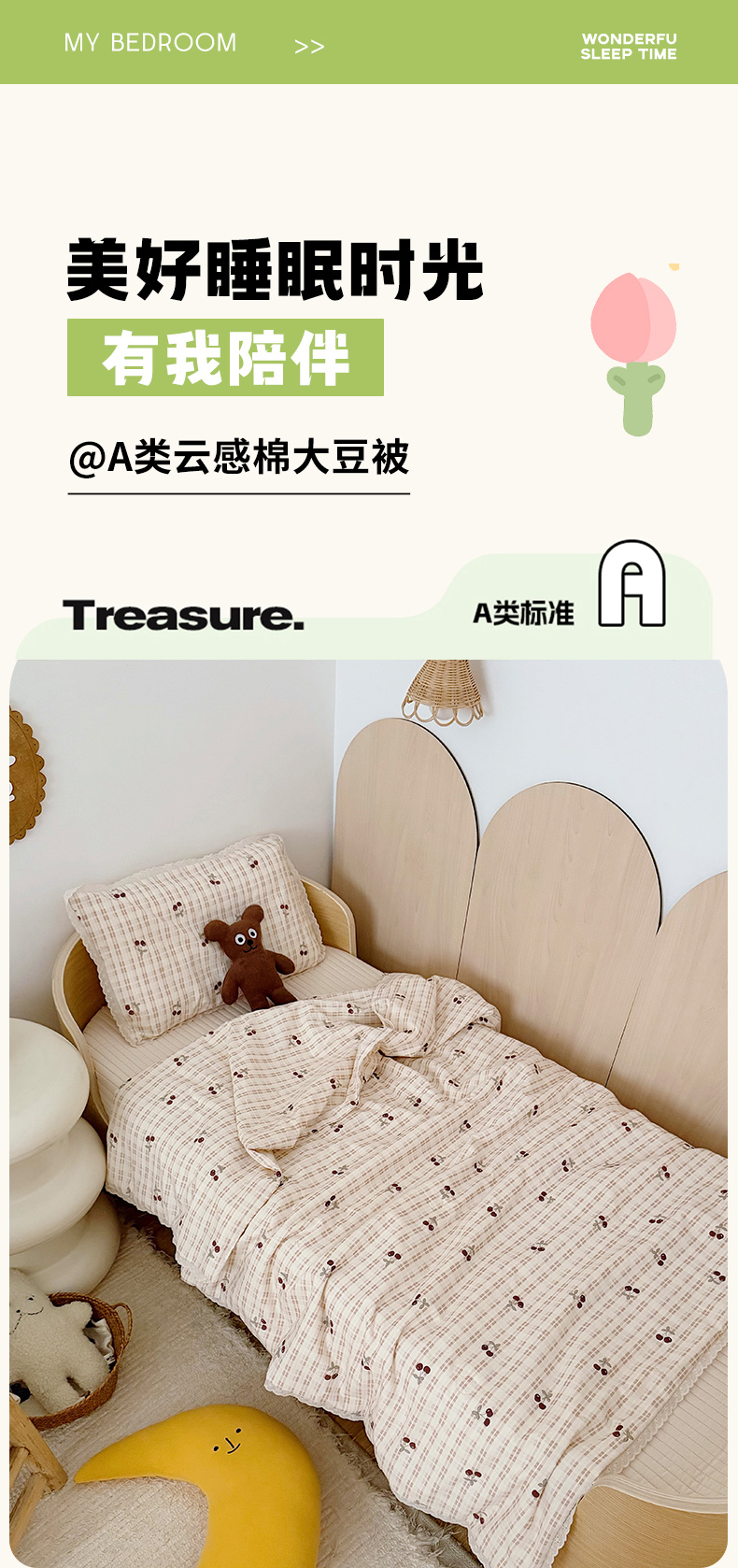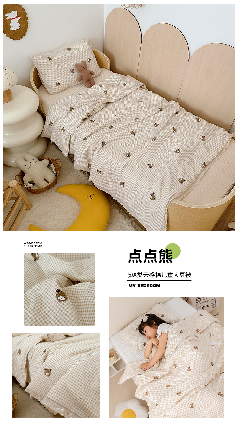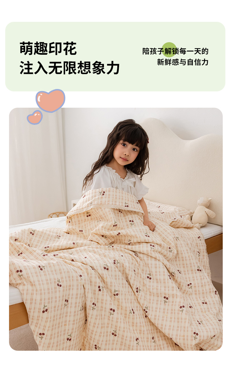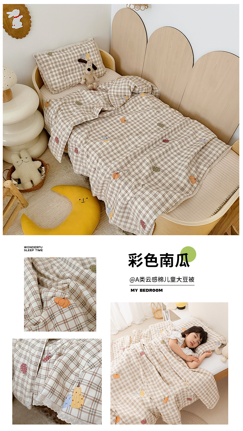 • 91家纺网 家纺一手货源 找家纺 (总)心卓婴童馆 2026春夏新款云感棉四季被大豆被被子被芯,白底星星,彩色南瓜,点点熊,粉豹纹,粉格子小猫,红色樱桃,梦幻乐园,碎花小兔,棕色豹纹