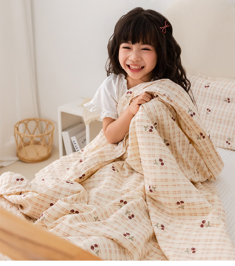 • 91家纺网 家纺一手货源 找家纺 心卓婴童馆 2026春夏新款云感棉四季被大豆被被子被芯 红色樱桃