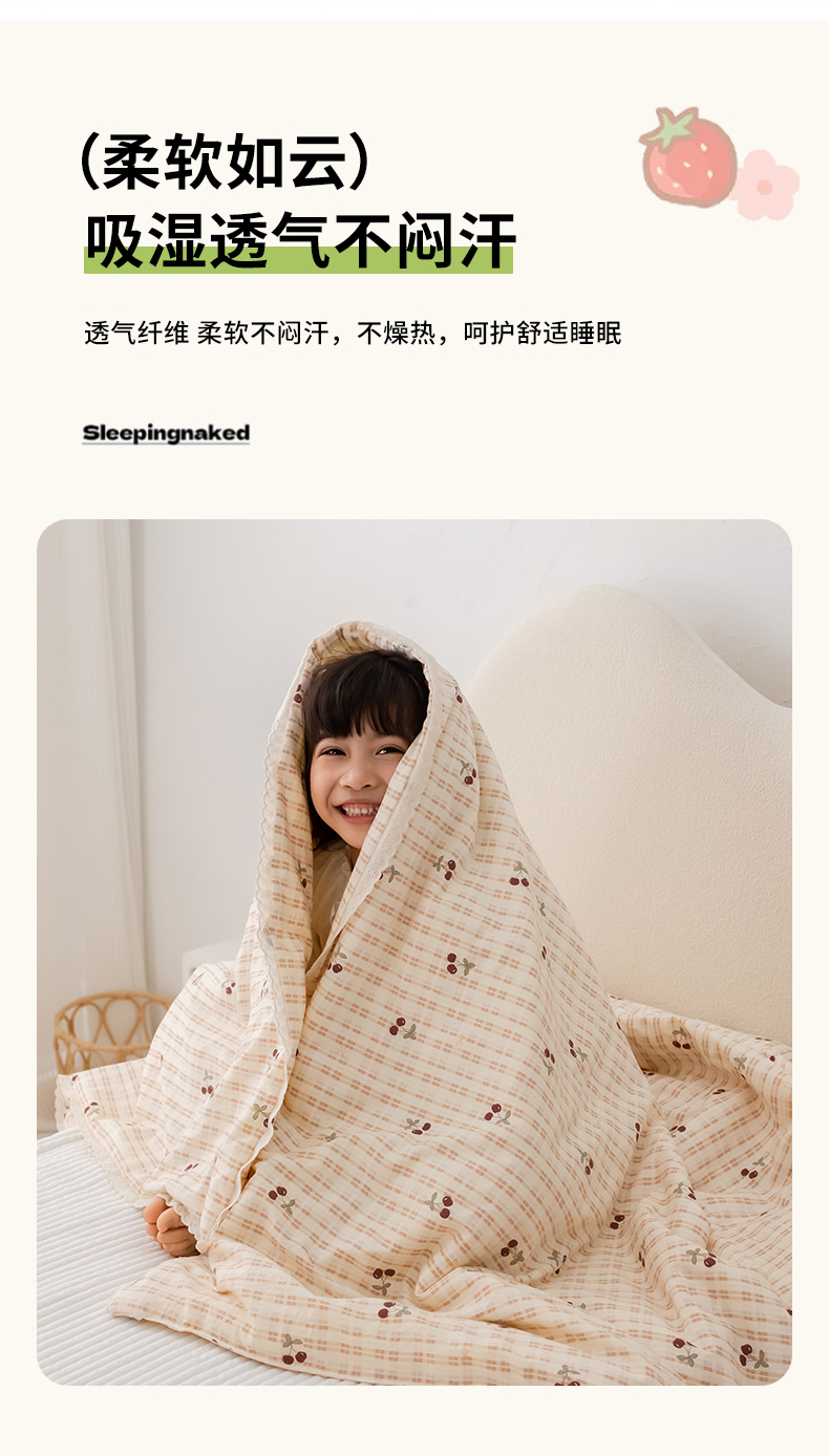 心卓婴童馆 2026春夏新款云感棉四季被大豆被被子被芯 红色樱桃