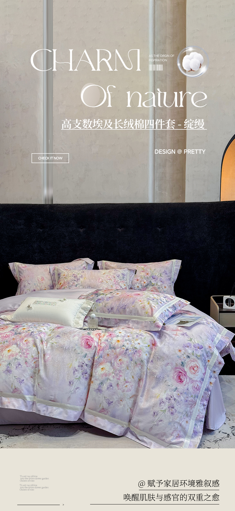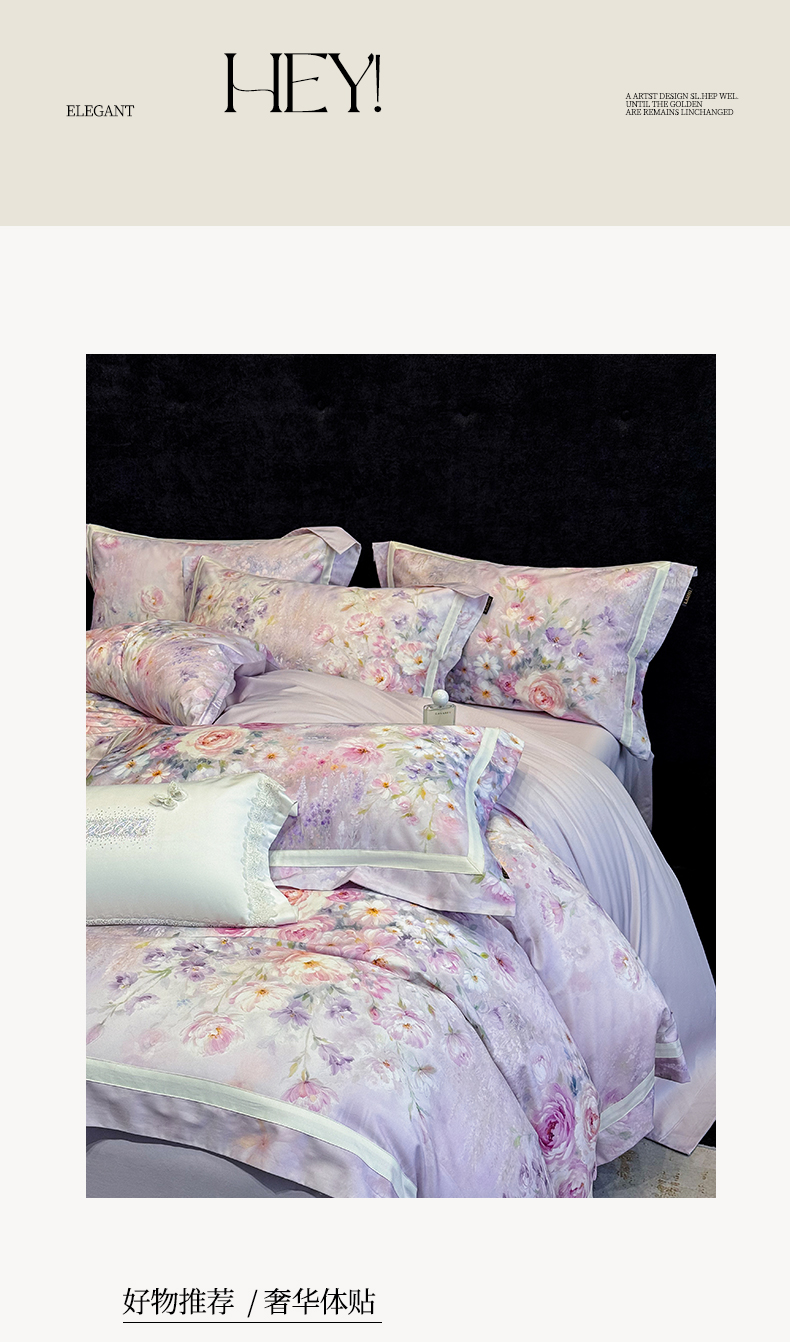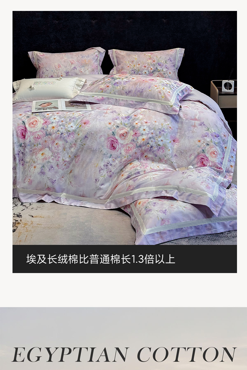 当前位置: 91家纺网 > 商品网购 > 床品套件 > 四件套 > 长绒棉四件套 > 欣宜家纺 2026新款50x50s纯棉全棉埃及长绒棉刺绣绣花床上四件套【含高端礼盒】-绽缦 绽缦-梦幻紫