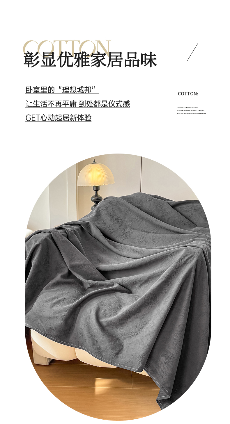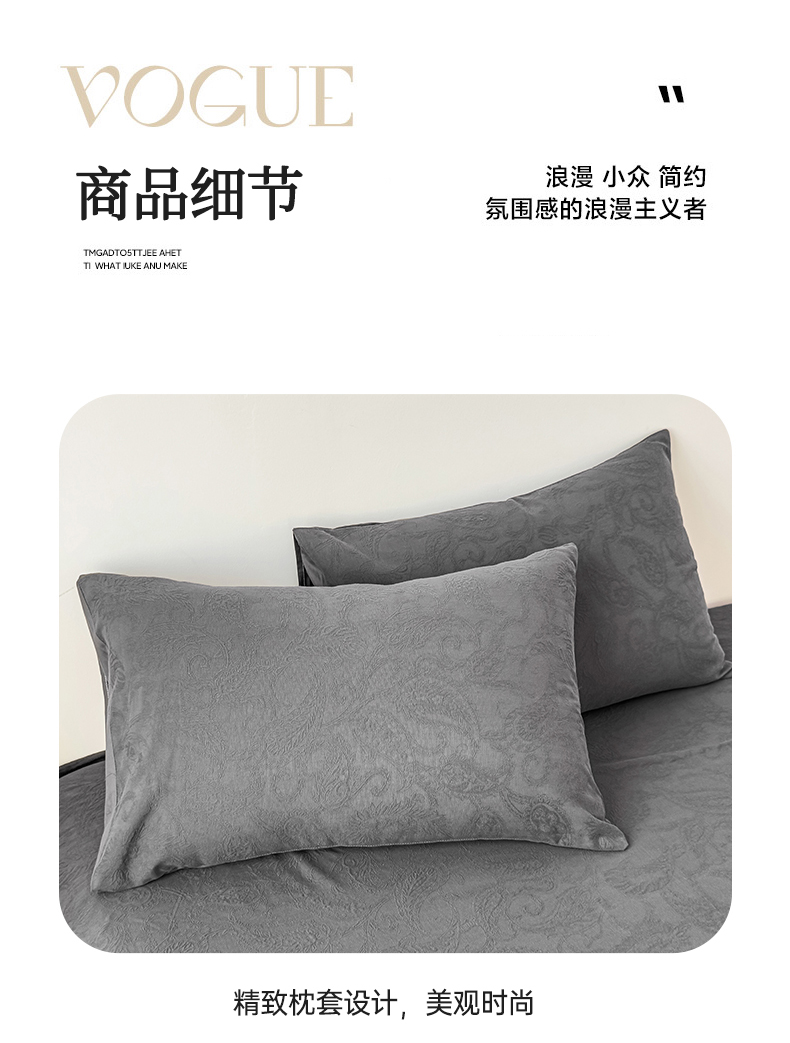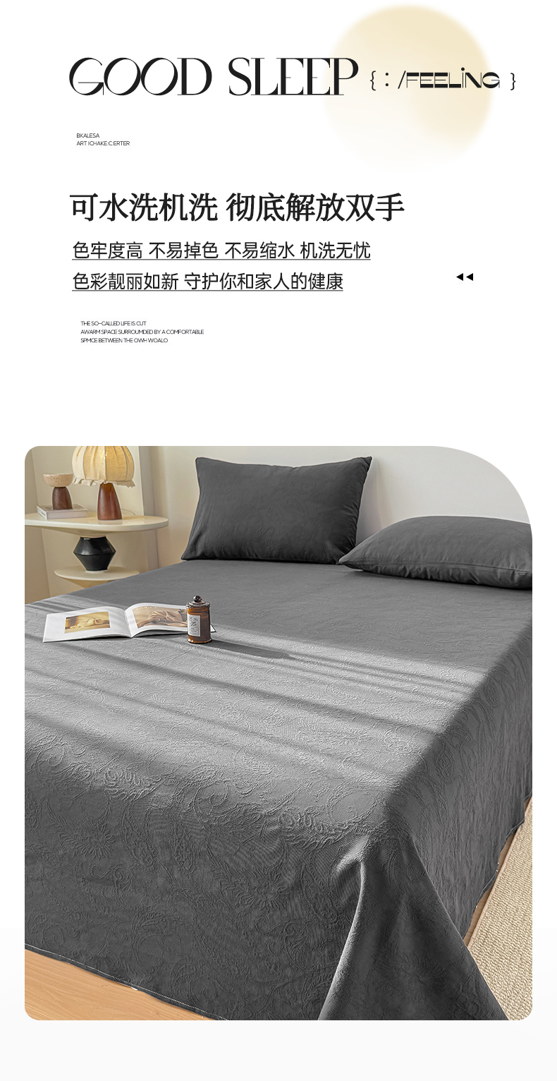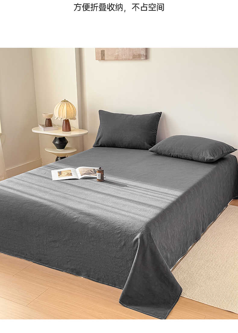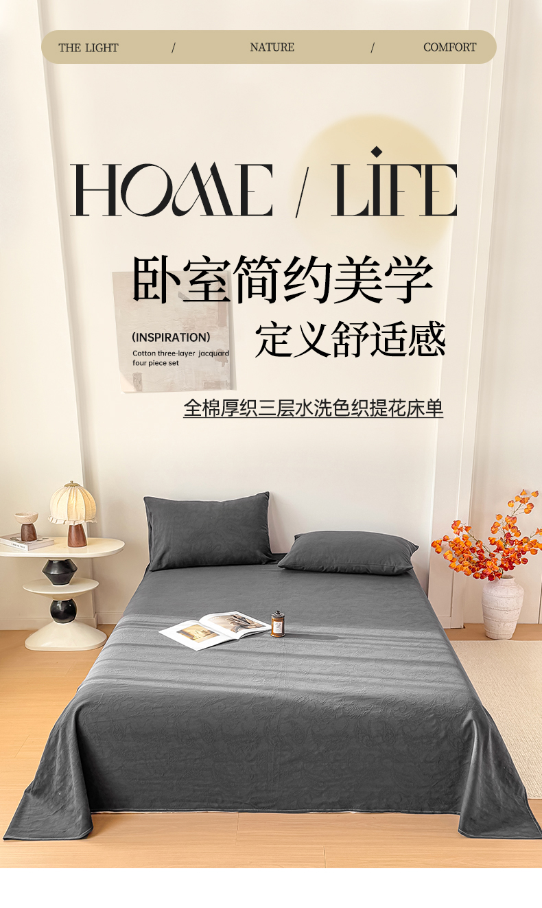 商品名称:女子家纺 2026新款全棉厚织三层水洗色织提花床单 罗格西亚-素墨