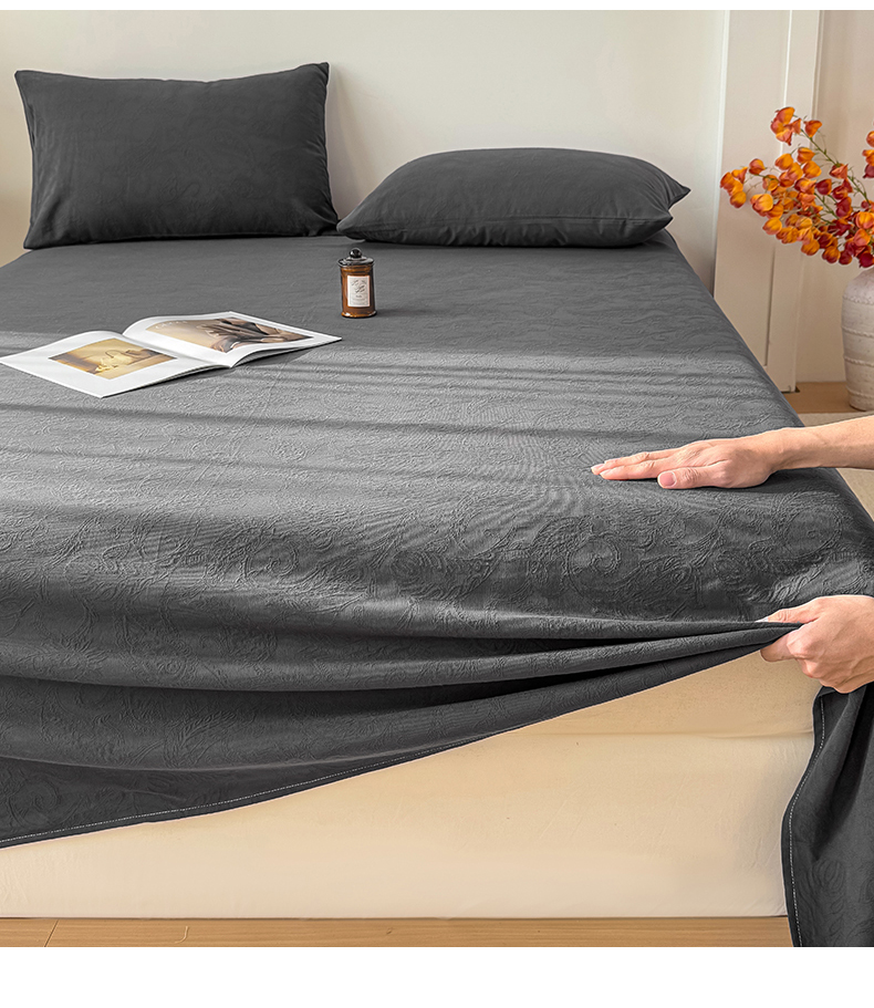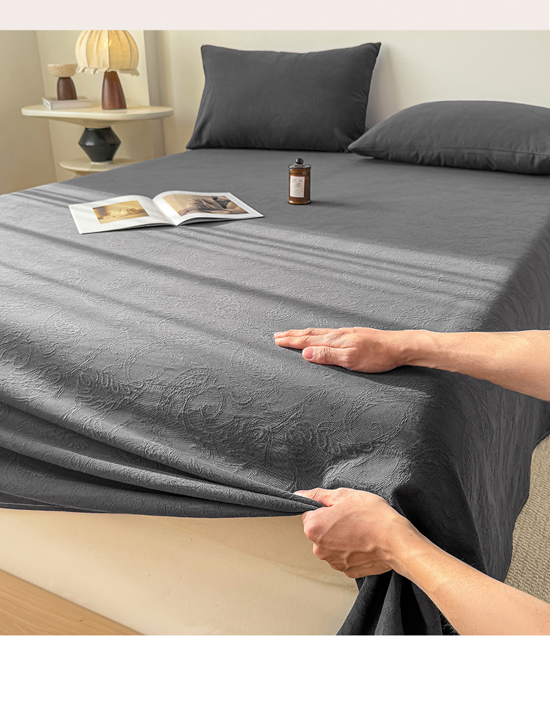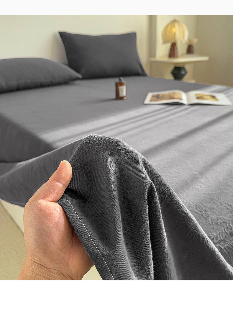 女子家纺 2026新款全棉厚织三层水洗色织提花床单 罗格西亚-素墨