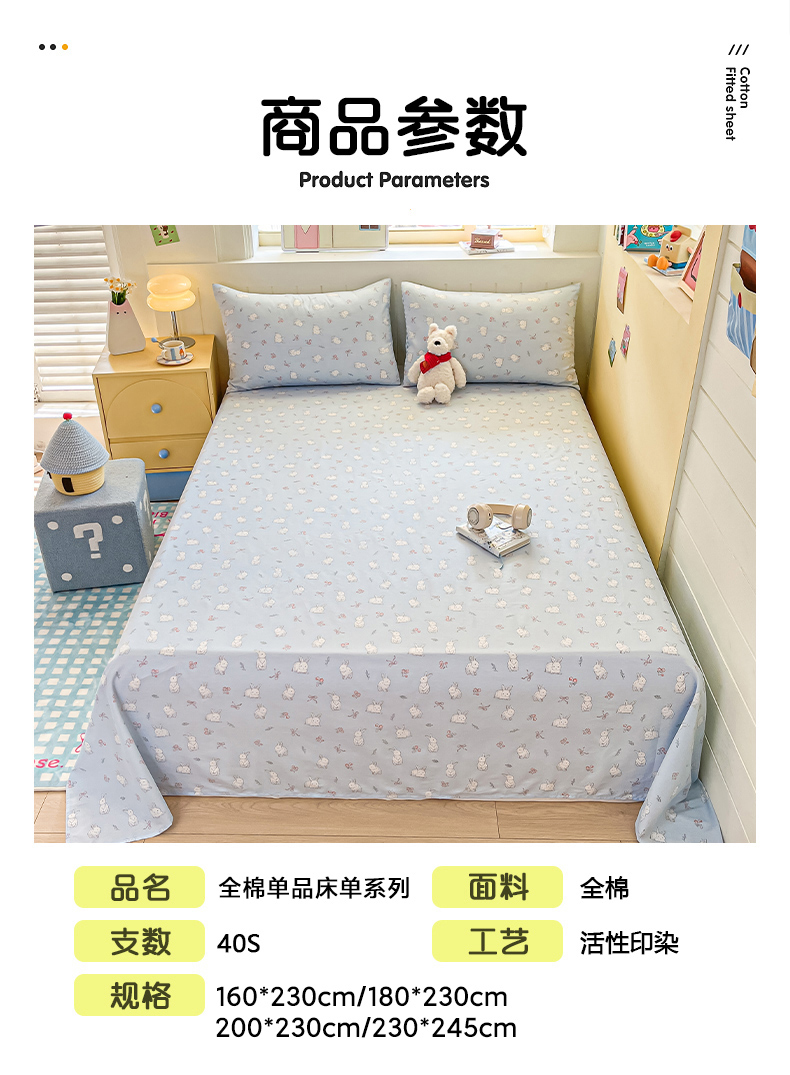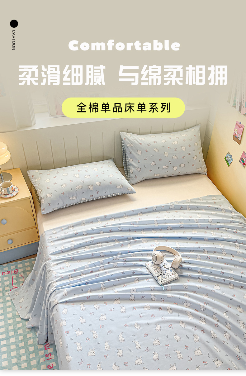 (总)瑞莱 2025新款开学季纯棉13372单品床单床笠,仙草,蘑菇屋,班尼狗,彼得兔,红色郁金香,漫画家,皮皮狗,咋肥事鸭,彩虹恐龙,赫本花,蓝爱心,少女心,桃桃女孩,(纯棉床单)