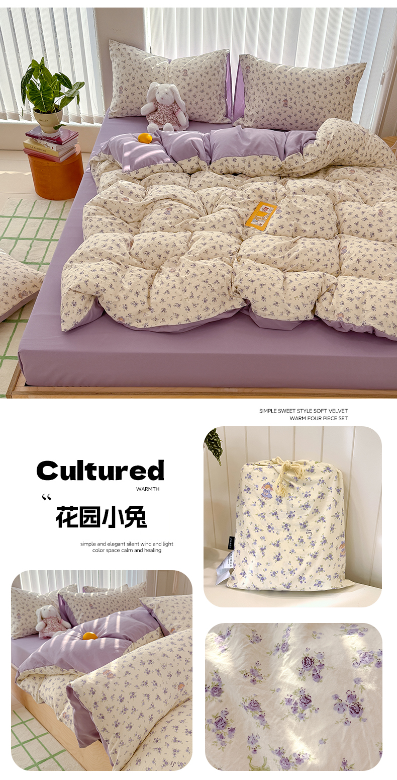 商品名称:铺尚美家纺 2026新款春款A类古法水洗仿棉云感棉小布袋四件套 吉米兔紫