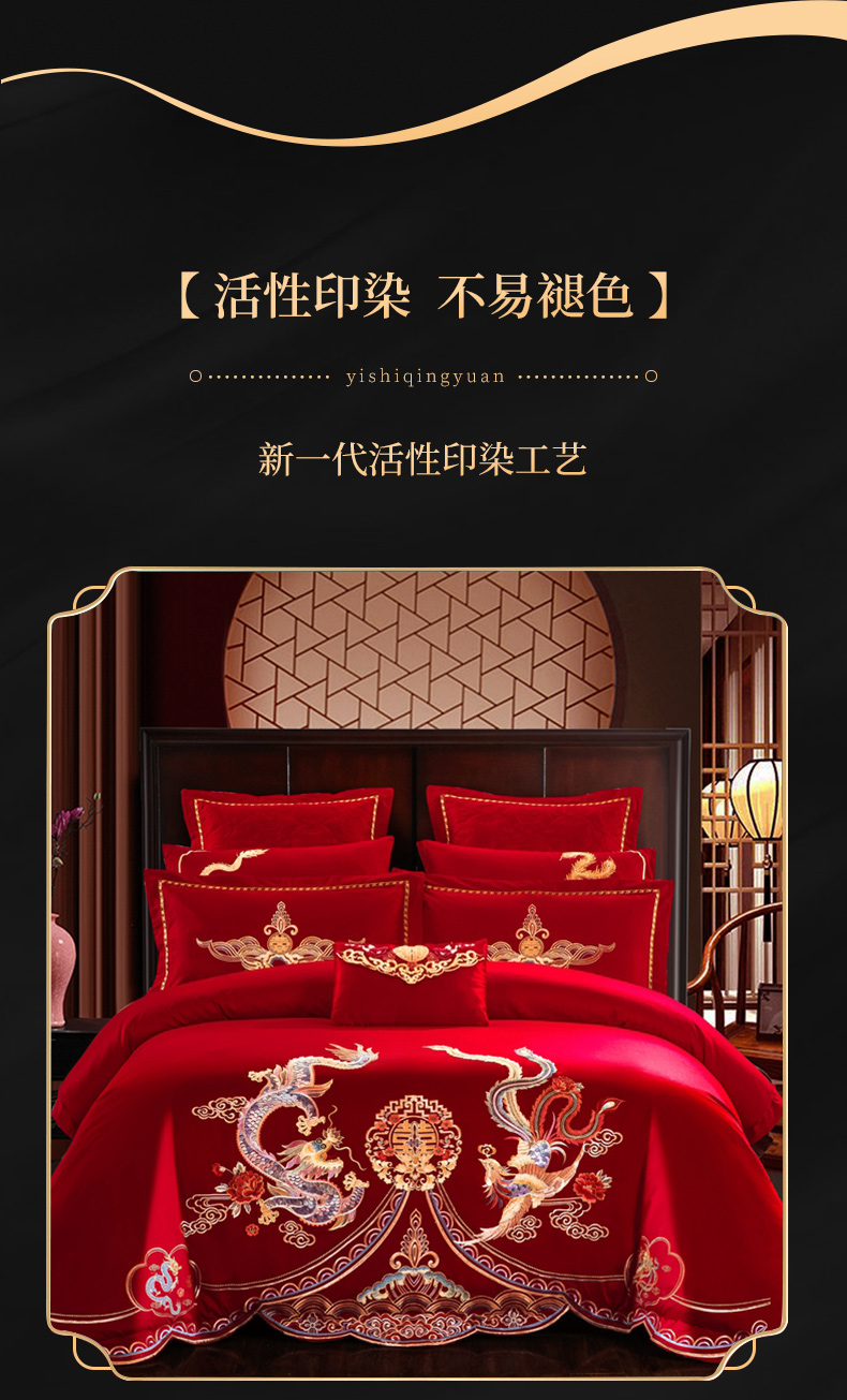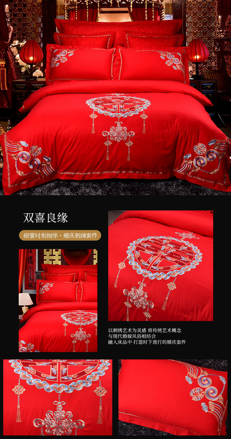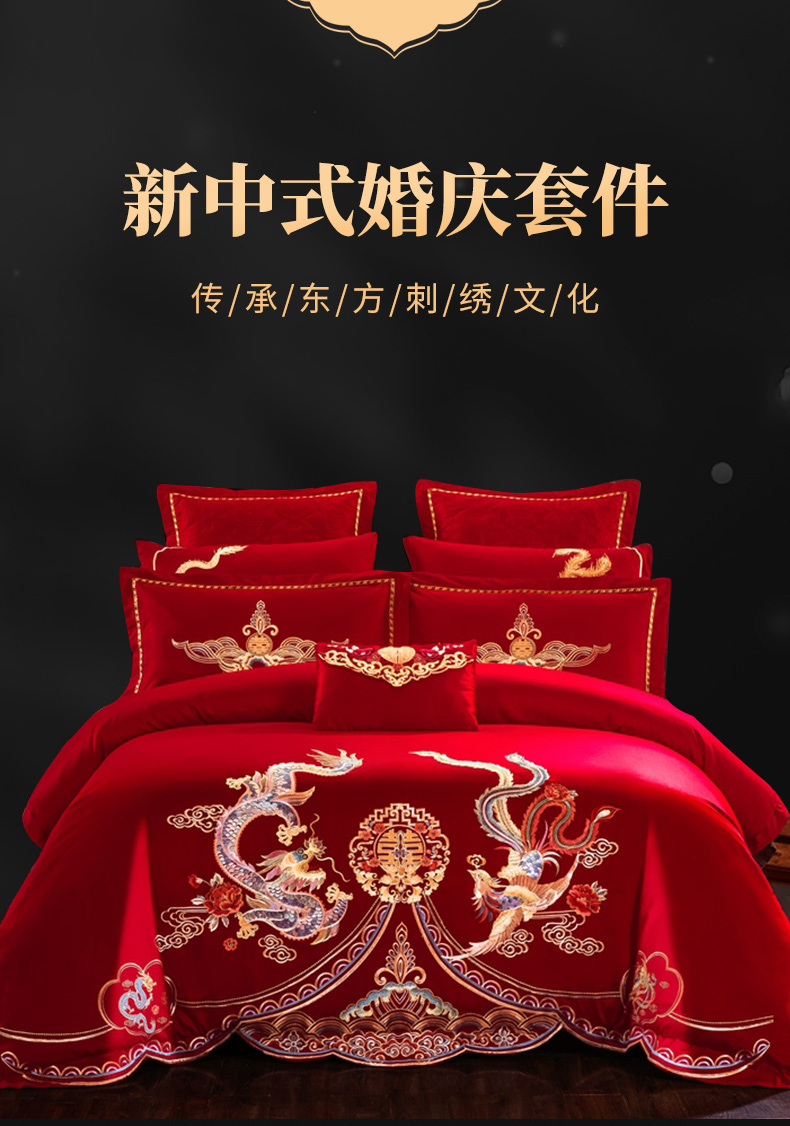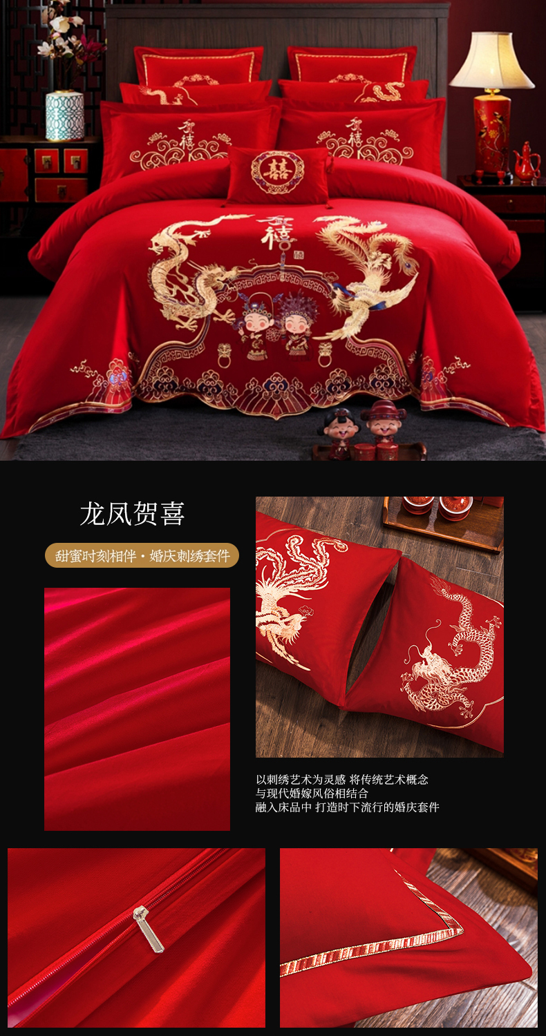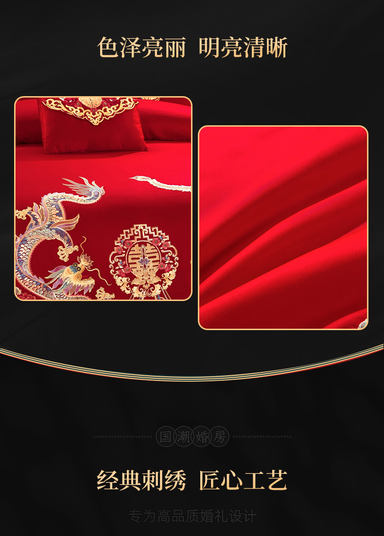 当前位置: 91家纺网 > 商品网购 > 床品套件 > 四件套 > 婚庆四件套 > 慕她家纺 慕她畅销款全棉纯棉婚庆四件套大红色刺绣结婚床上用品 龙凤成双