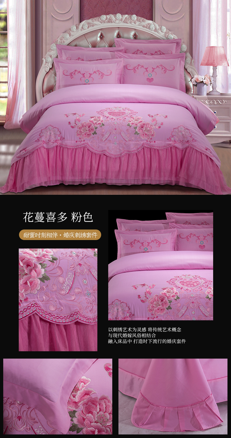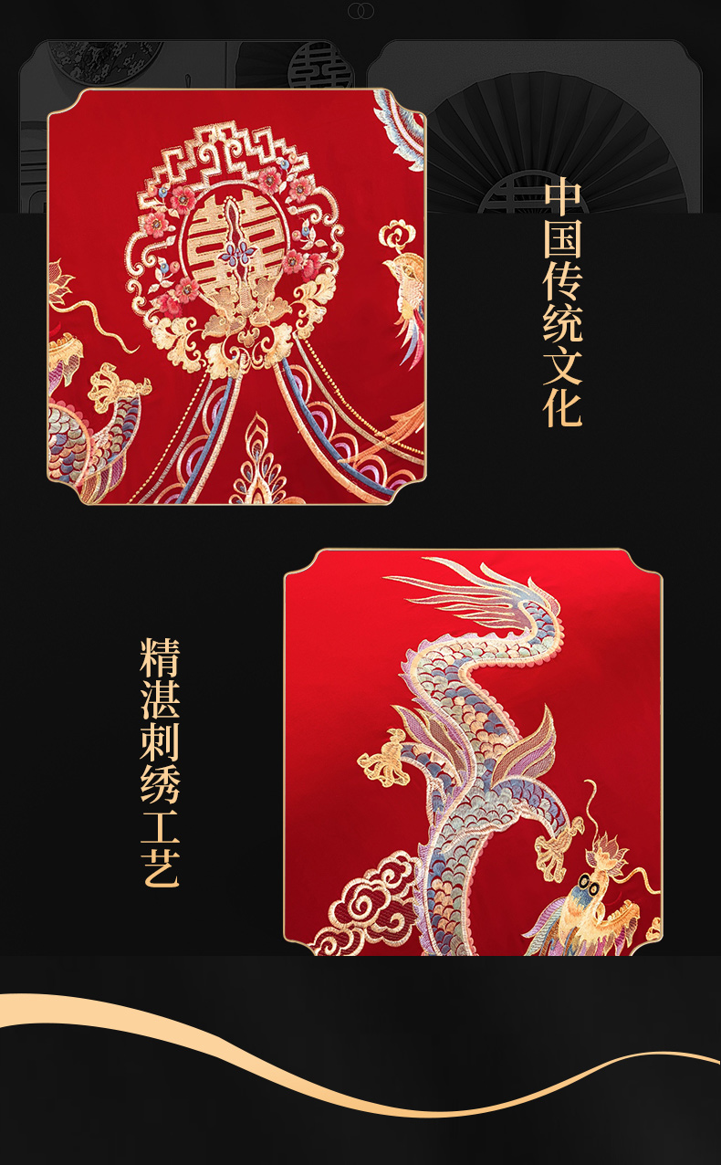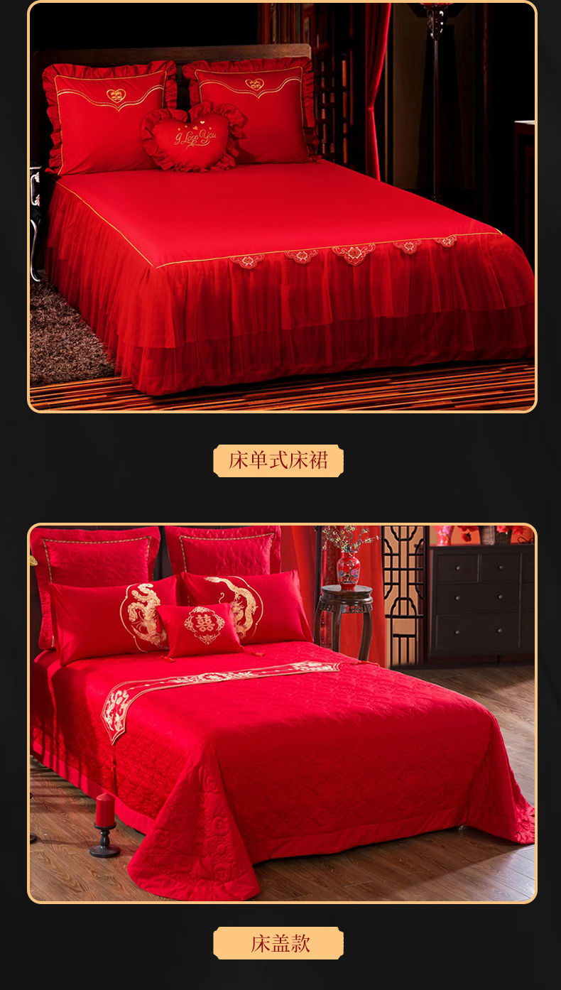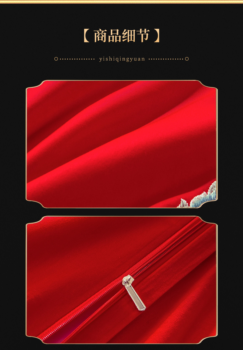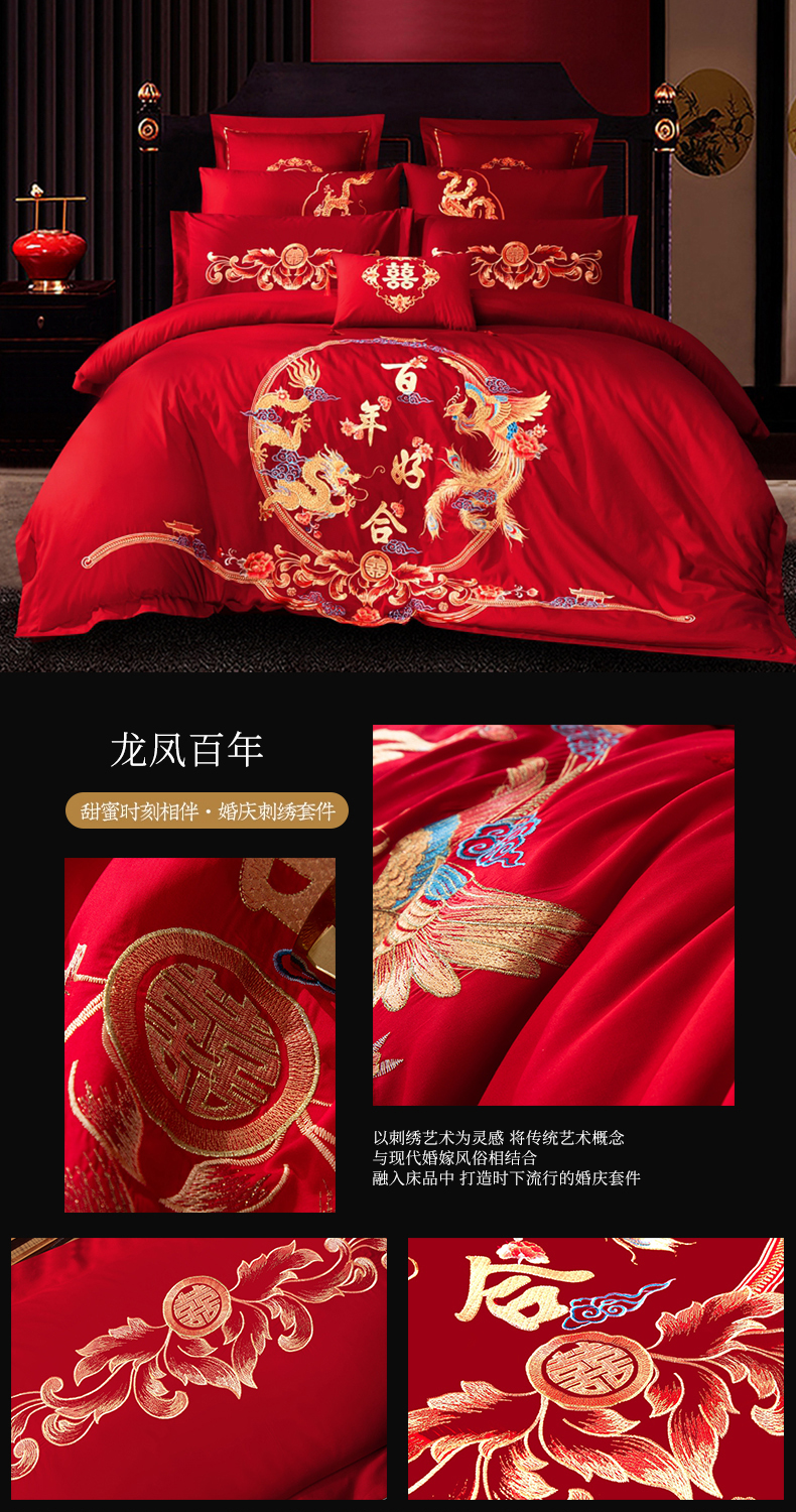 当前位置: 91家纺网 > 商品网购 > 床品套件 > 四件套 > 婚庆四件套 > 慕她家纺 慕她畅销款全棉纯棉婚庆四件套大红色刺绣结婚床上用品 龙凤成双