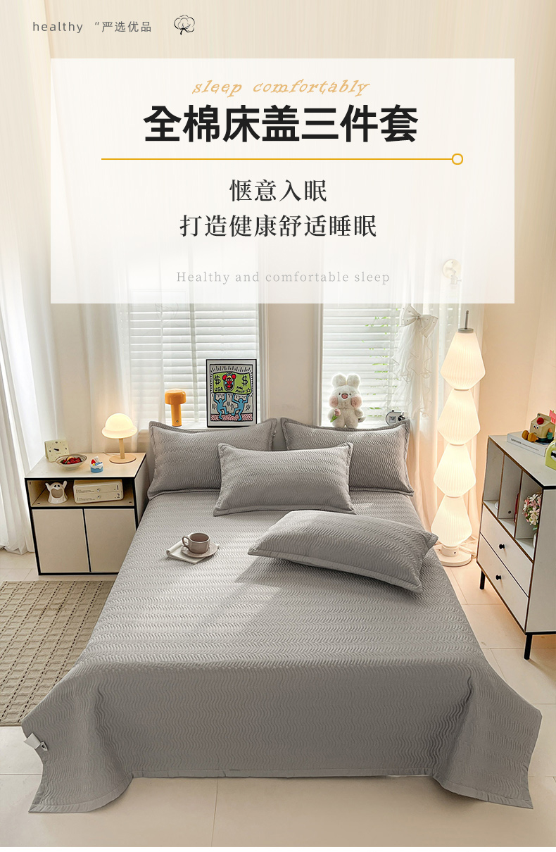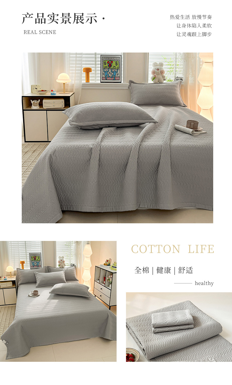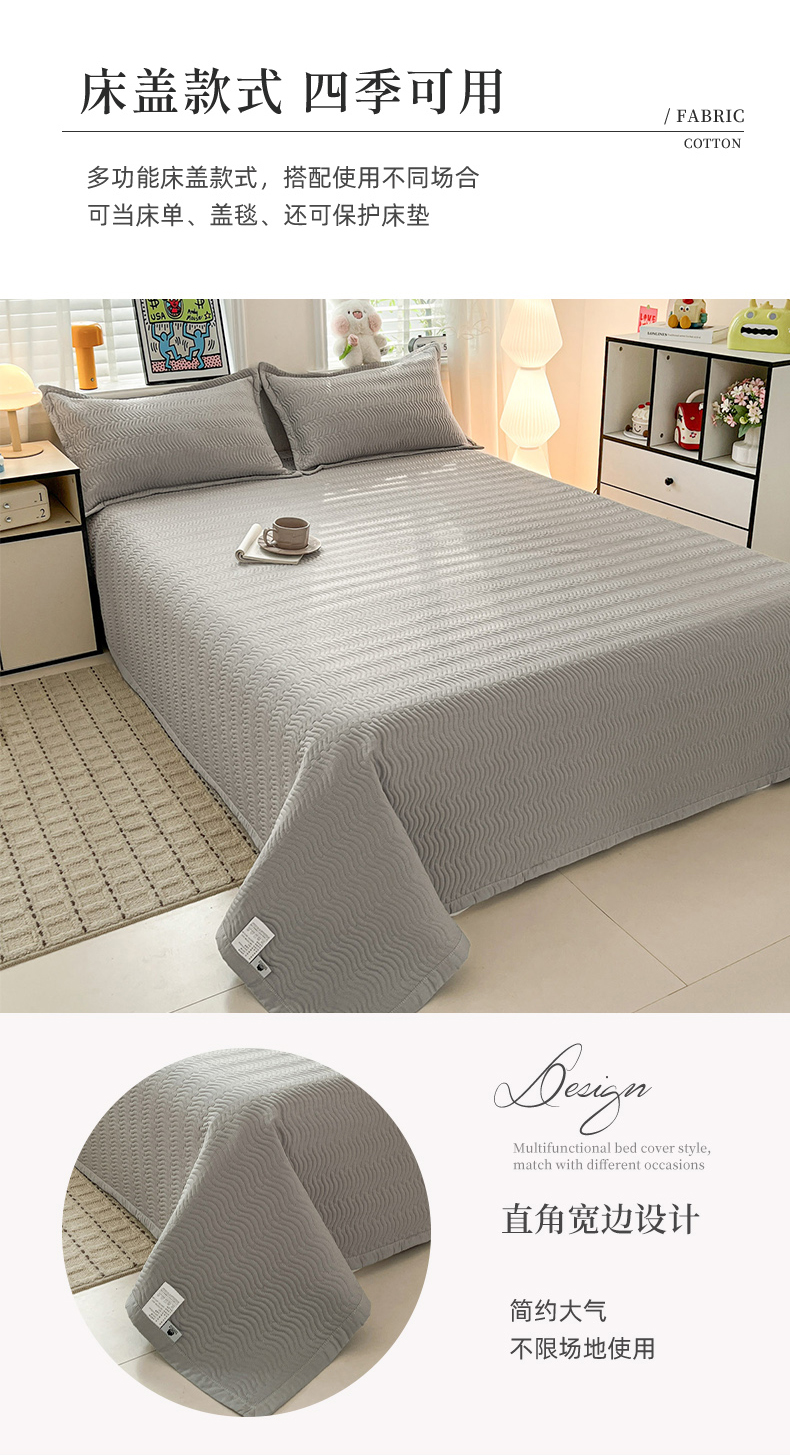 • 91家纺网 家纺一手货源 找家纺 梦精灵家纺 2026新款纯色全棉床盖单件纯棉绗缝夹棉床单 四季通用榻榻米防滑学生宿舍单人床盖枕套 素境-灰
