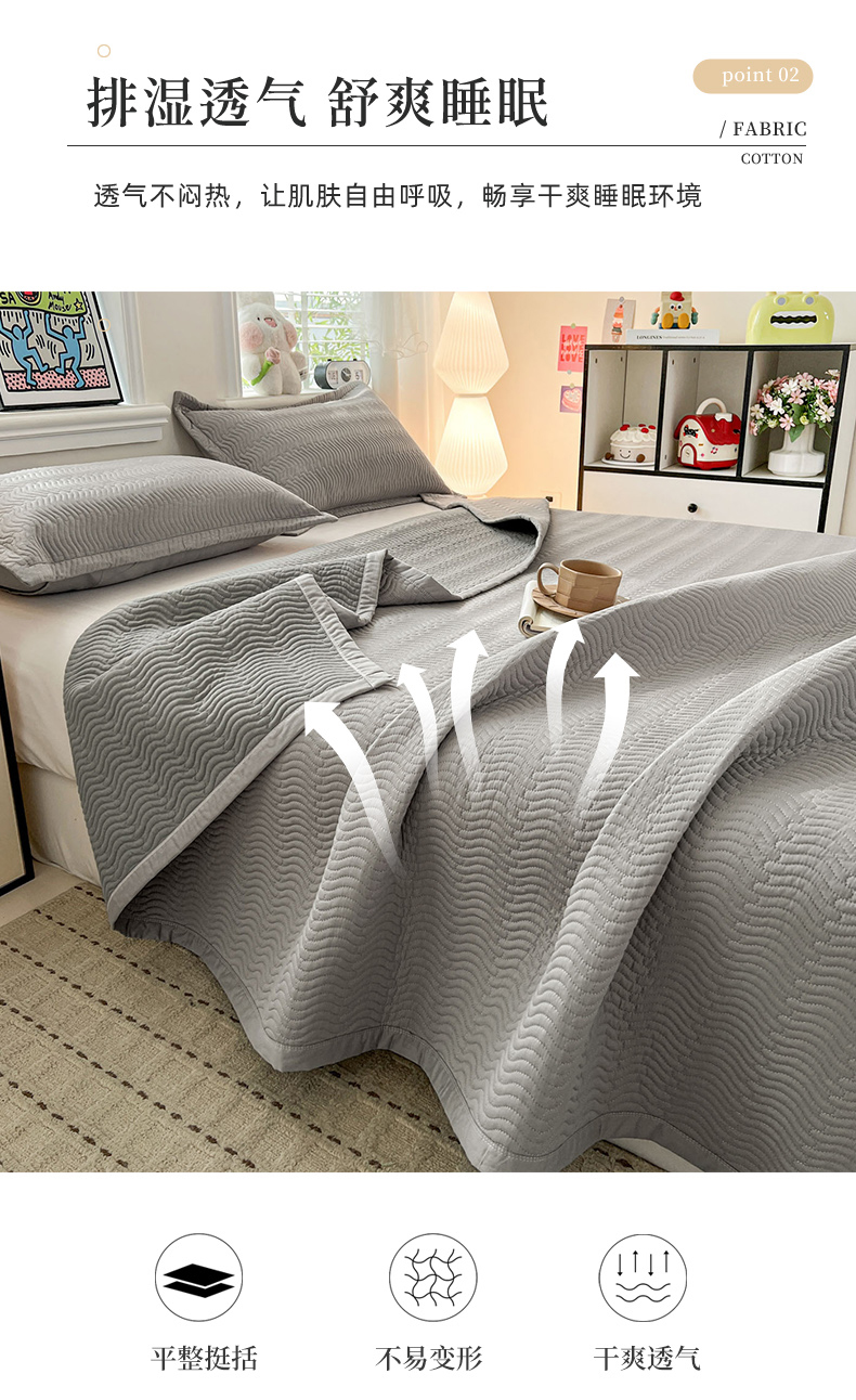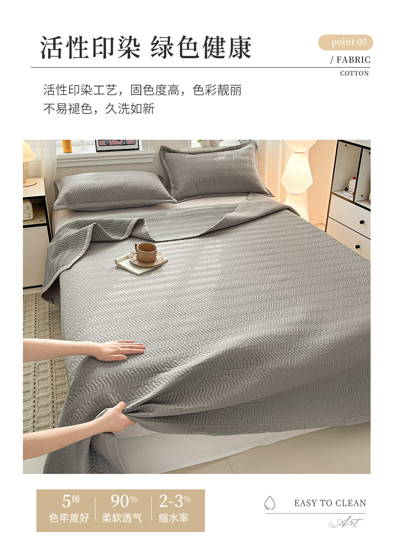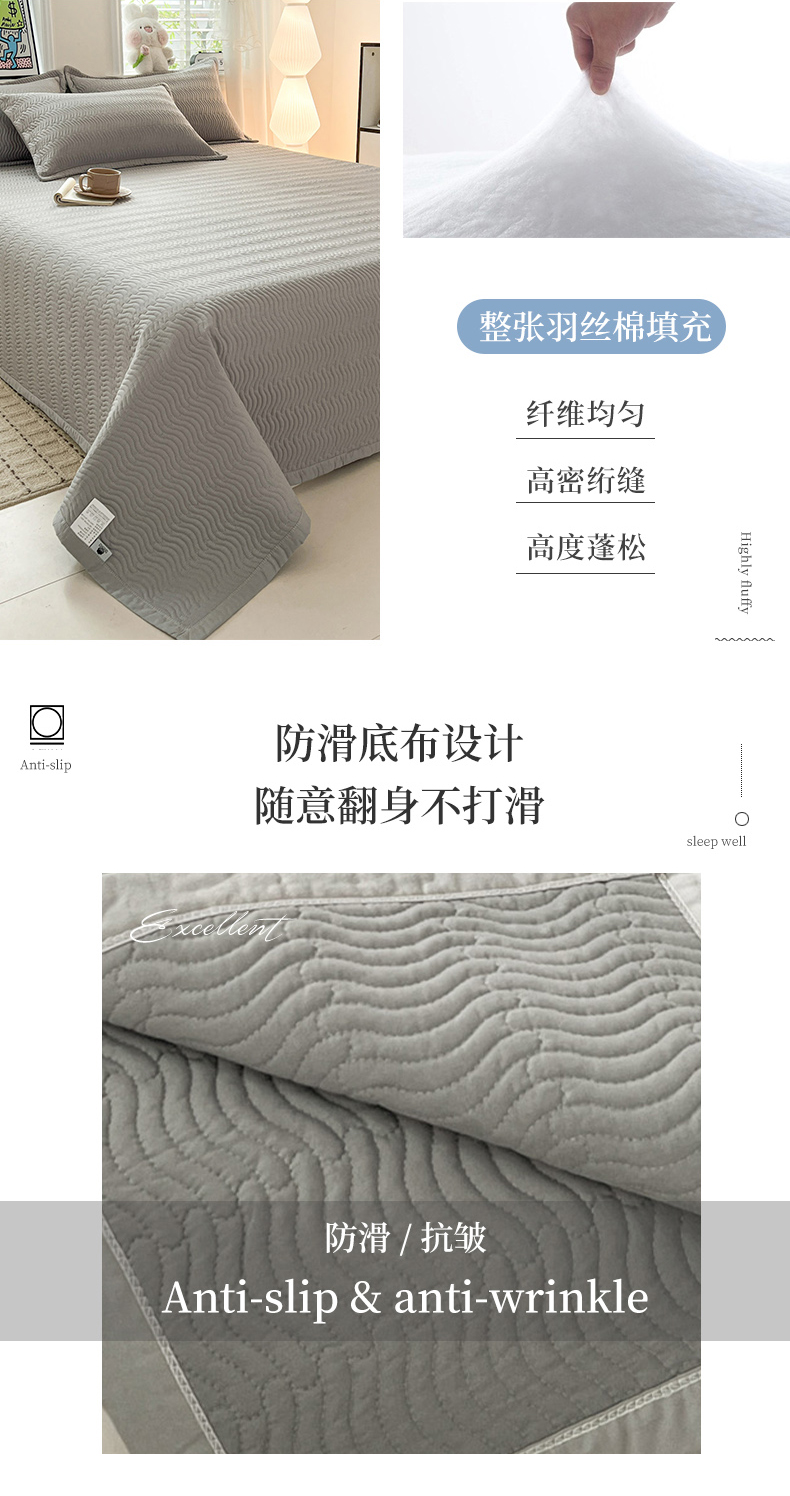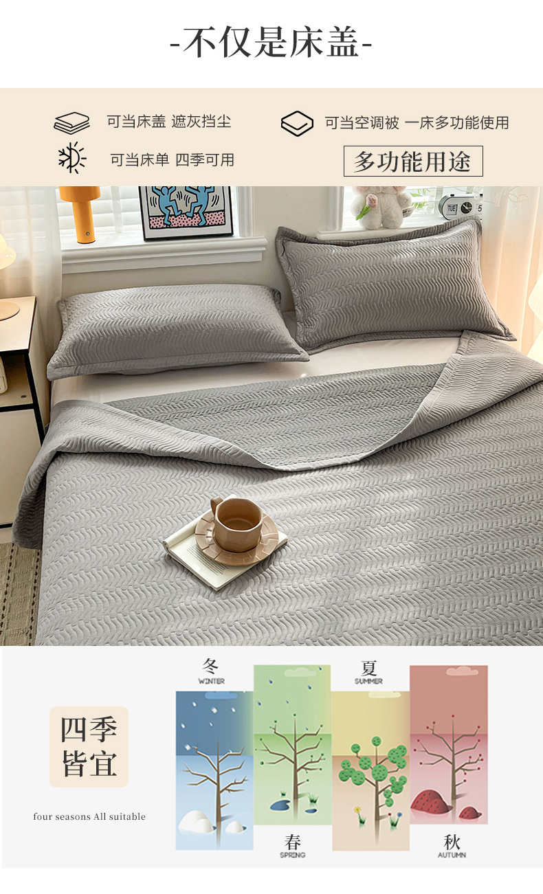 • 91家纺网 家纺一手货源 找家纺 梦精灵家纺 2026新款纯色全棉床盖单件纯棉绗缝夹棉床单 四季通用榻榻米防滑学生宿舍单人床盖枕套 素境-灰