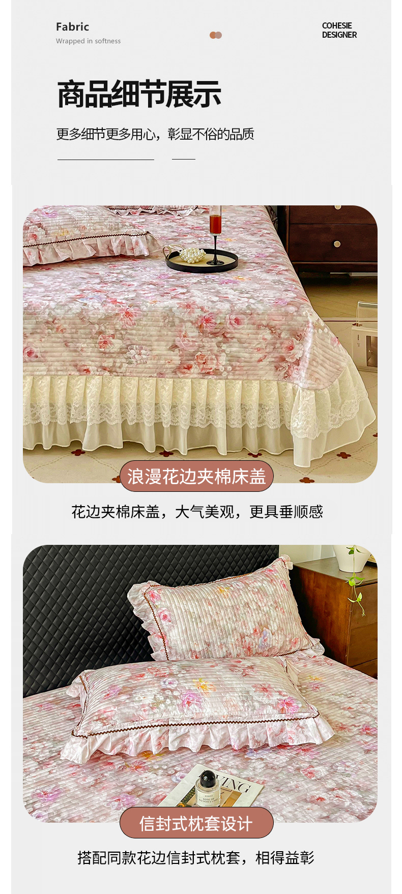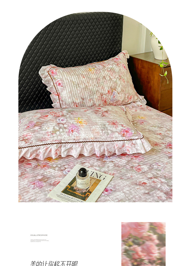 (总)胜权家纺 2026新款A类全棉法式13372数码印花夹棉床盖单品系列,花非花粉,花非花绿,花海绿,锦绣繁华粉,锦绣繁华绿,妙颜粉