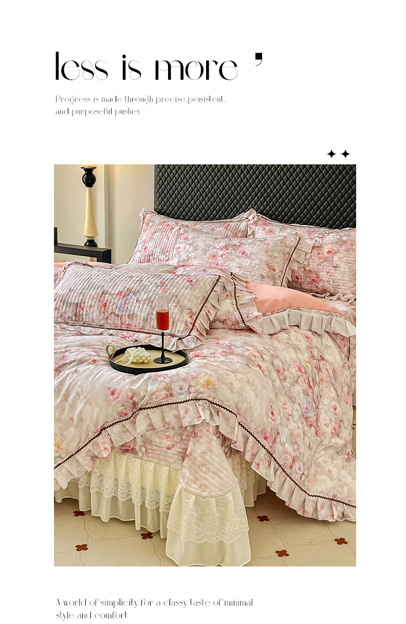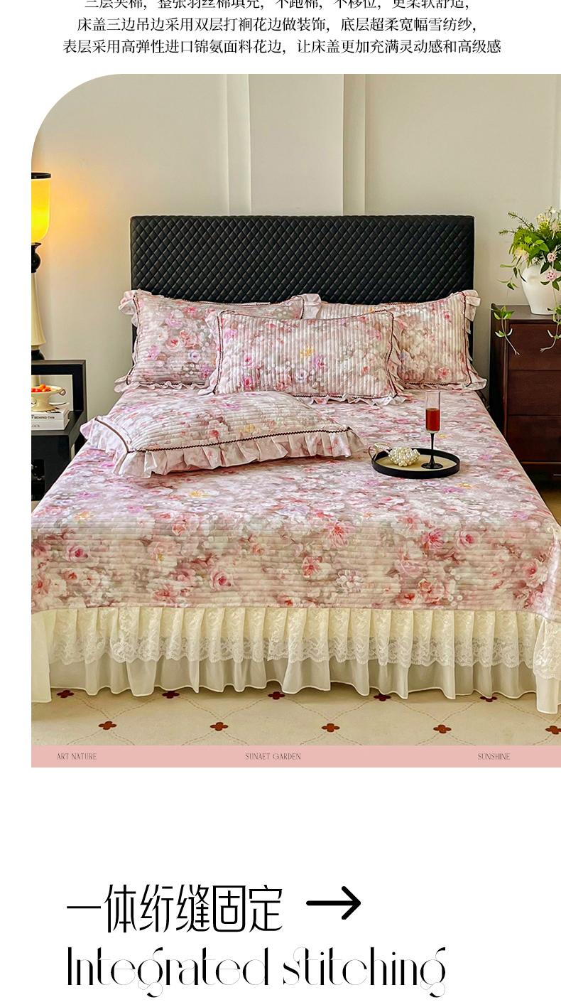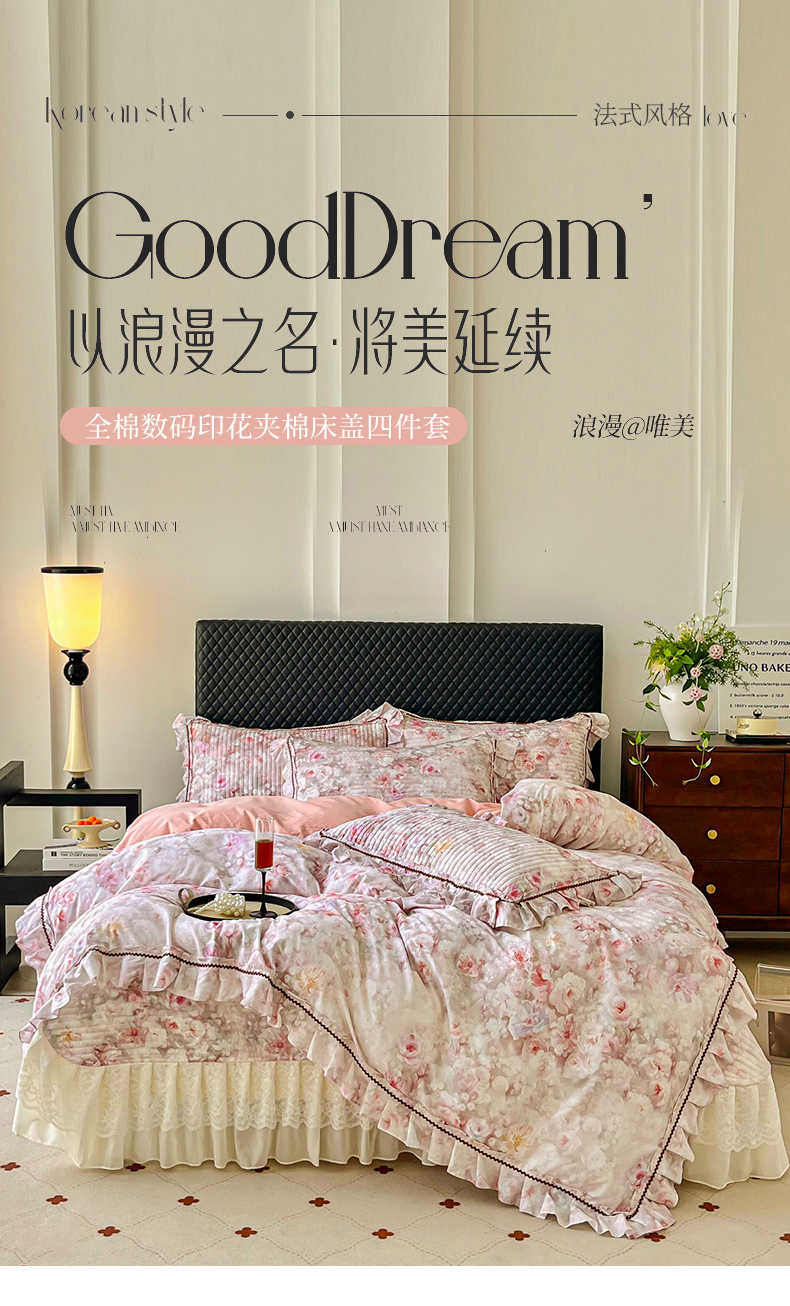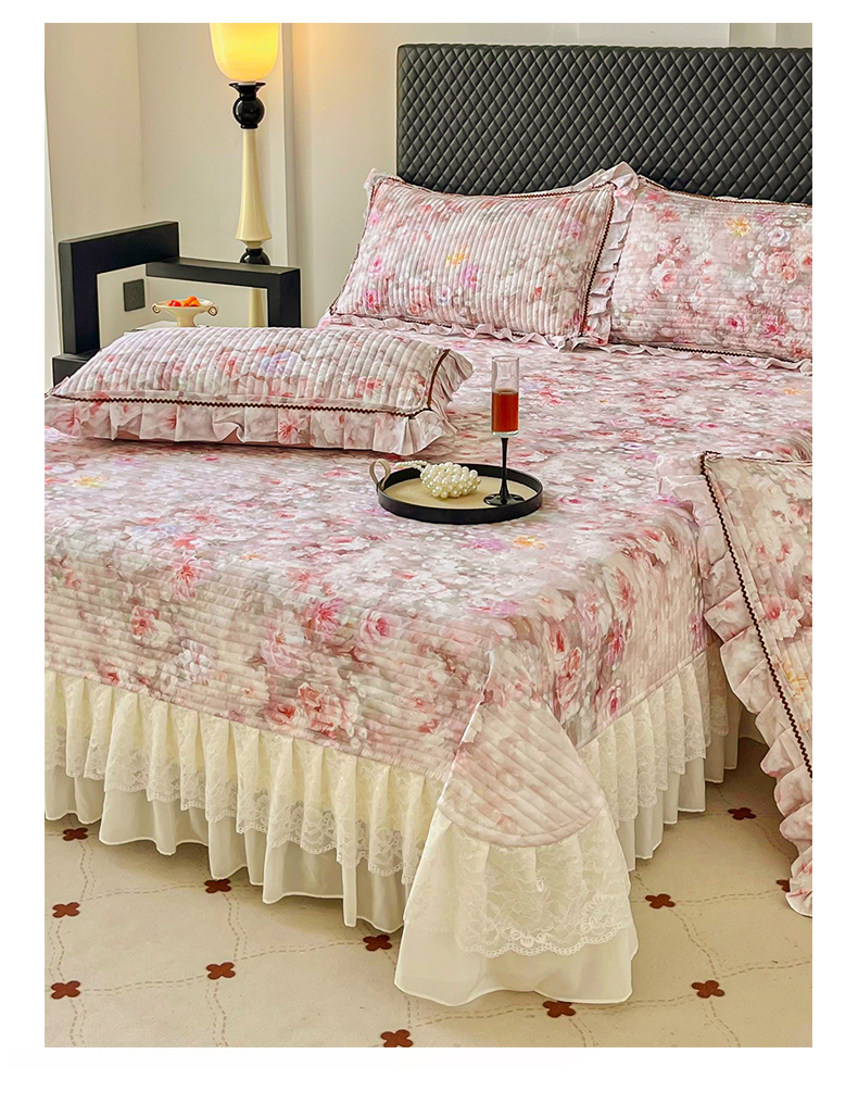 商品名称:胜权家纺 2026新款A类全棉法式13372数码印花夹棉床盖四件套系列 花非花粉