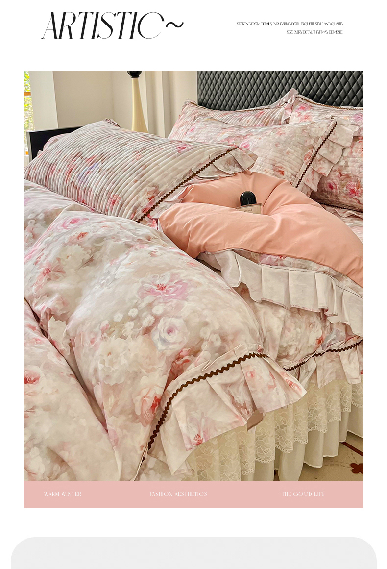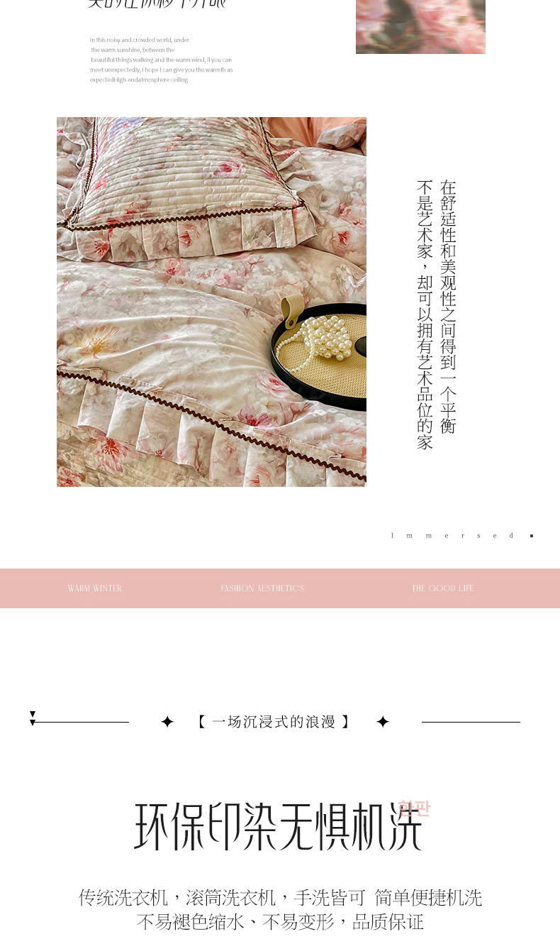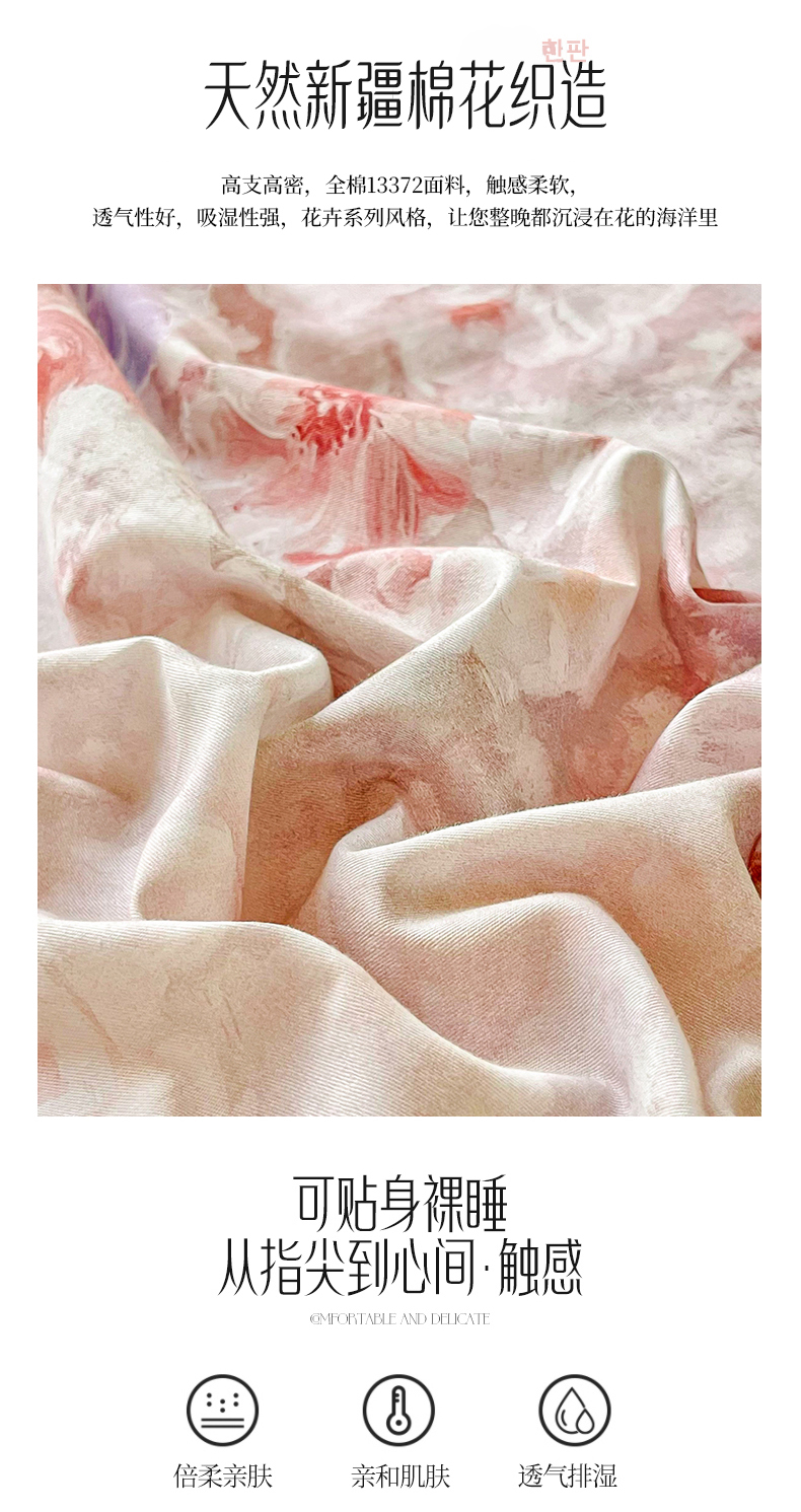 商品名称:胜权家纺 2026新款A类全棉法式13372数码印花夹棉床盖四件套系列 花非花粉
