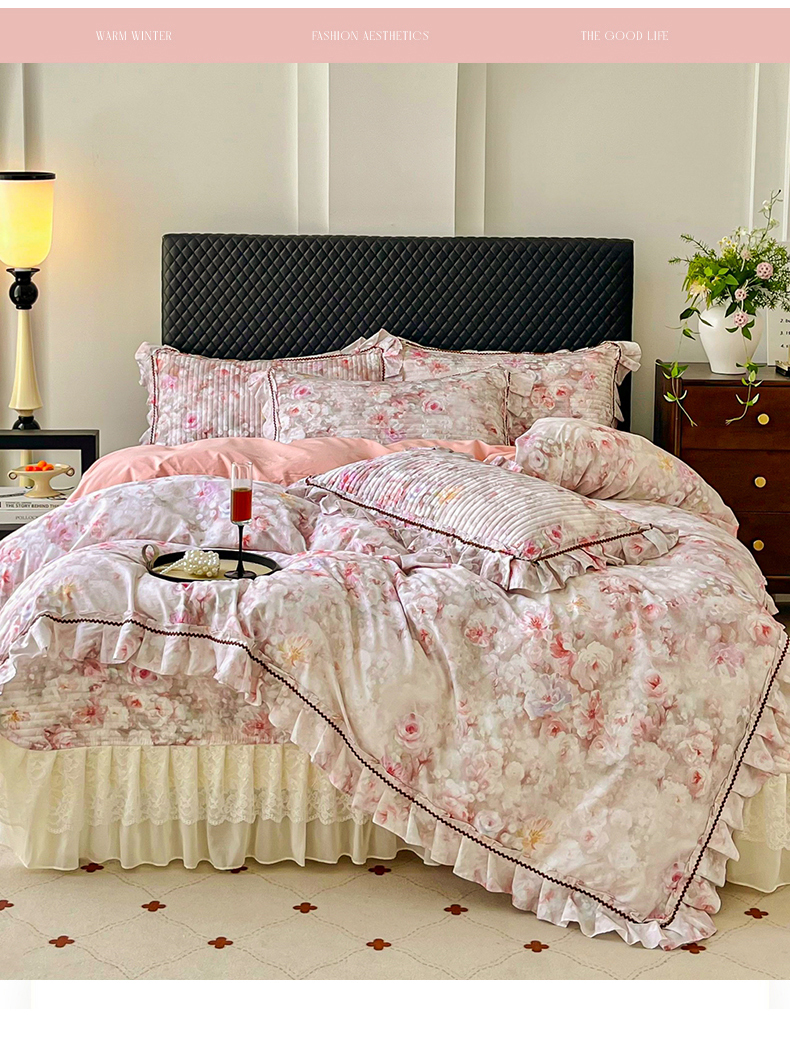 (总)胜权家纺 2024新款小香风牛奶绒夹棉床盖四件套-芭莎系列,芭莎-粉,芭莎-绿,芭莎-紫,芭莎-米