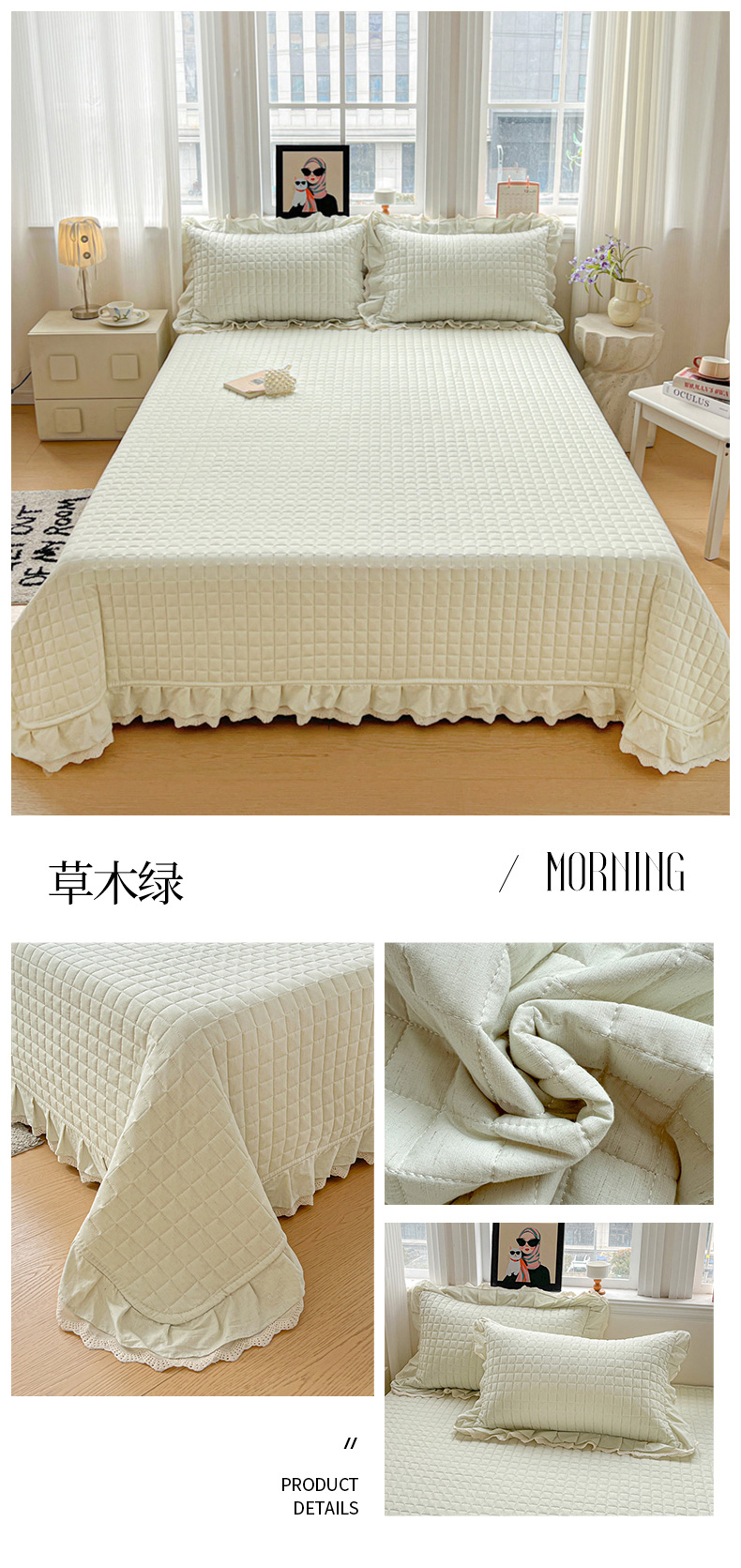 (总)岚吉家纺 2024年新款色织全棉水洗花边床盖,草绿,牛仔兰,浅兰,深粉,糖果咖,烟灰,青年白