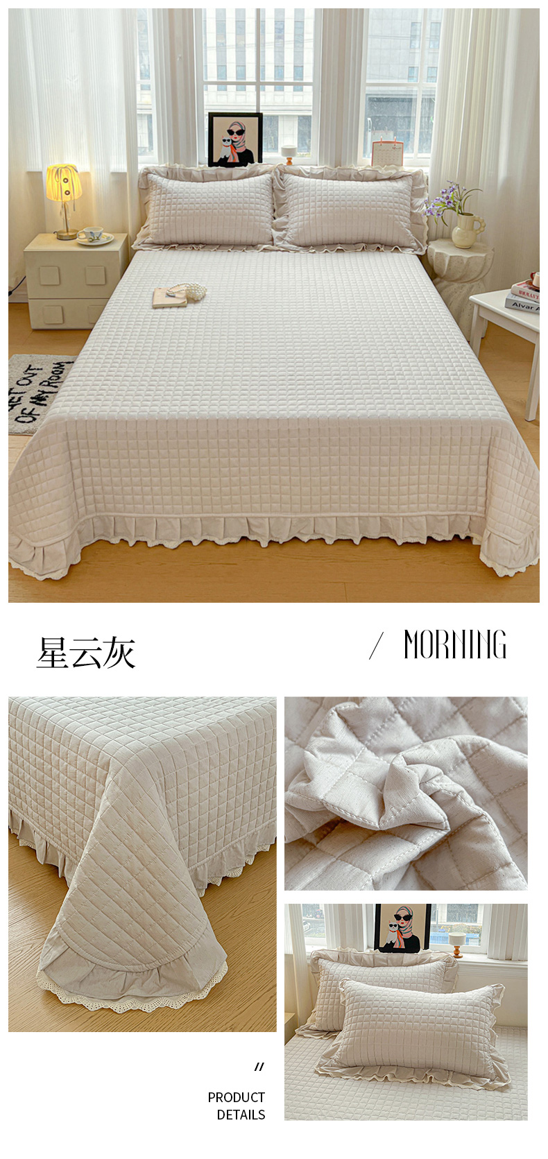 (总)岚吉家纺 2026年新款A类法式全棉花边床盖三件套四件套,格子熊,花园-粉,丽莎-绿,恋歌,露华浓-咖,梅溪渡-灰,暮色,秋海棠-兰,时光,心结-粉,星辰,忆江南-灰,羽兮,雨蝶-紫