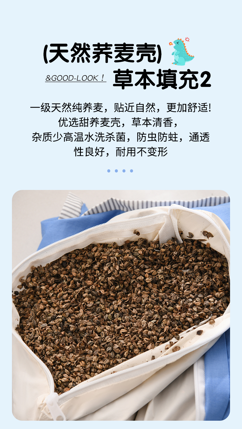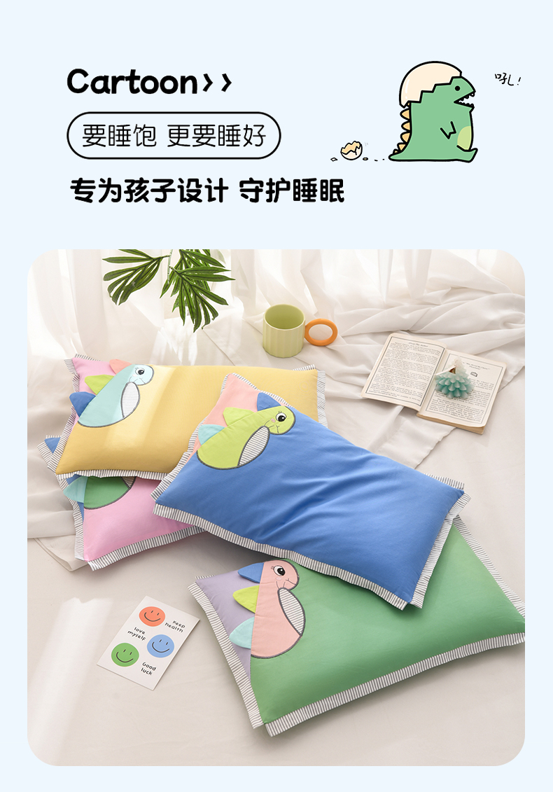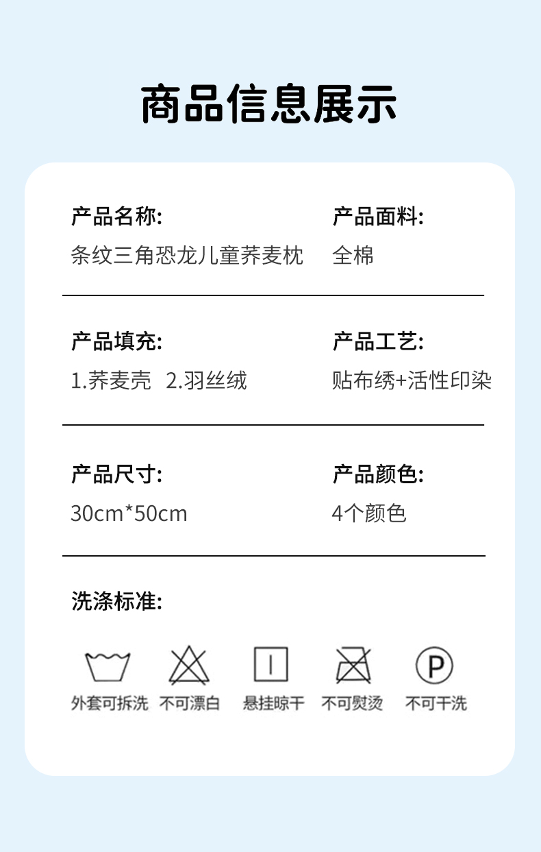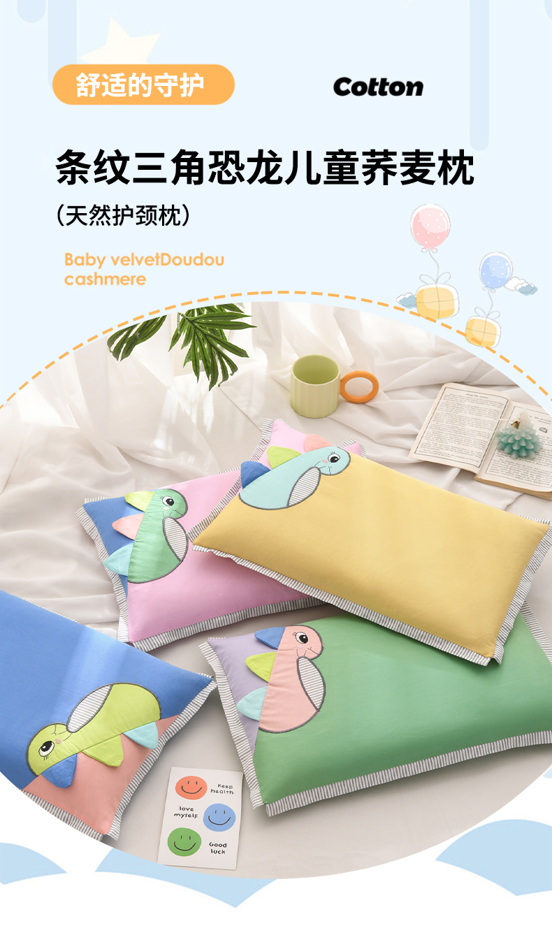 商品名称:(总)仁宇枕业 2026新款新品条纹三角恐龙儿童羽丝绒荞麦枕头枕芯